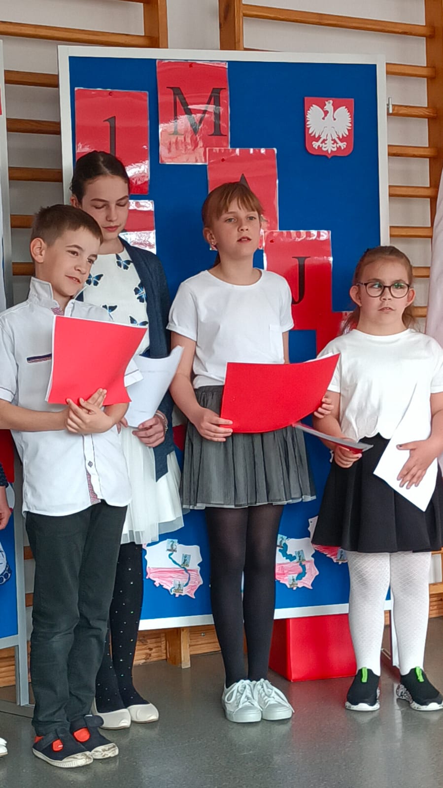 W dniu 30.04.2025r. w naszej szkole odbył sie uroczysty apel z okazji uchwalenia Konstytucji 3 Maja. Tego dnia uczniowie przypomnieli sobie tło historyczne wydażeń z 3 Maja 1971. Każda z klas oraz grup przedszkolnych pięknie zaprezentowała przygotowane z okazji tego święta wiersze i piosenki. Uczniowie z szacunkiem uczcili to ważne święto narodowe.