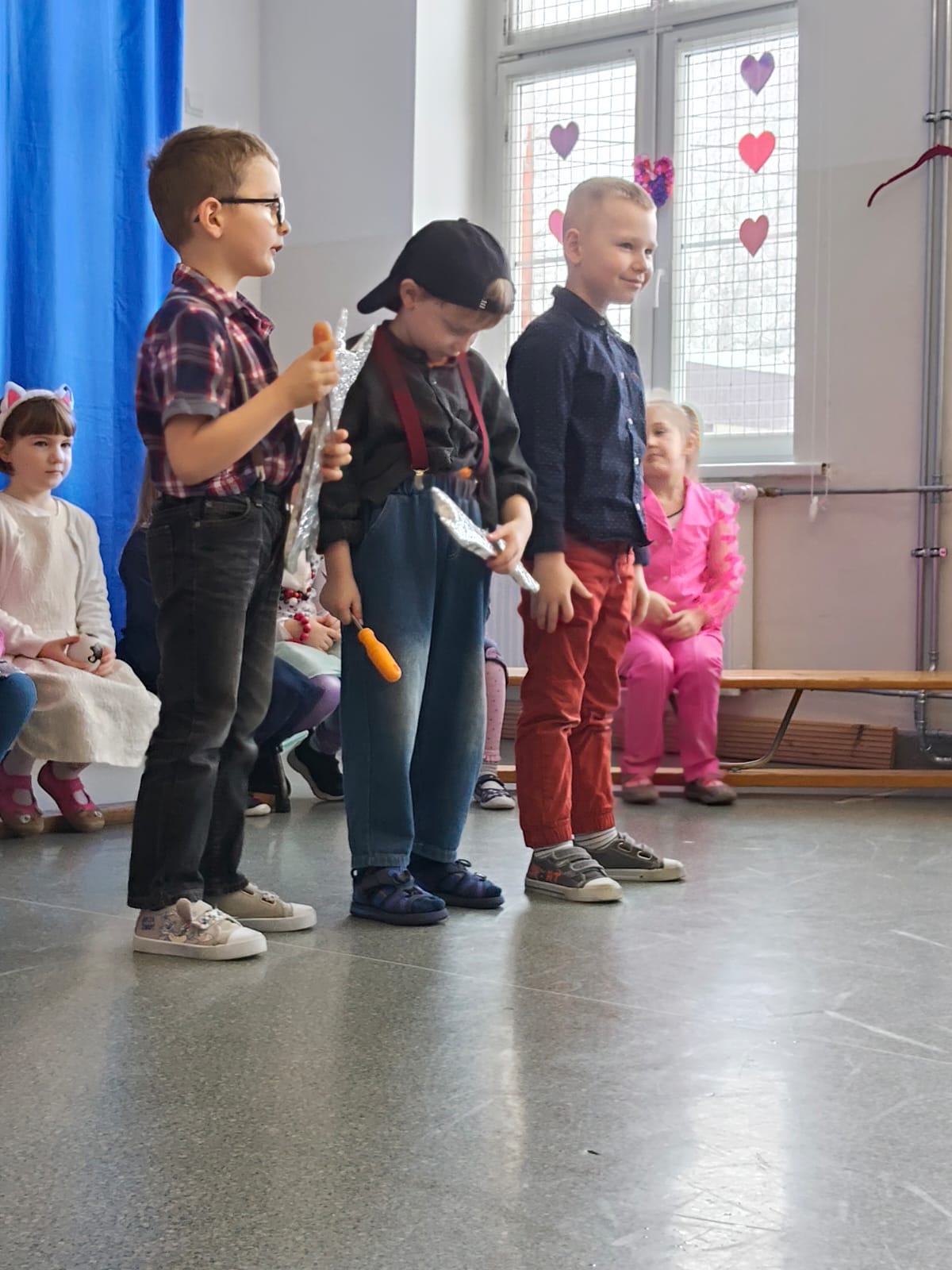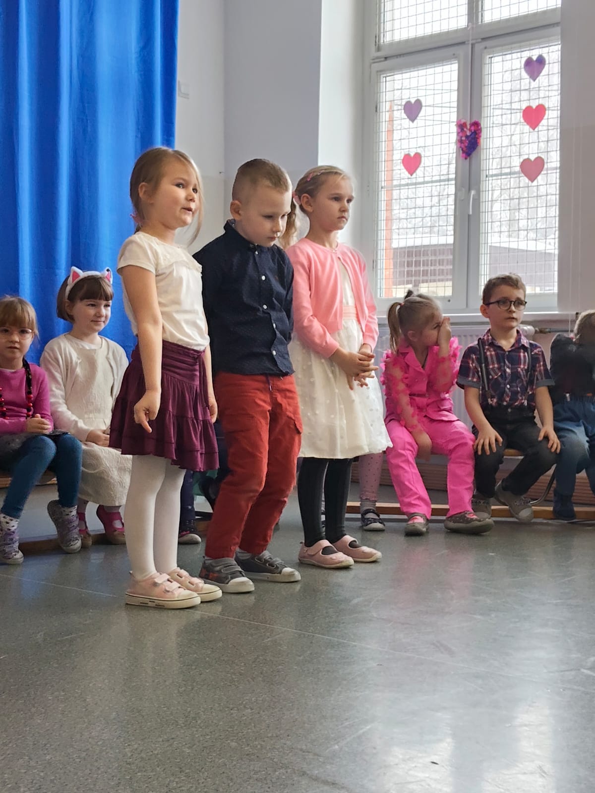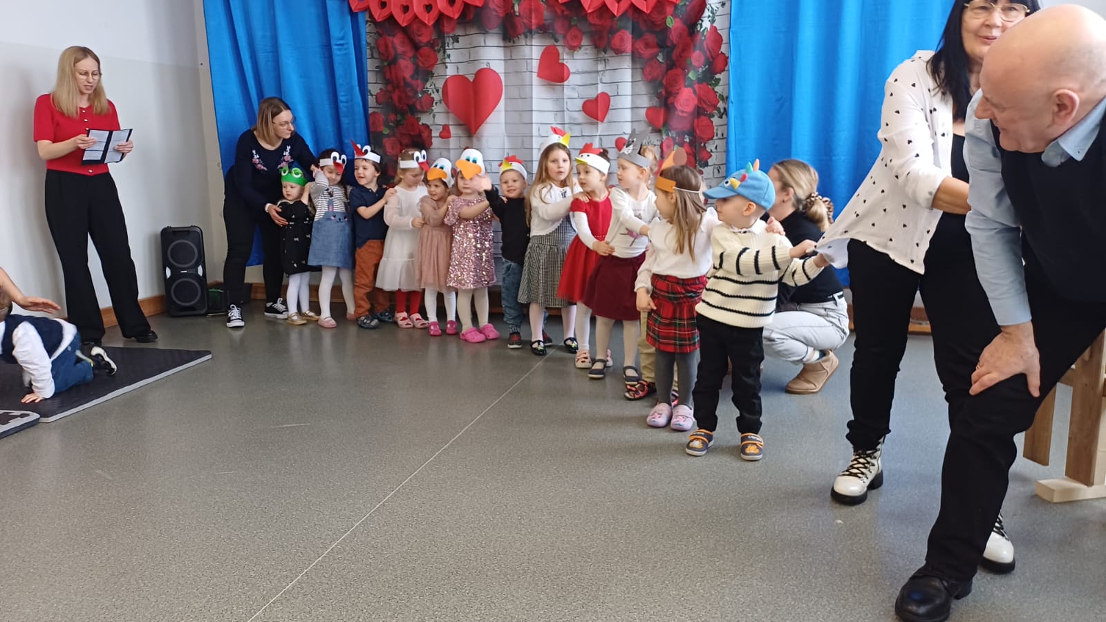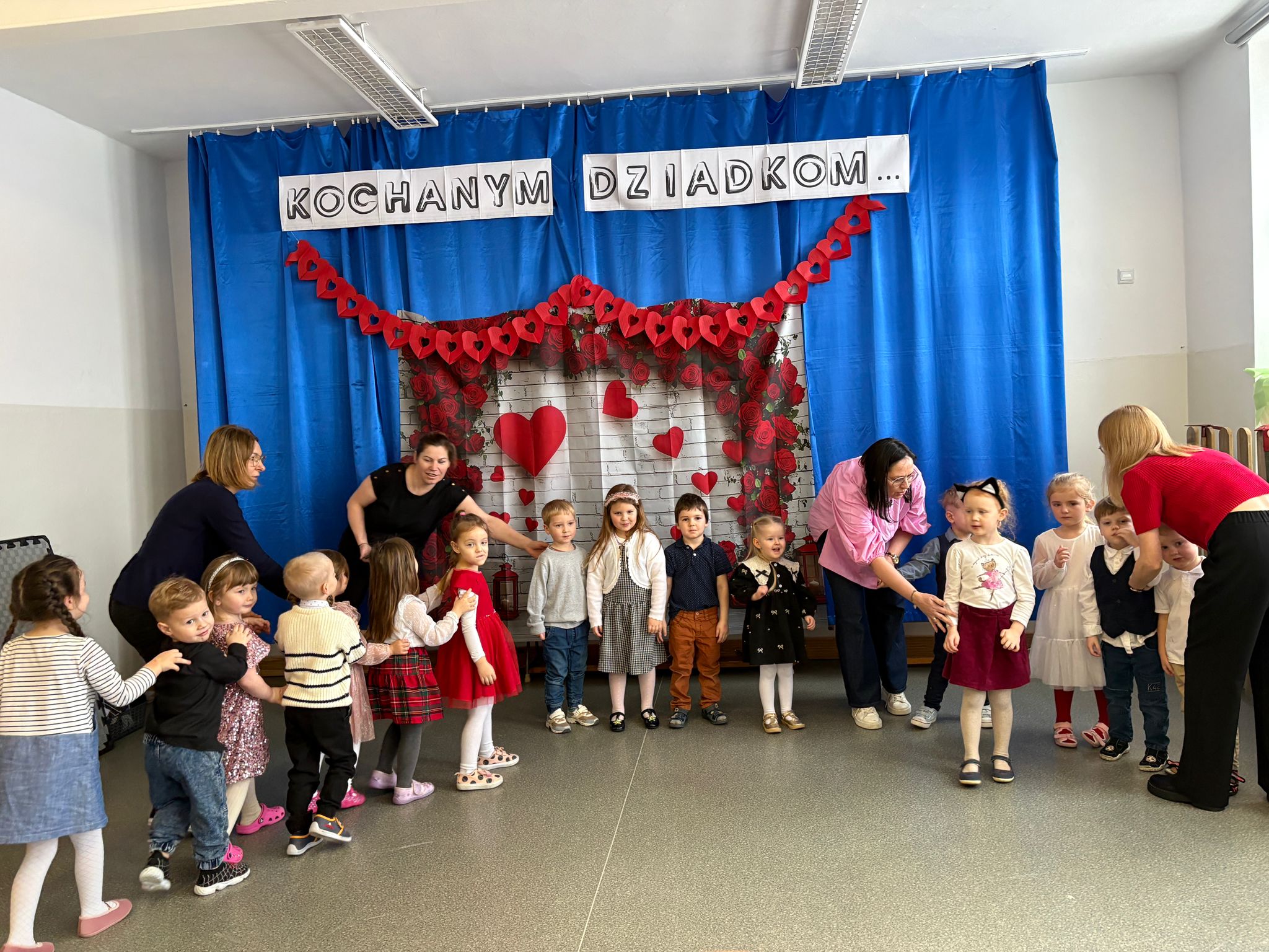 W dniu 13.02.2026r. w przedszkolu w grupach Zajączków i Jeżyków był obchodzony Dzień Babci i Dziadka. Na zdjęciach utrwalono wyjątkowe chwile ze święta Babci i Dziadka, które dzieci z przedszkola wraz z paniami przygotowały z ogromnym zaangażowaniem. Przedszkolaki zaprezentowały program artystyczny pełen piosenek, wierszy i tańców, a ich występy wywołały wiele wzruszeń i uśmiechów. Goście z dumą obserwowali swoje wnuki, nagradzając je zgromkimi brawami. Po części artystycznej dzieci wręczyły własnoręcznie wykonane upominki, które stały sie piękną pamiątką tego spotkania. Zdjęcia oddają ciepłą, rodzinną atmosferę uroczystości oraz radość ze wspólnie spędzonego czasu.