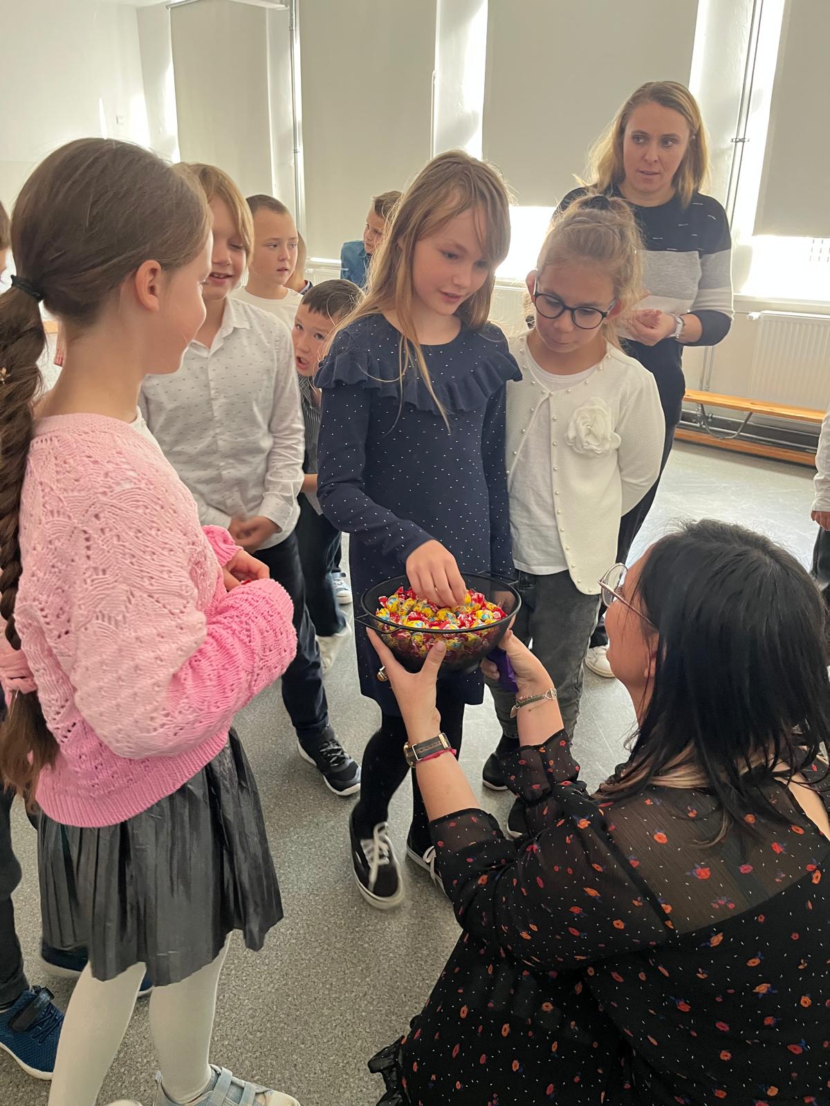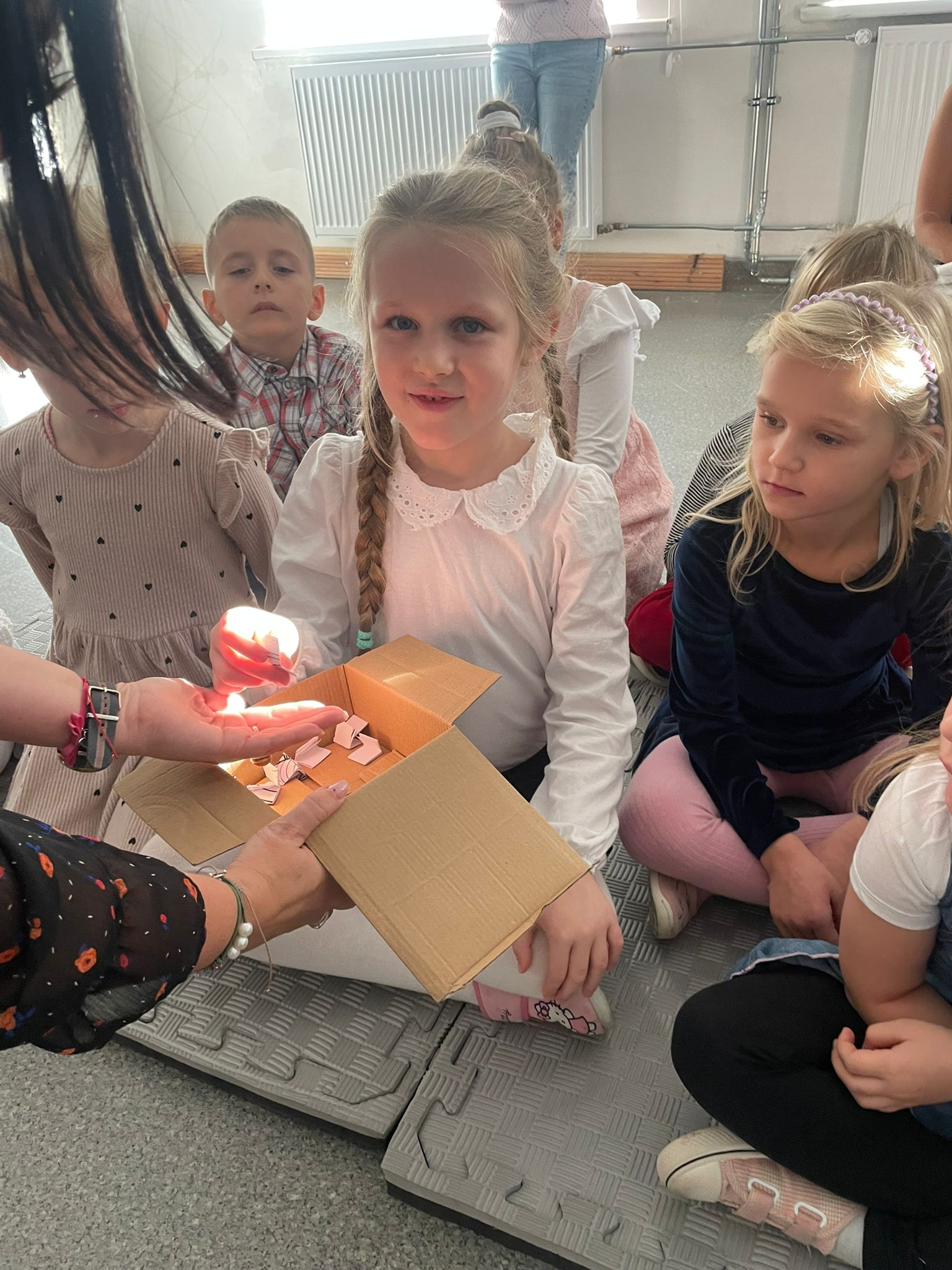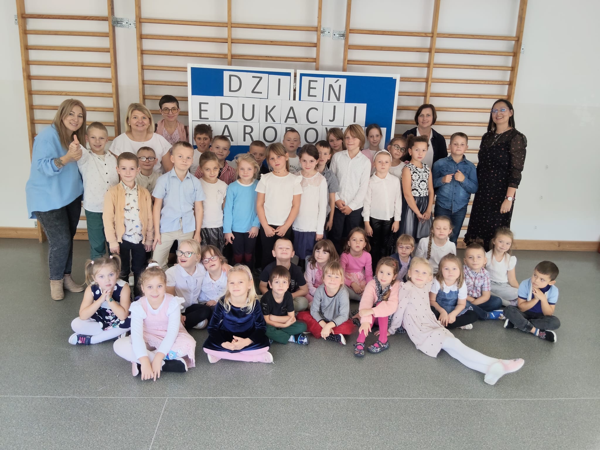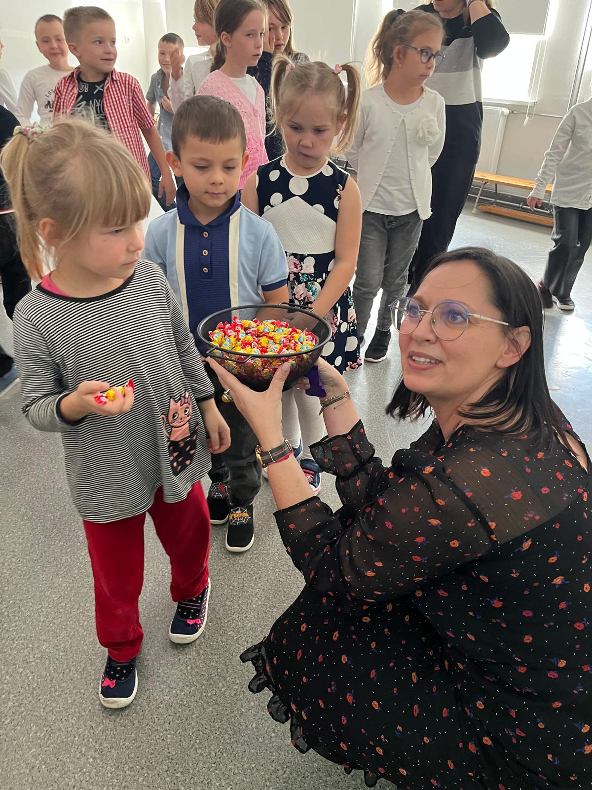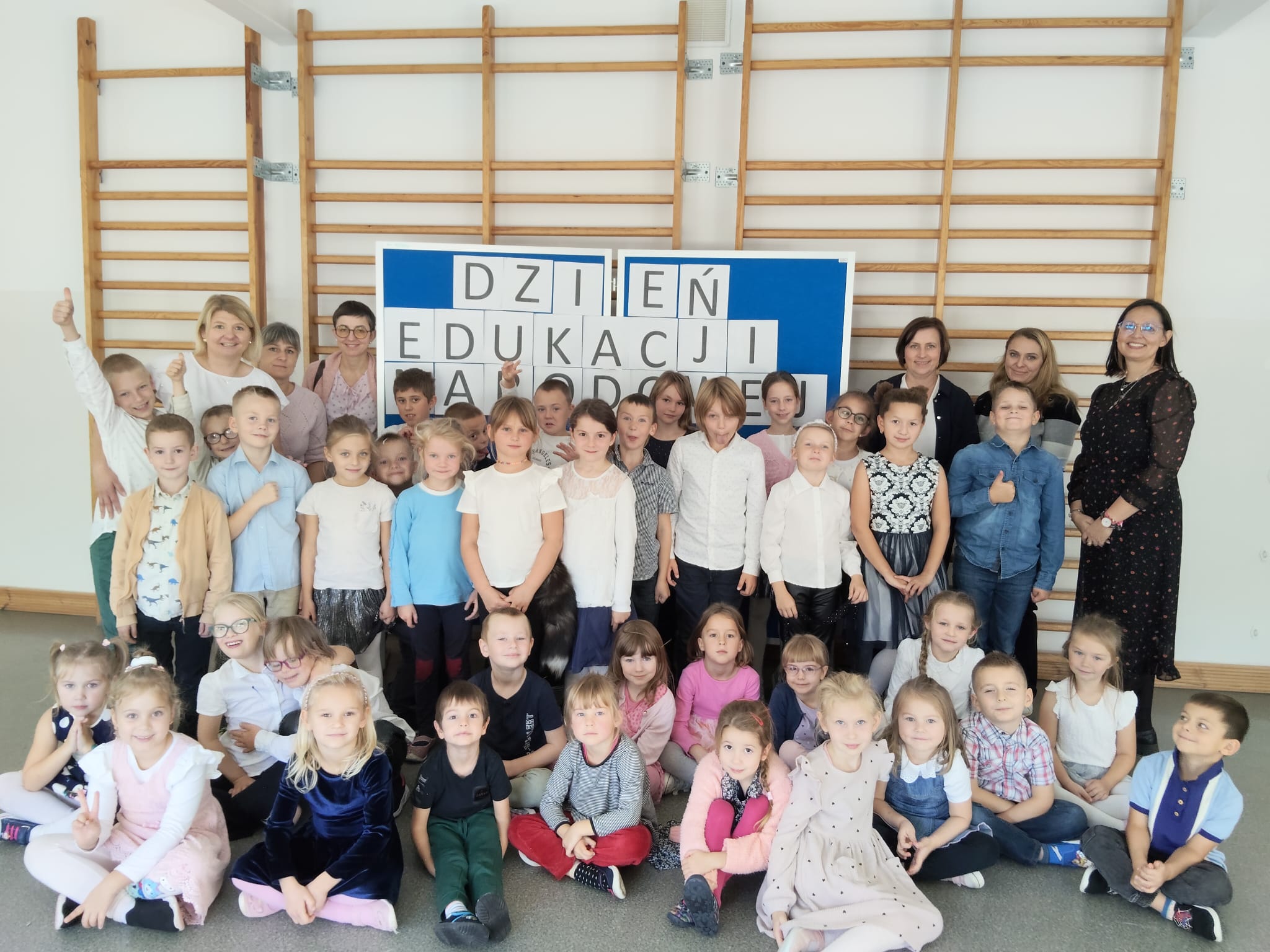 W dniu 13.10.2025r. w naszej szkole odbył się apel z okazji Dnia Edukacji Narodowej. W uroczystości brali udział uczniowie klas 1-3 oraz przedszkolaki z grupy Zajączków. Podczas apelu został przeprowadzony quiz wiedzy dotyczący naszej szkoły, dzieci bardzo chętnie odpowiadały na pytania. Na koniec każdy otrzymał słodkie co nieco.