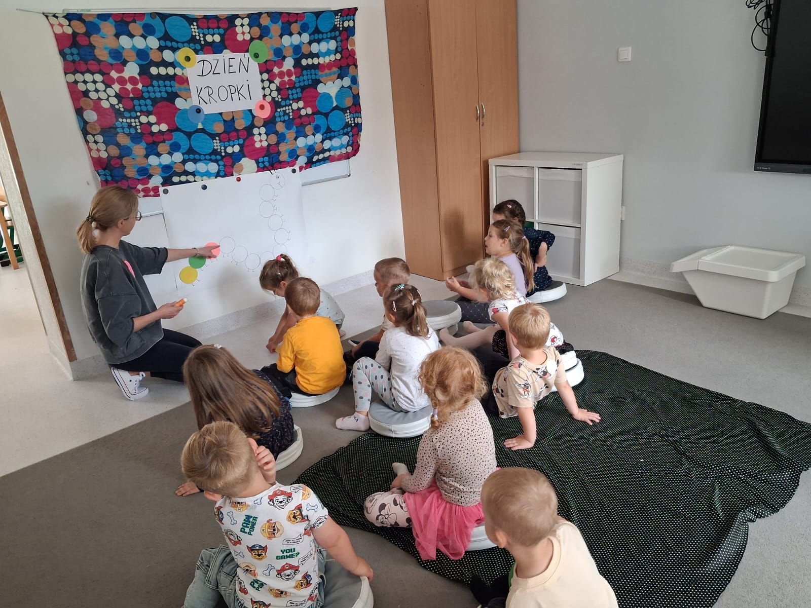 W dniu 15.09.2025r. uczniowie w klasach 1-3 oraz przedszkolaki z grupy Zajączków i Jeżyków obchodzili Międzynarodowy Dzień Kropki. Jest to globalne święto kreatywności, odwagi i odkrywania własnych talentów, zainspirowanych książką "Kropka" peteraH. Reynoldsa. Uczniowie klas 1-3 tego dnia prezentowali swoje talenty oraz malowali koszulki w kropki. Przedszkolaki robiły prace plastyczną, używając do tego swoich paluszków, dzięki czemu ćwiczyły małą motorykę oraz brały udział w różnych zabawach.
