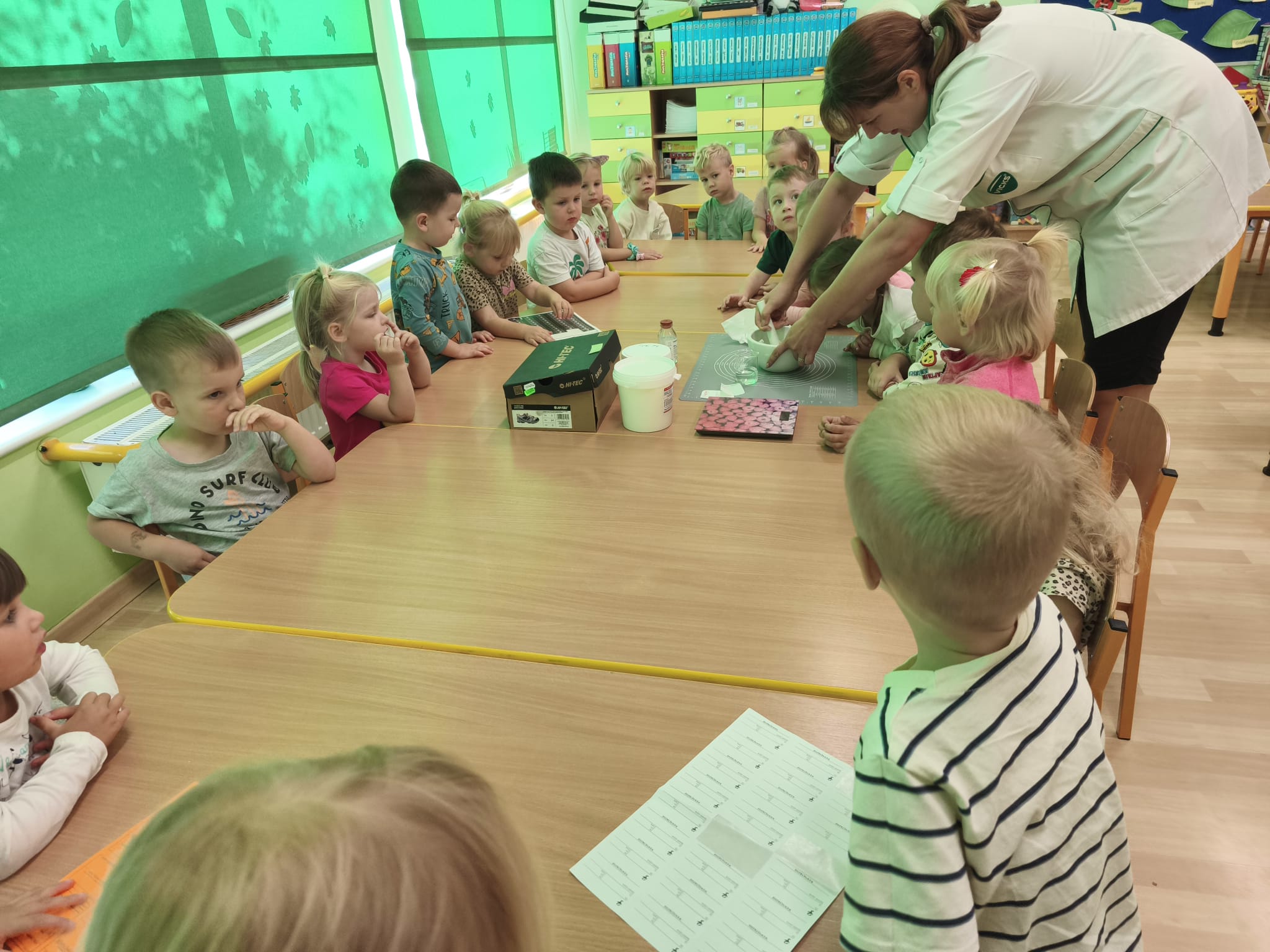 W tym tygodniu grupę Biedronki odwiedziła Pani Farmaceutka, która w ciekawy i bardzo praktyczny sposób przybliżyła dzieciom swoją pracę. Przedszkolaki dowiedziały się, jak powstają kremy i jakie składniki są potrzebne do ich przygotowania.