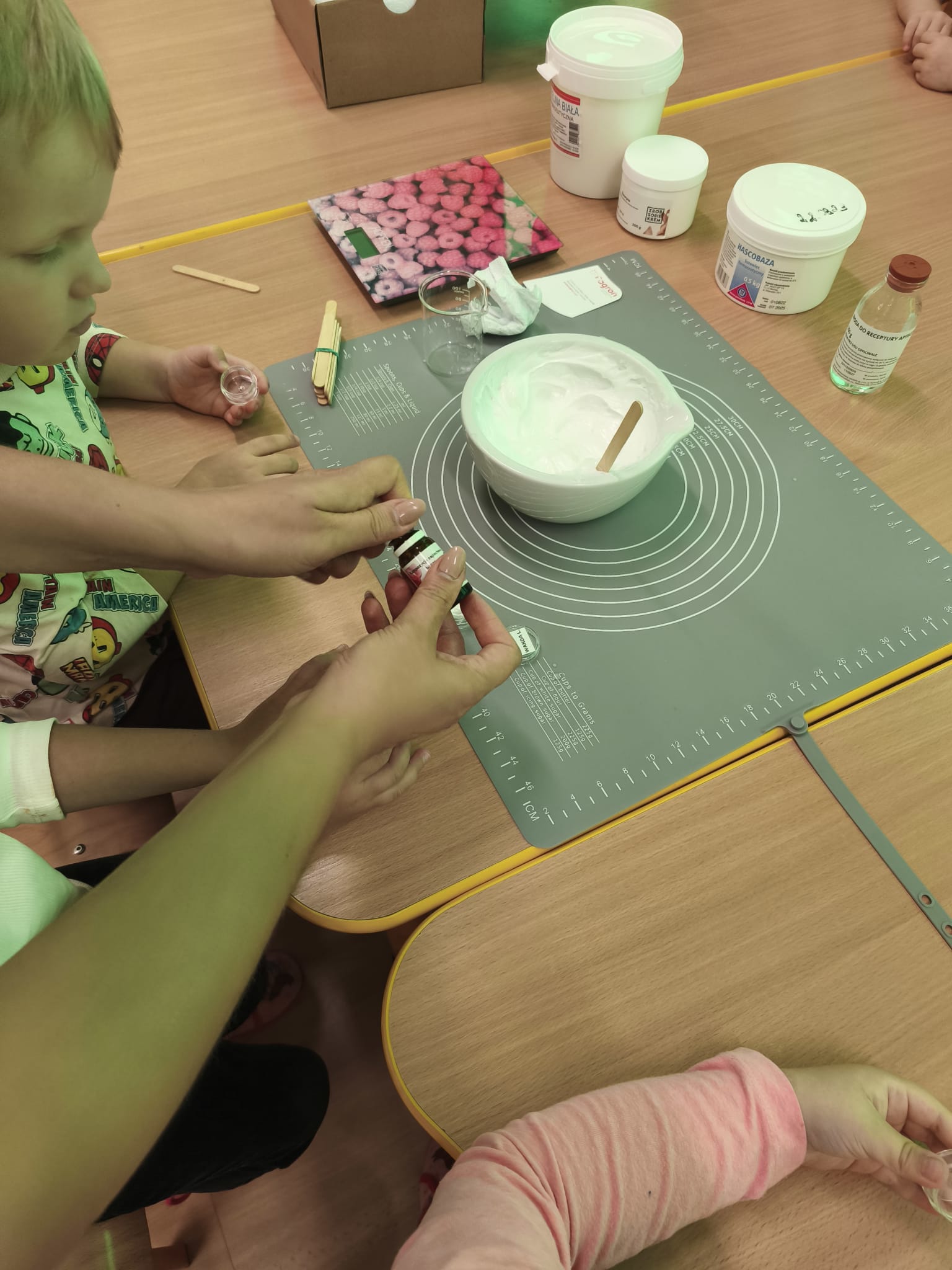 Największą atrakcją było samodzielne mieszanie składników i tworzenie własnych kremików! Dzieci mogły powąchać pachnące olejki, wybrać ulubione zapachy i z dumą zabrały do domu swoje wyjątkowe kosmetyki.