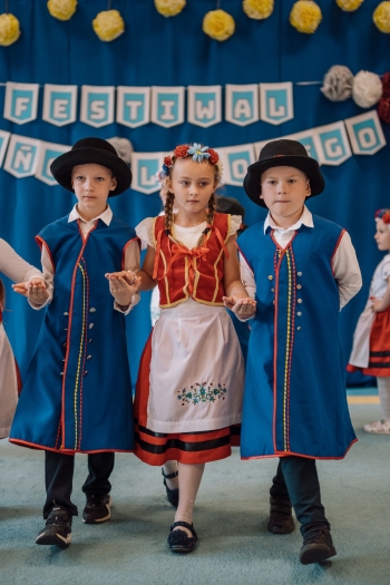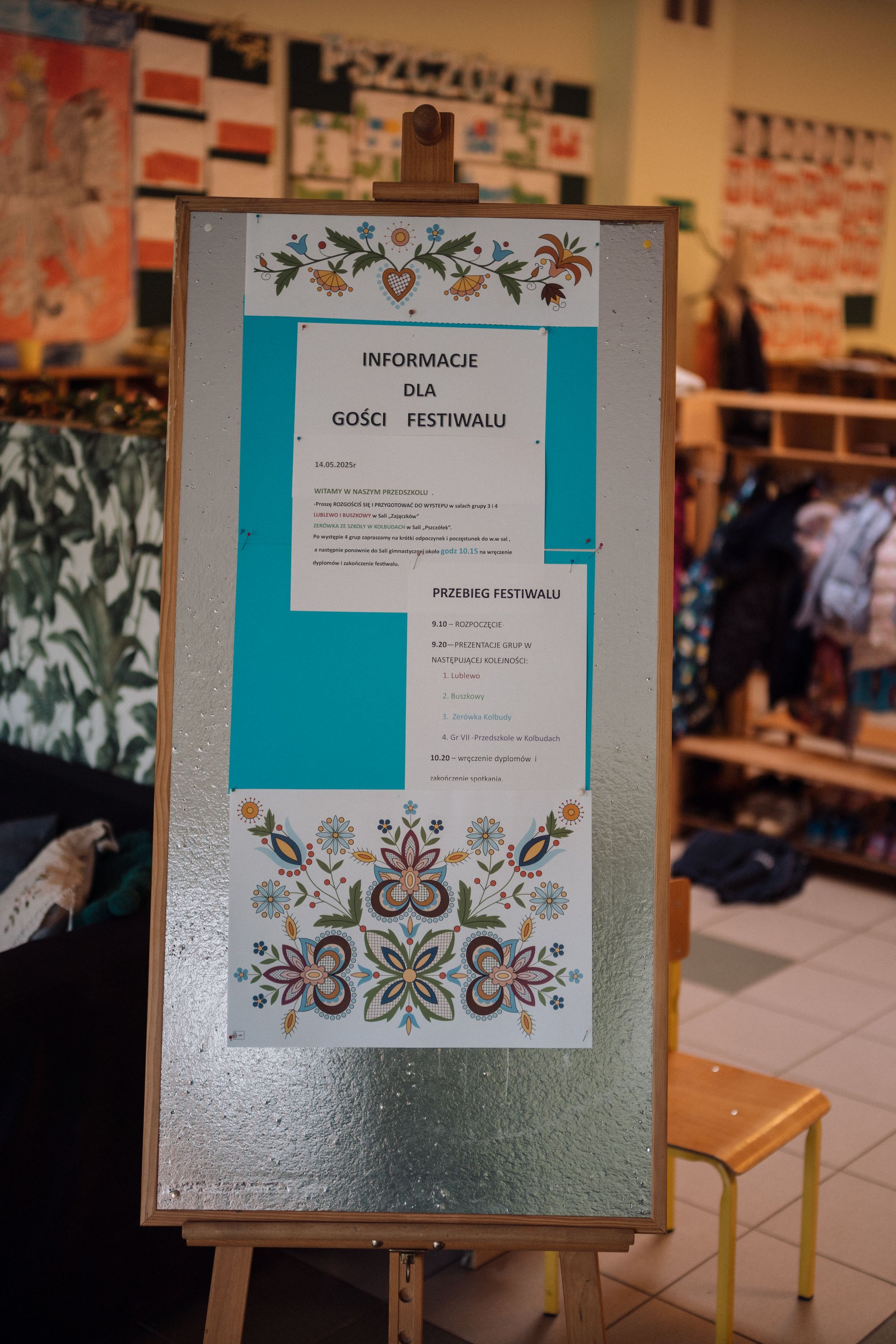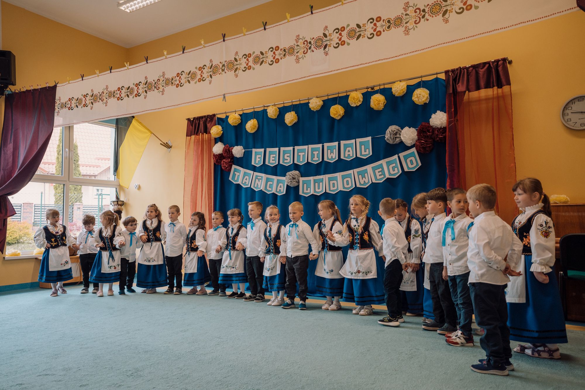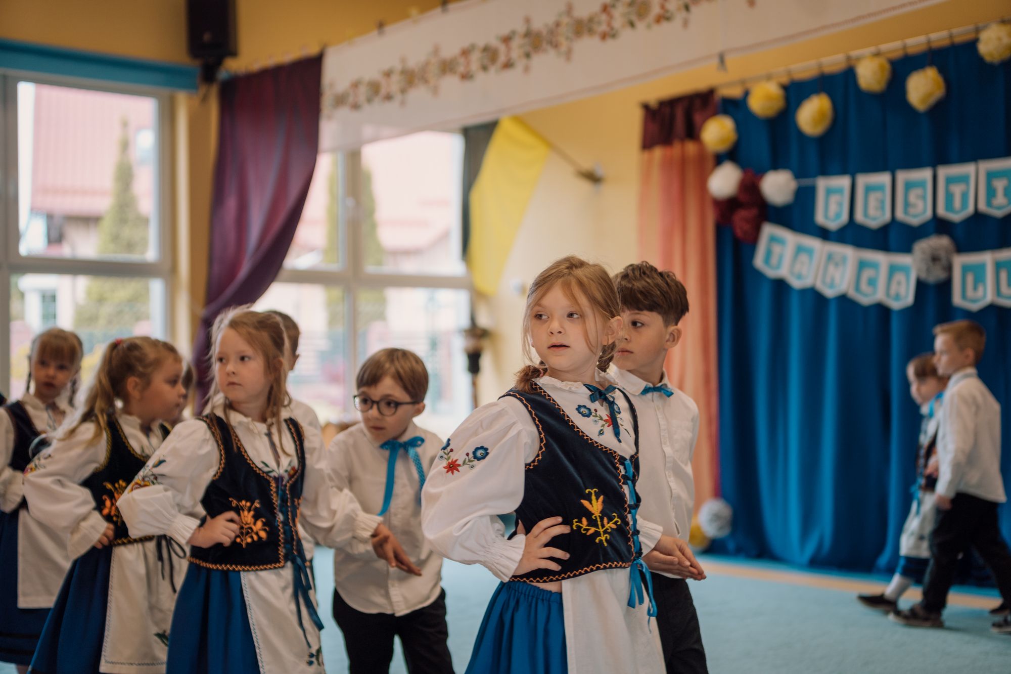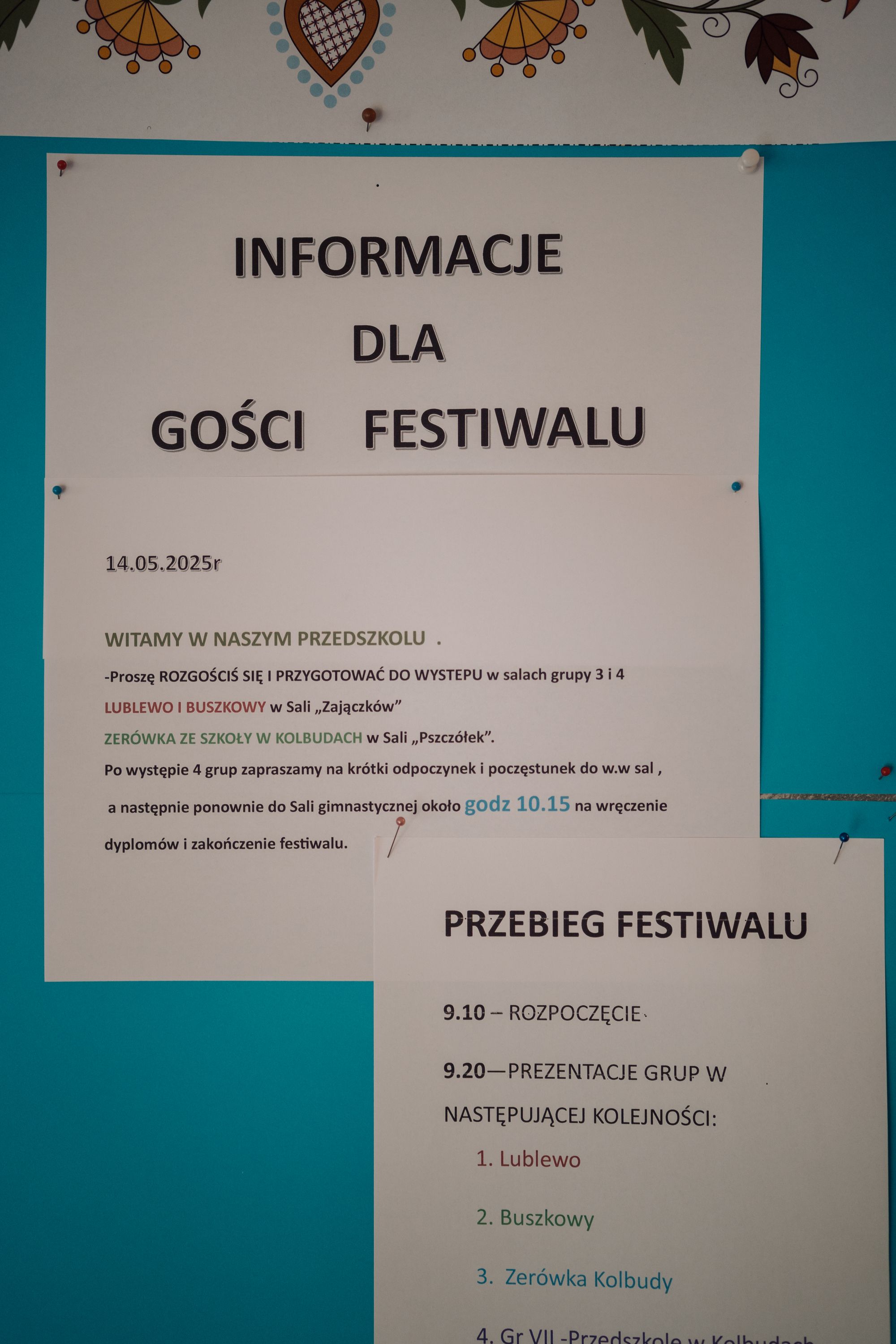Grupa Motyli rozpoczęła festiwal uroczystym „Polonezem” w strojach kaszubskich. Następnie tancerze z Lublewa zaprezentowali 2 tańce: „Szewc” oraz „Chodzony”. Dzieci z Filii w Buszkowych zatańczyły „Polkę” . Zerówka „0 b ” zaprezentowała taniec „Gaik-maik”. Motyle na zakończenie części artystycznej zatańczyły taniec warmińsko- mazurski „Szot”. Po krótkiej przerwie Pani Kasia ubrana w krzczonowki strój ludowy,