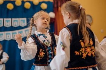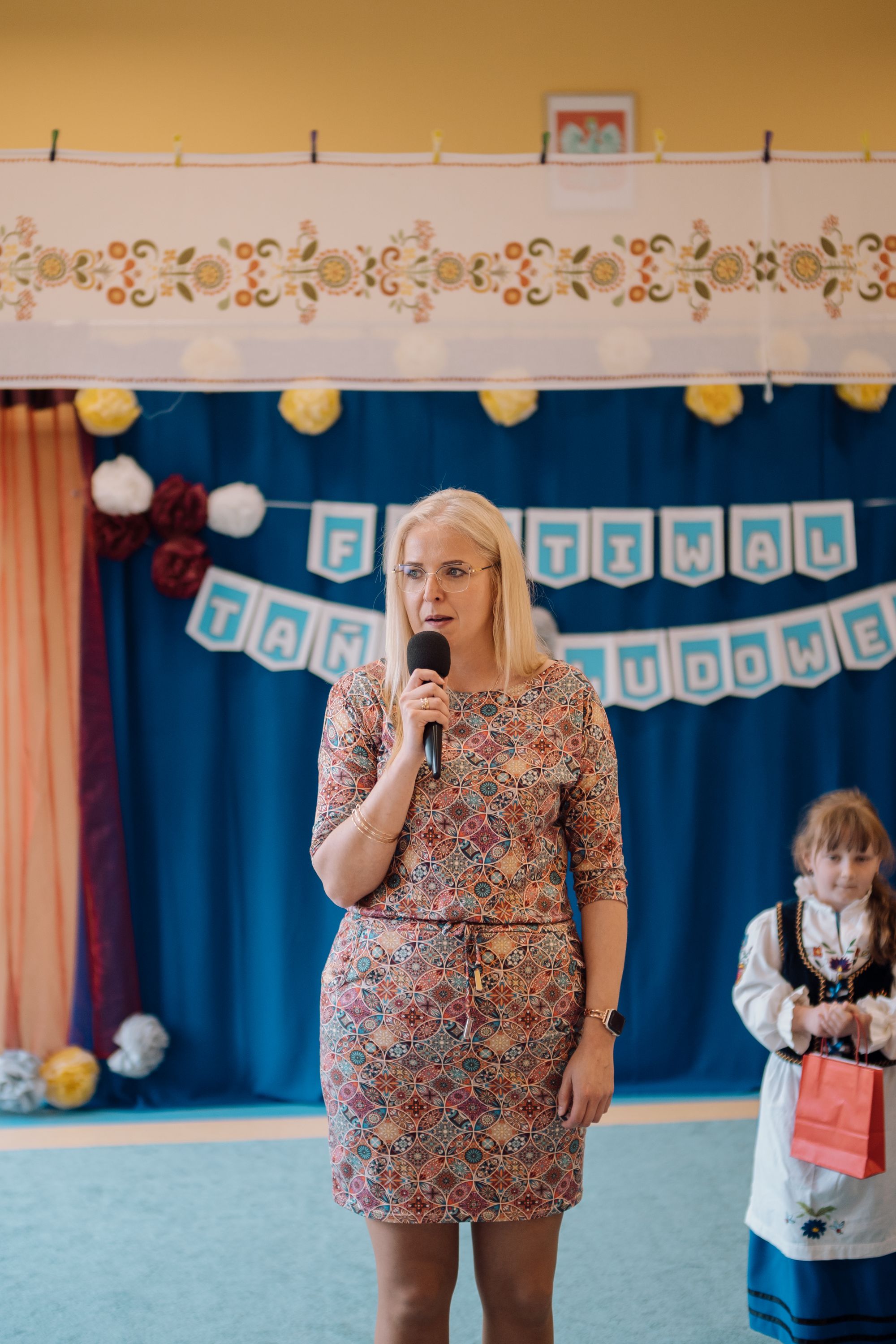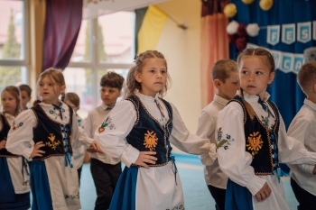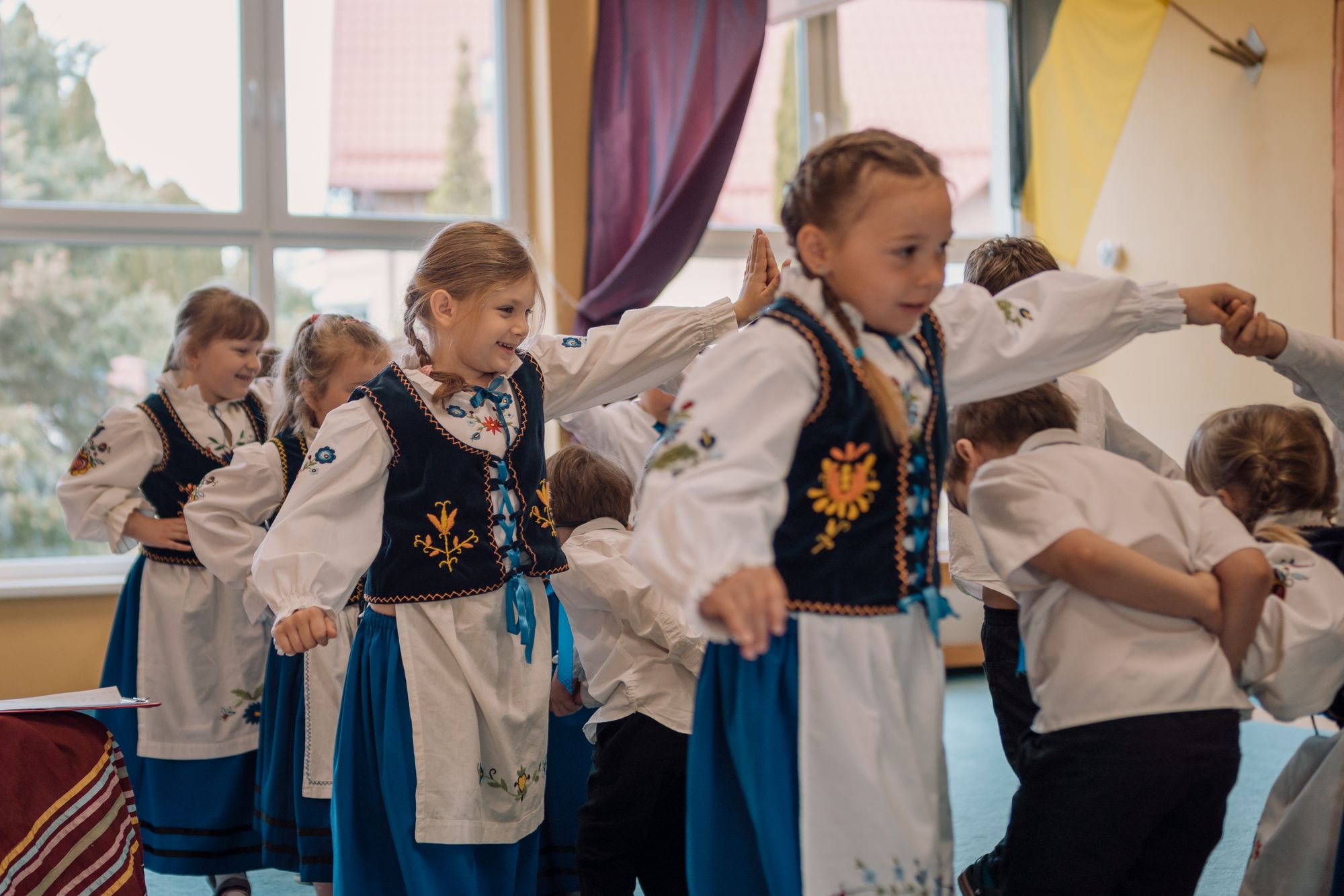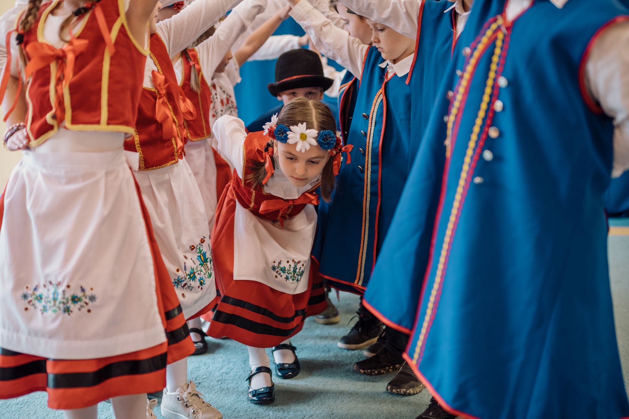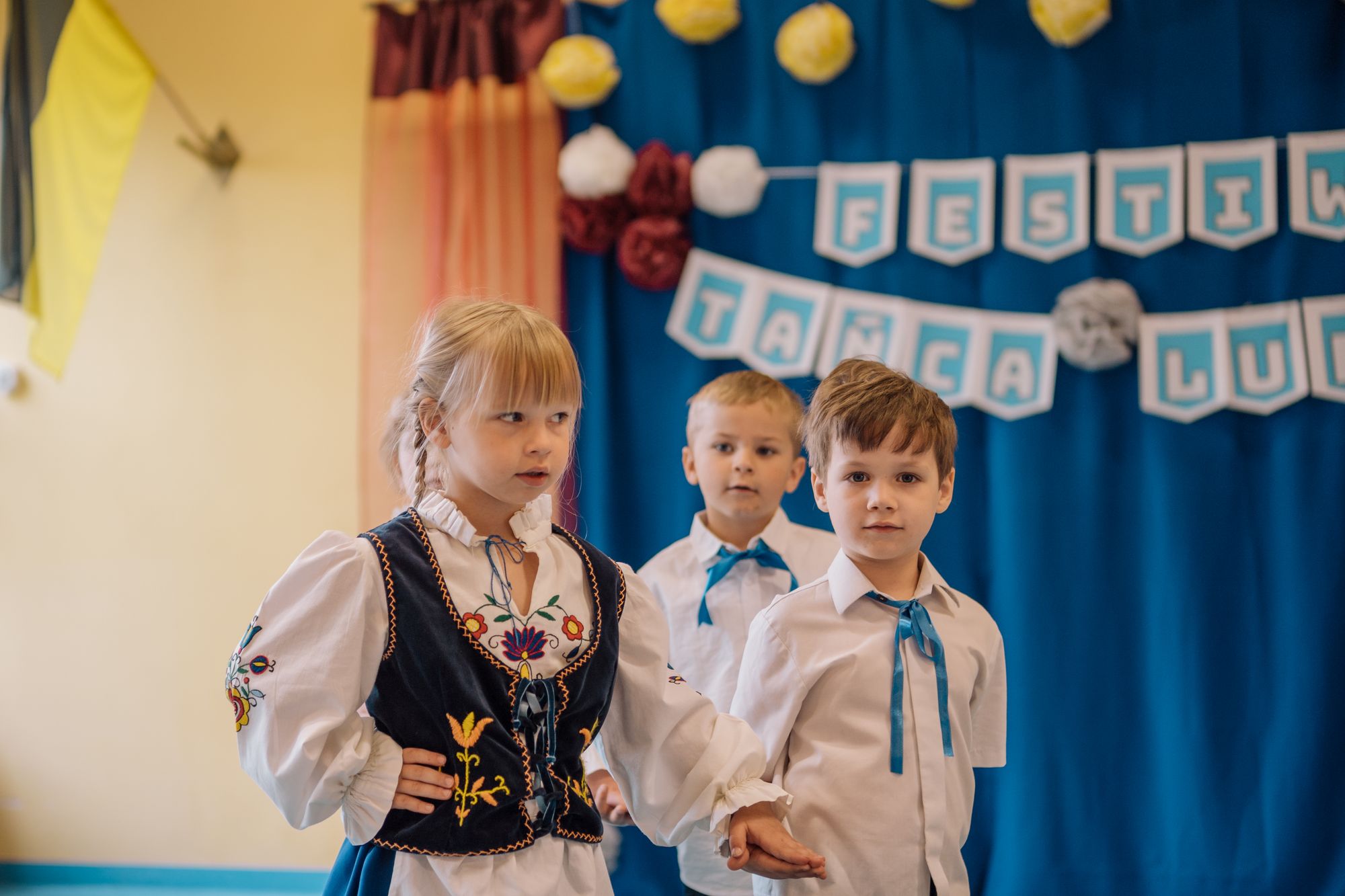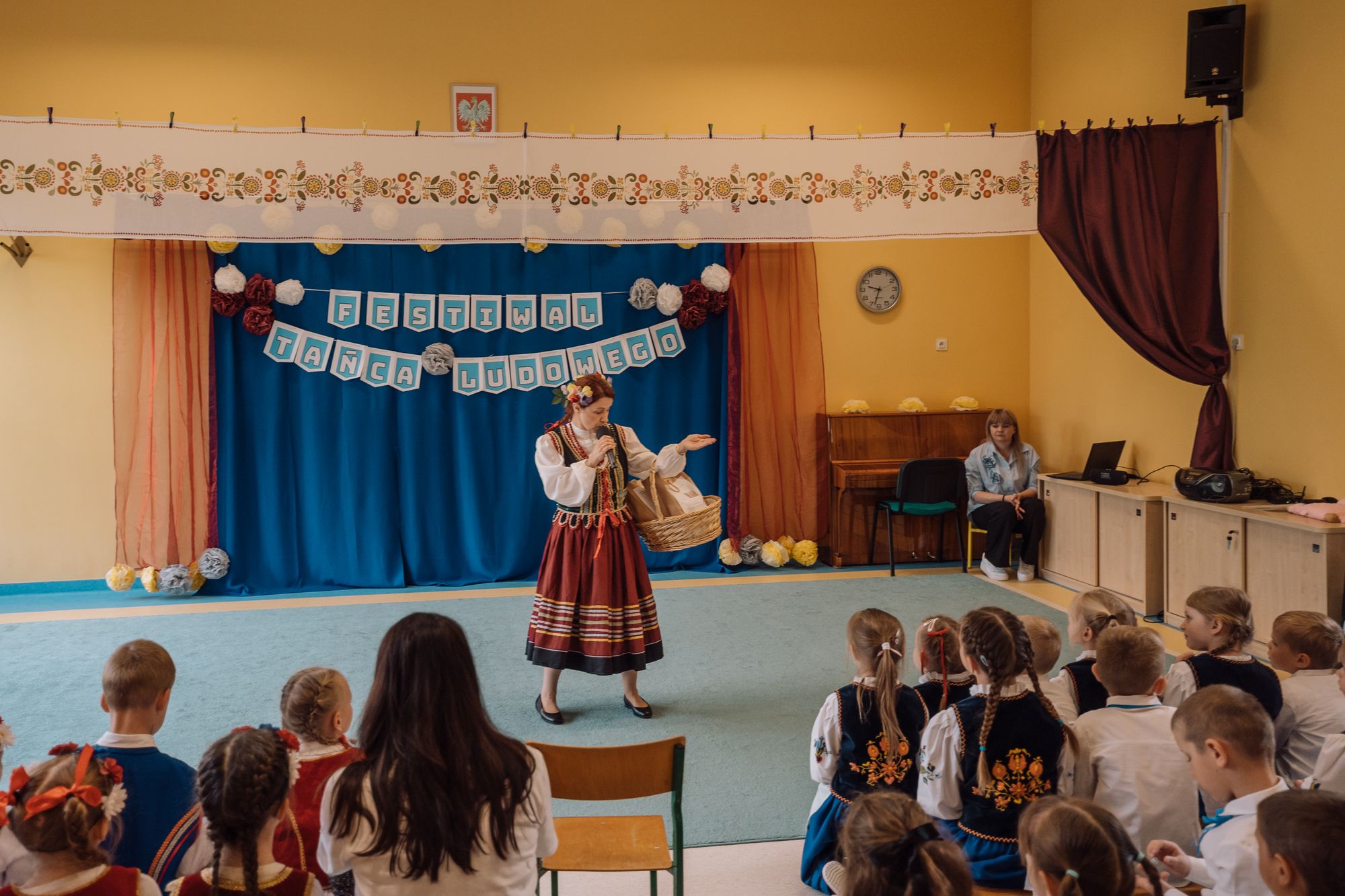 Grupa Motyli rozpoczęła festiwal uroczystym „Polonezem” w strojach kaszubskich. Następnie tancerze z Lublewa zaprezentowali 2 tańce: „Szewc” oraz „Chodzony”. Dzieci z Filii w Buszkowych zatańczyły „Polkę” . Zerówka „0 b ” zaprezentowała taniec „Gaik-maik”. Motyle na zakończenie części artystycznej zatańczyły taniec warmińsko- mazurski „Szot”. Po krótkiej przerwie Pani Kasia ubrana w krzczonowki strój ludowy,