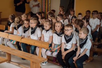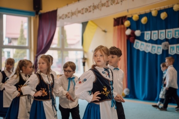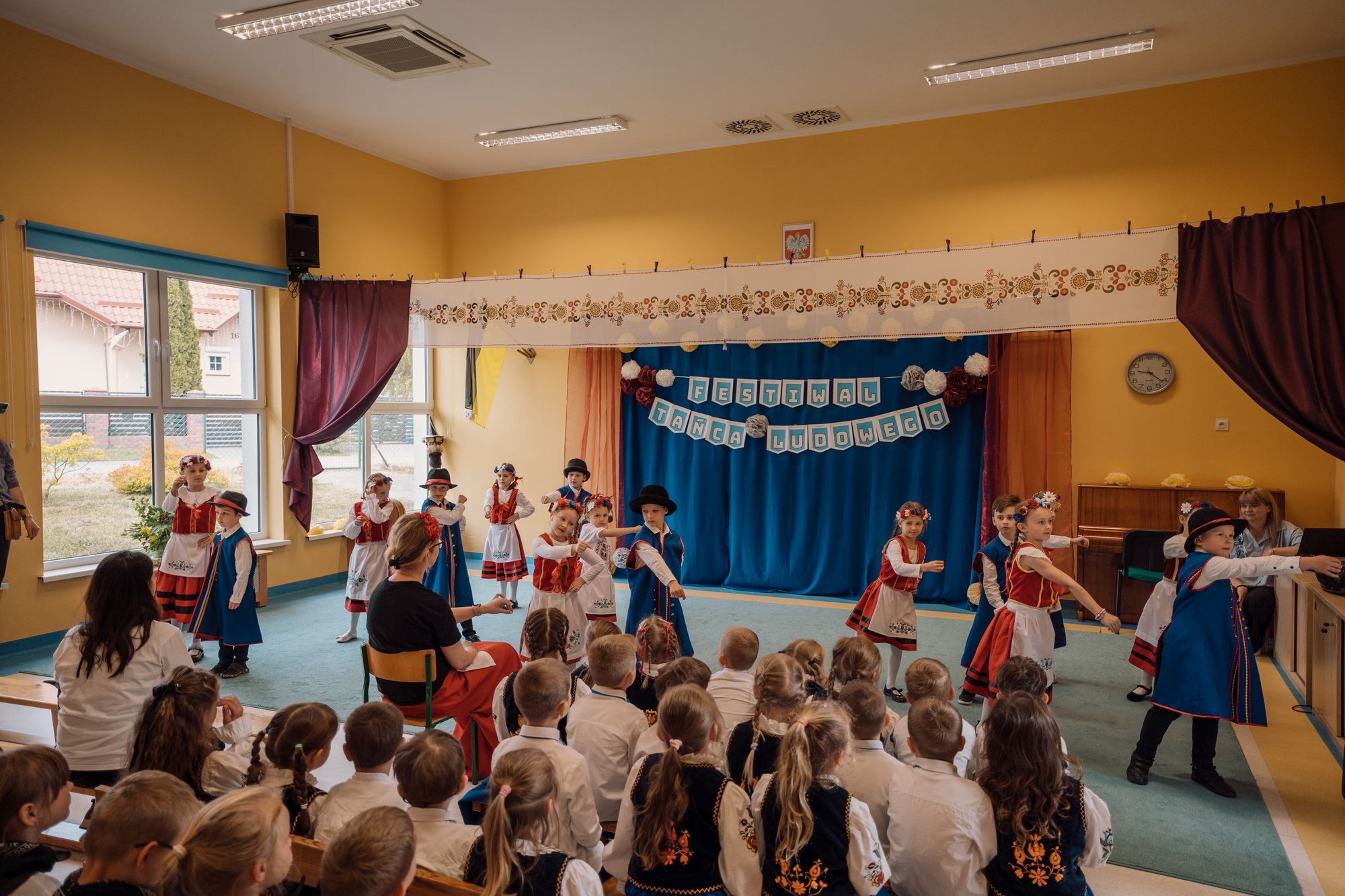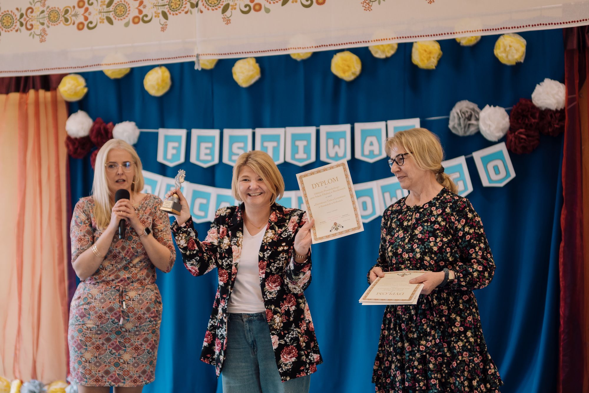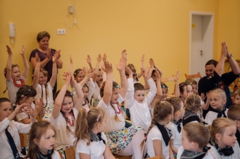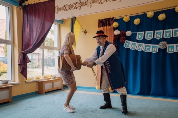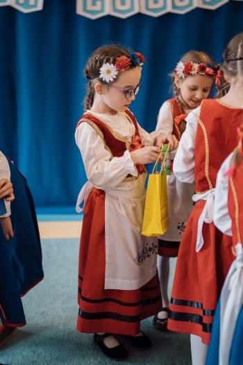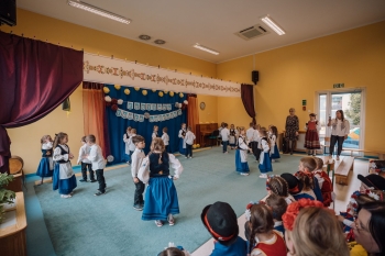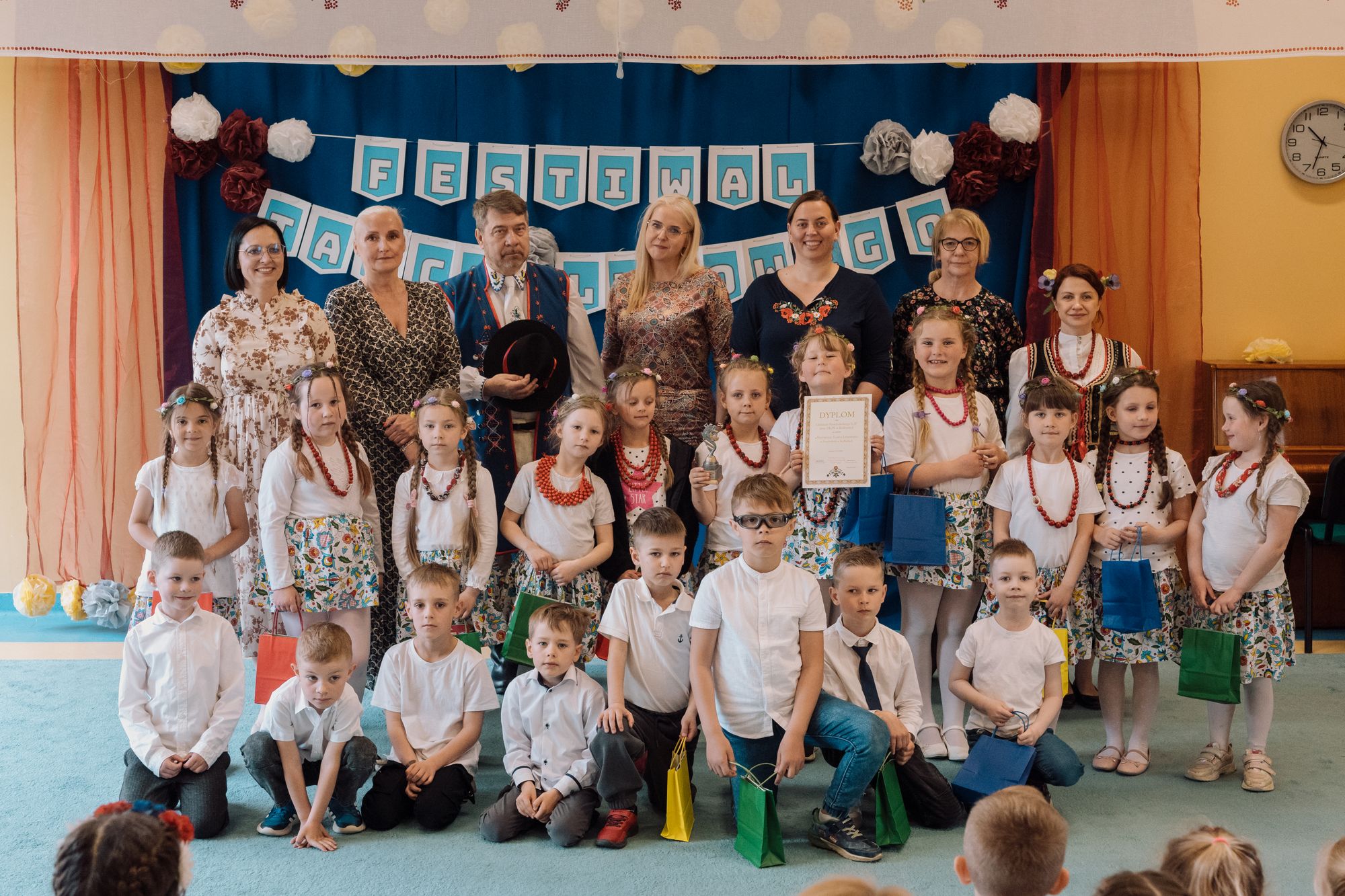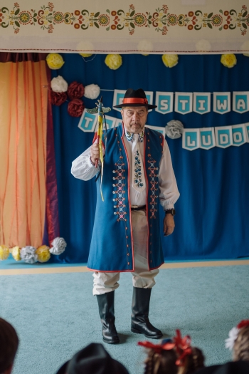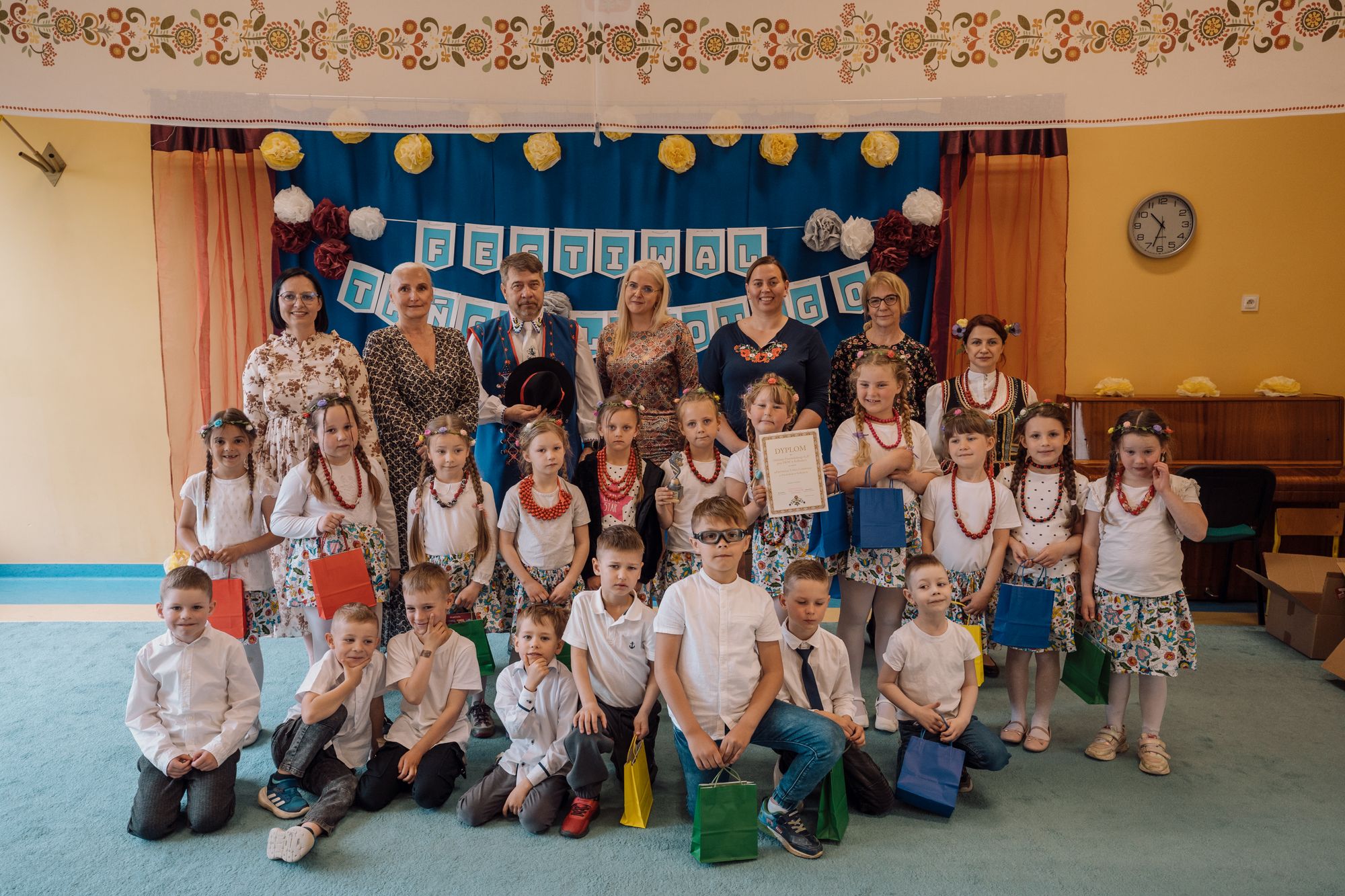 zaśpiewała popularną przyśpiewkę "Do samego Lublina 100 dróżeczek prowadzi" częstując wszystkich lubelskimi specjałami -cebularzami. Pan Przemysław w kaszubkim stroju zagrał na burczybasie i diabelskich skrzypcach. Przybyłym grupom wręczono dyplomy i pamiątkowe statuetki, a dzieciom drobne upominki zakupione przez firmę Richert. Dziękujemy za uwiecznienie tego wydarzenia Pani Marcie Papis – fotograf.