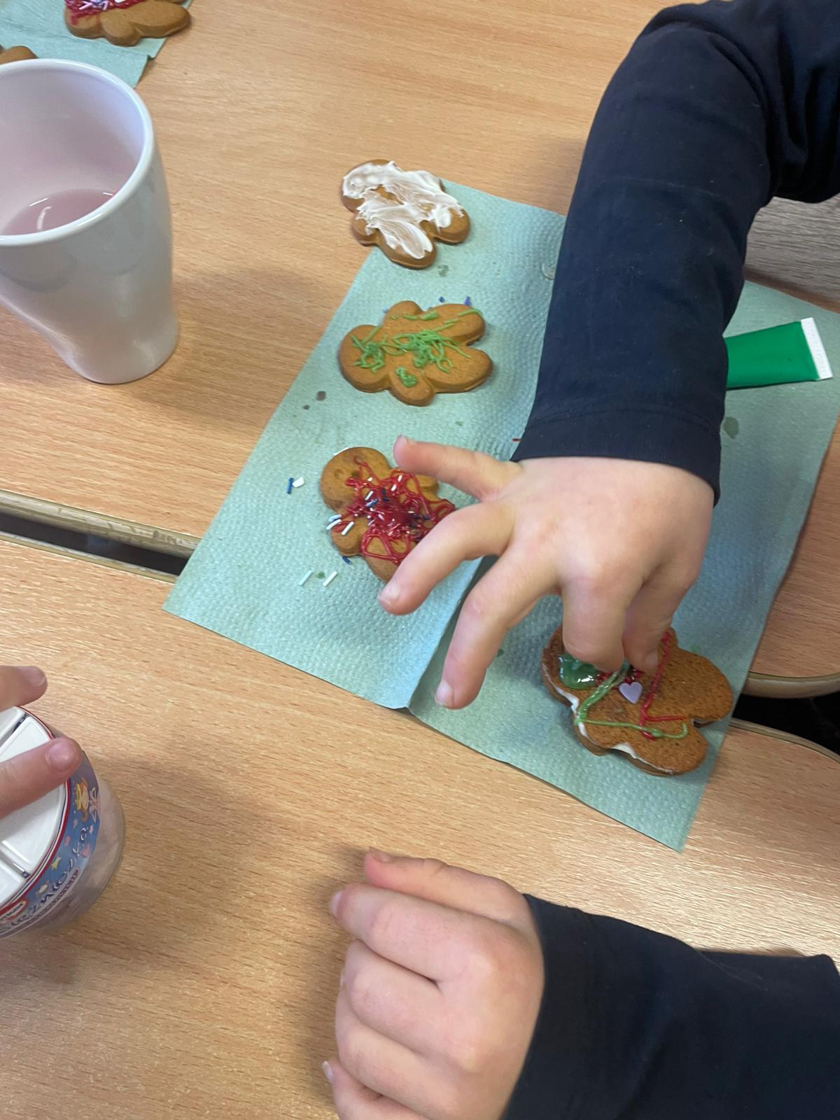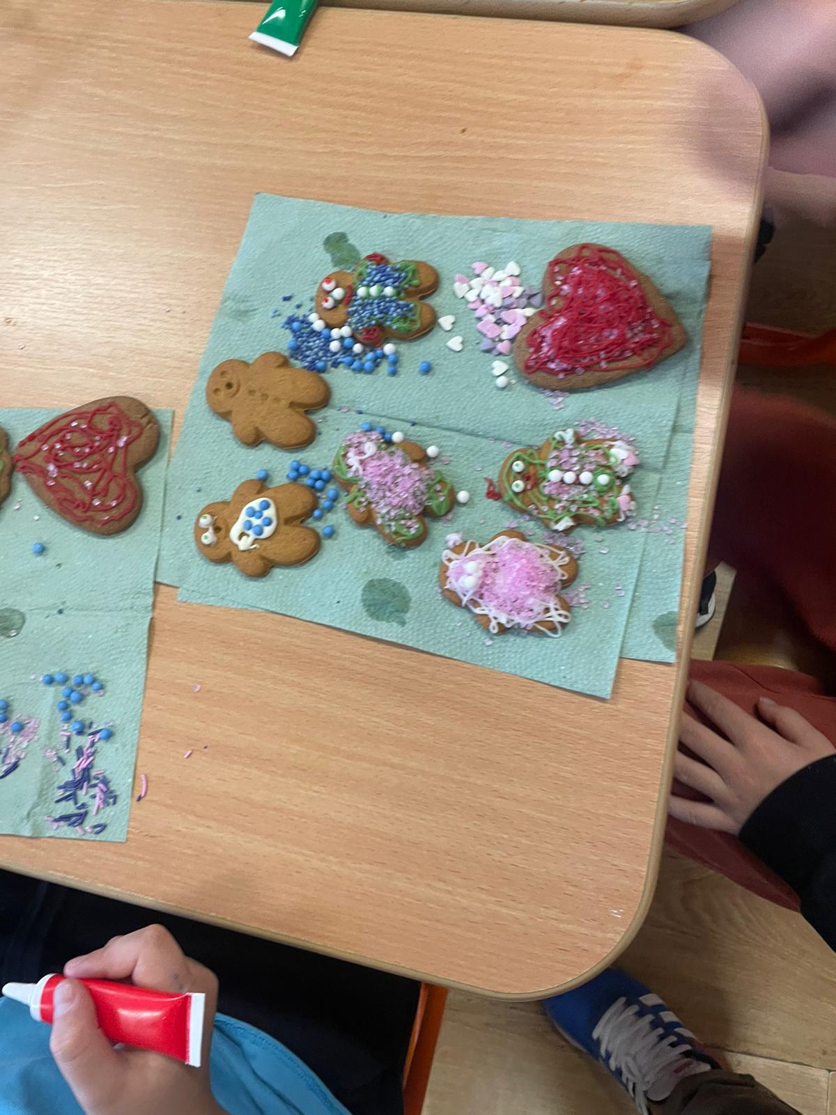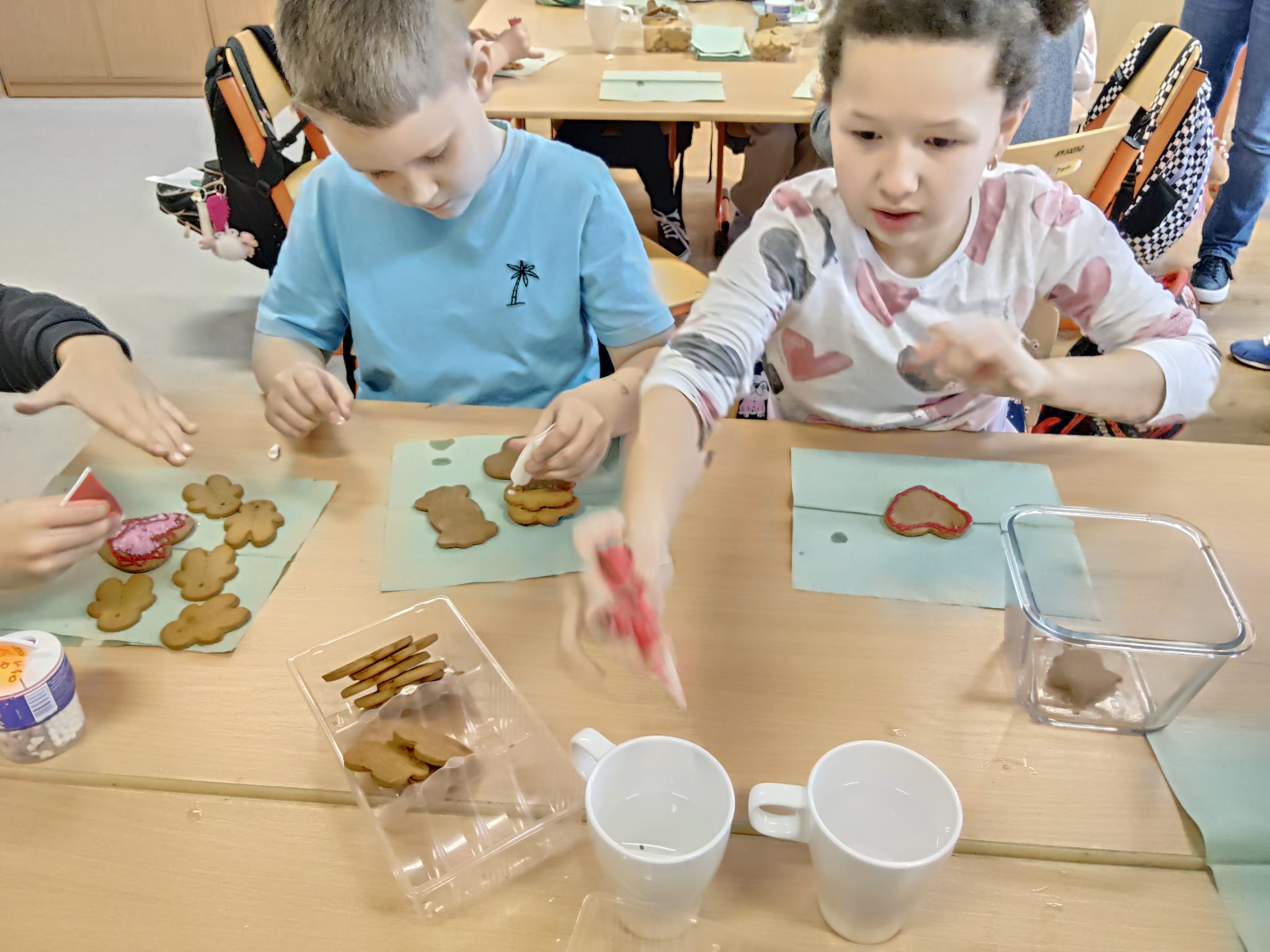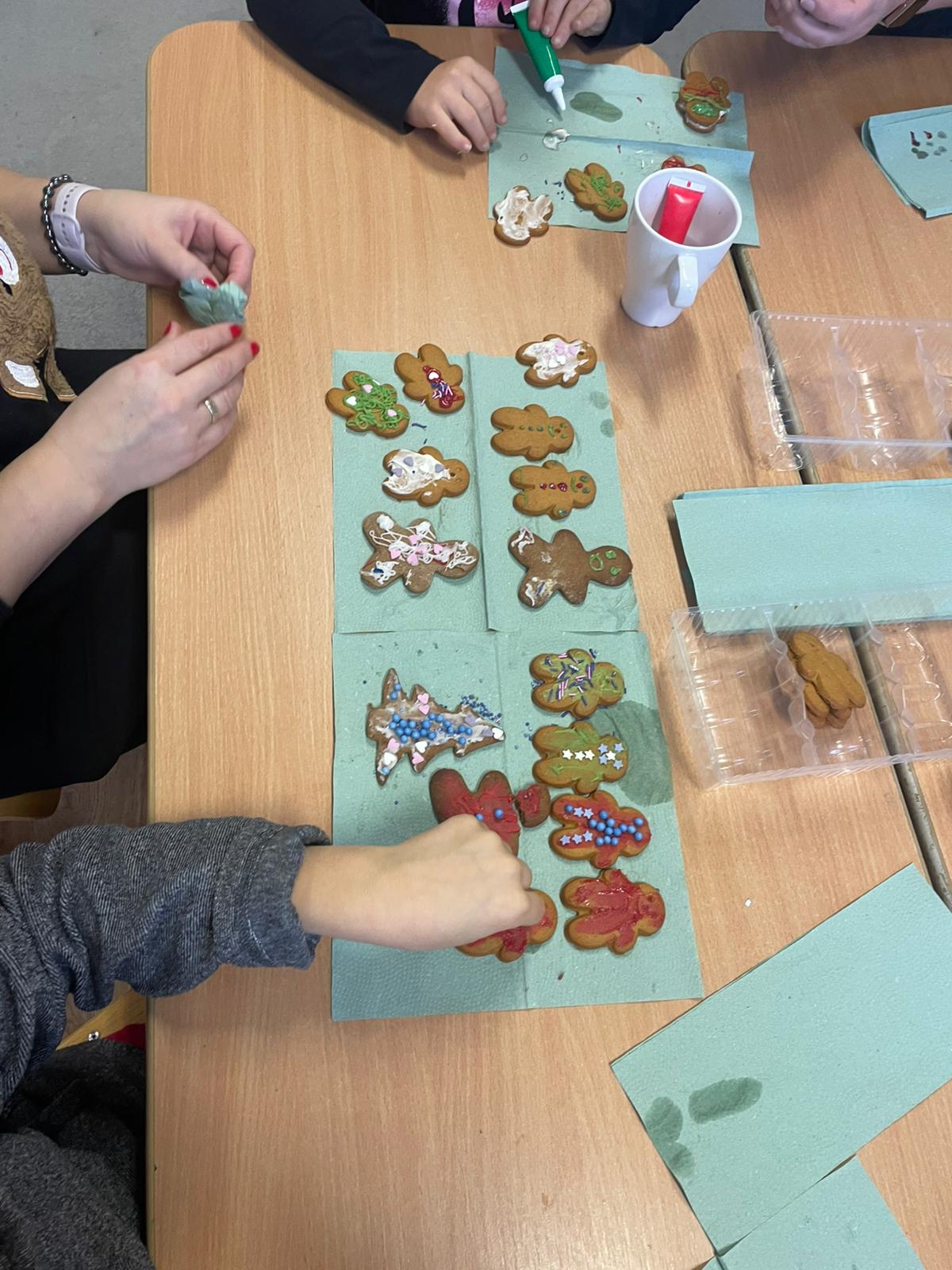 W naszej szkole unosił się dziś wyjątkowy, świąteczny aromat - wszystko za sprawą dekorowania pierników, w których z ogromnym entuzjazmem uczestniczyły dzieci z grupy Zajączków oraz uczniowie klasy 1,2 i 3. Przy stołach pełnych kolorowych lukrów, posypek i pachnących wypieków, powstawały prawdziwe małe dzieła sztuki. Każdy piernik był inny: jedne zdobione delikatnymi wzorami, inne pełne barw i fantazji, a wszystkie wykonane z wielkim zaangażowaniem i radością.