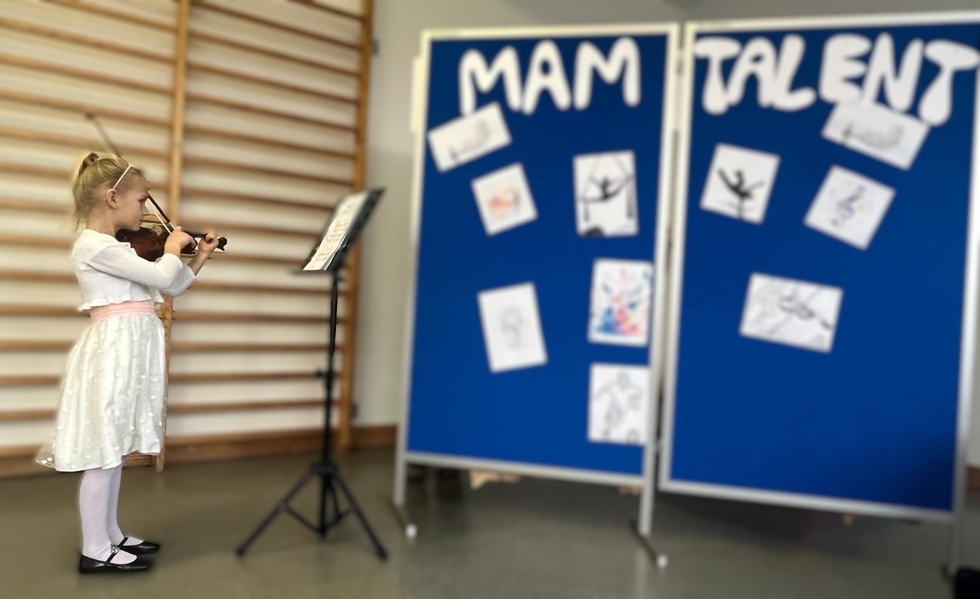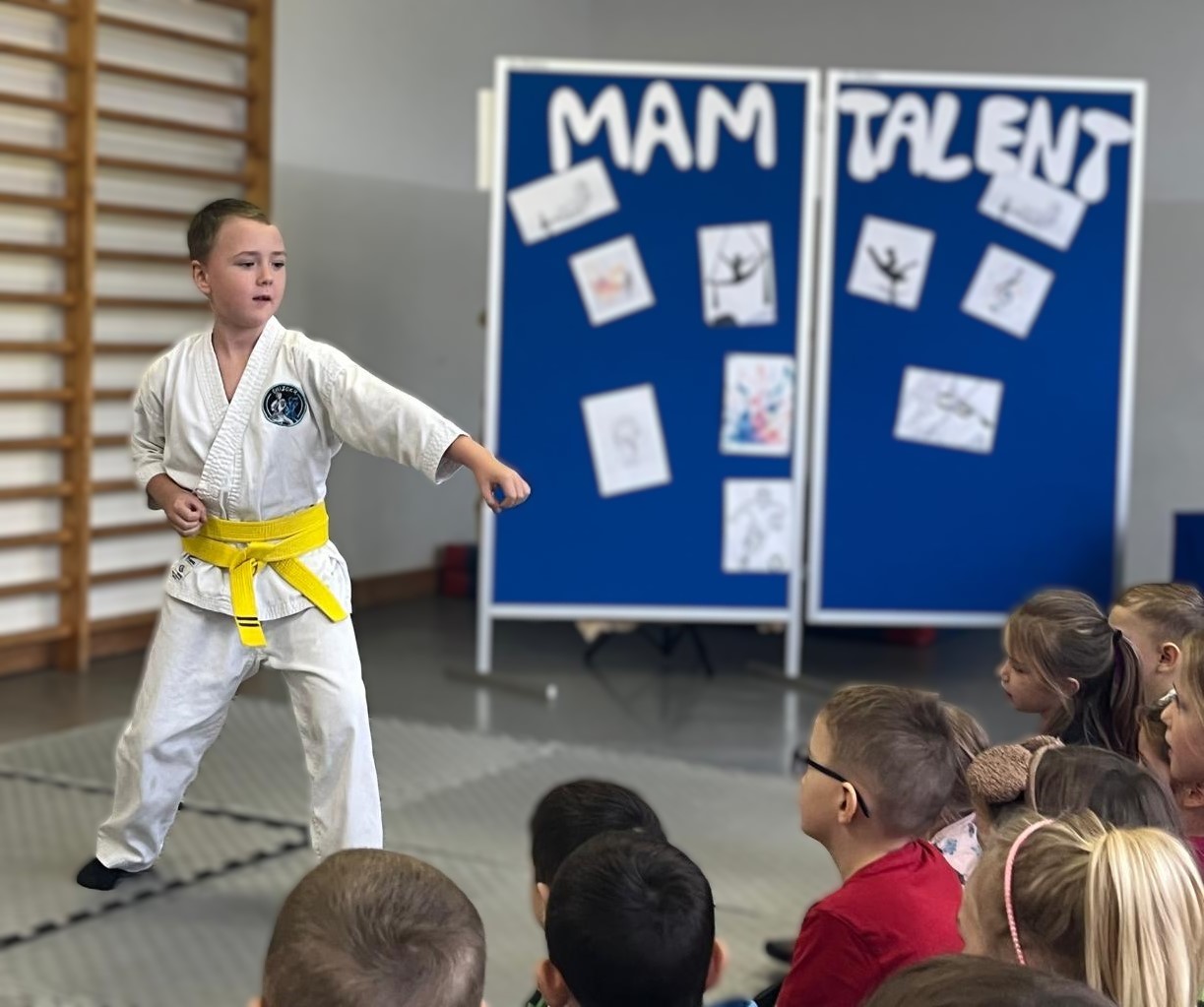 W dniu 20.11.2025r. w naszej szkole odbył się wyjątkowy konkurs "Mam Talent" , który zgromadził uczniów pełnych pasji, energii i kreatywności. Na scenie mogliśmy podziwiać różnorodne występy - od śpiewu i gry na instrumentach, przez prezentowanie wiedzy o komputerach i dinozaurach , aż po pokaz malarstwa i karate w dwóch kategoriach wiekowych: 6-7 lat oraz 8-9 lat..