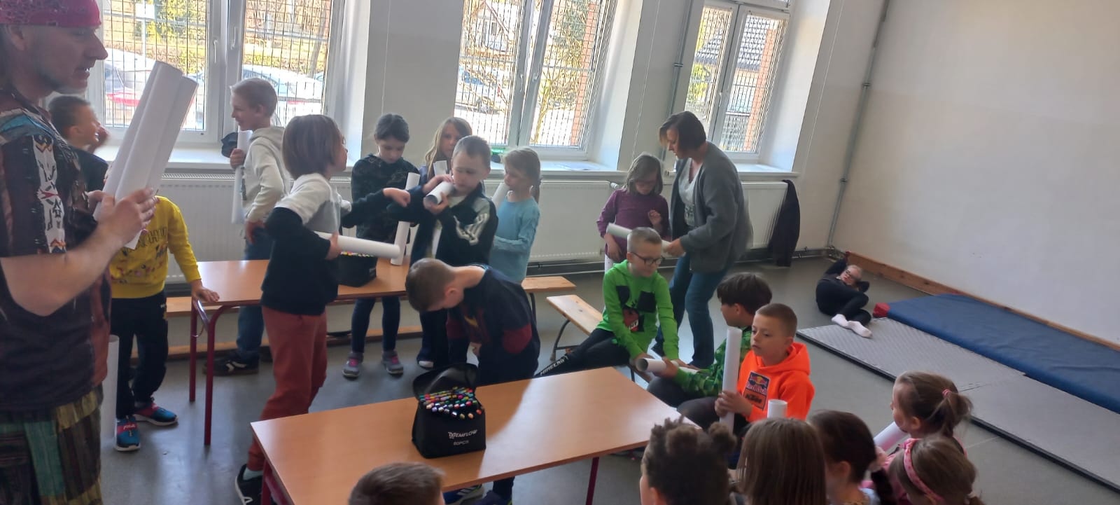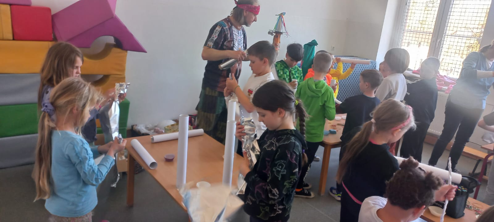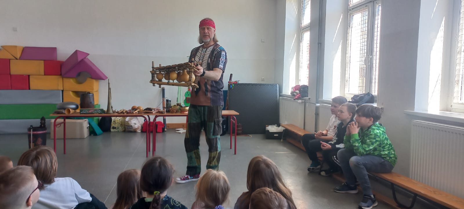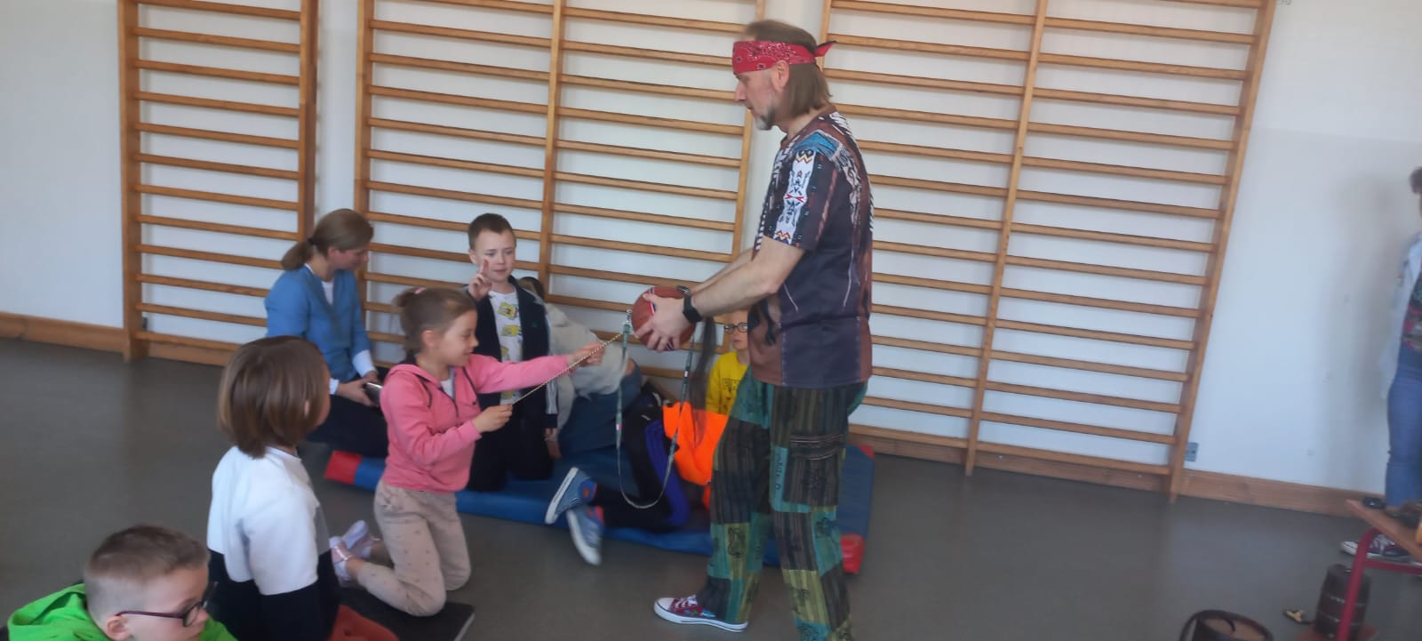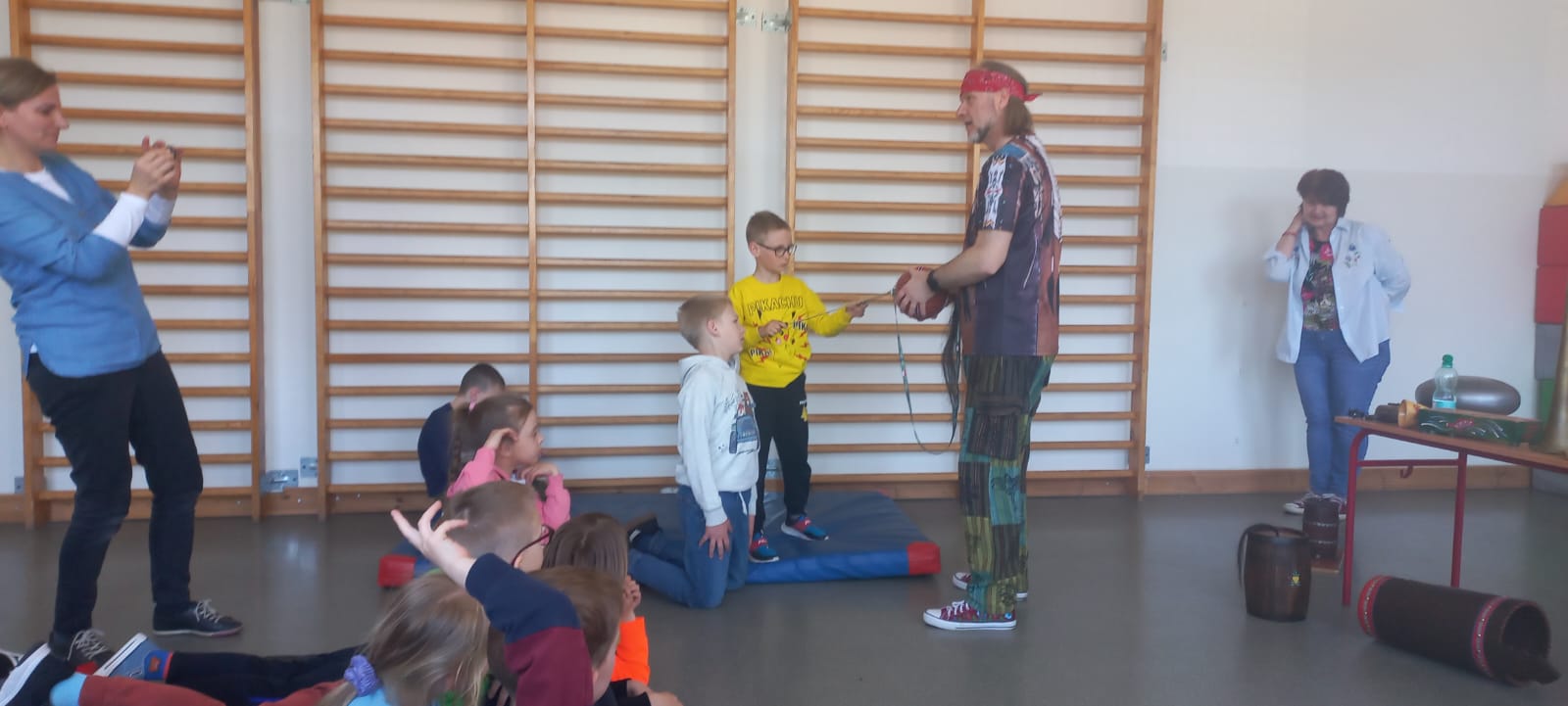 Czarodziej Dźwięków naprawdę zaczarował naszych uczniów - dzieci z wielkim zainteresowaniem wsłuchiwały się w prezentowane dźwięki i aktywnie uczestniczyły w zajęciach.