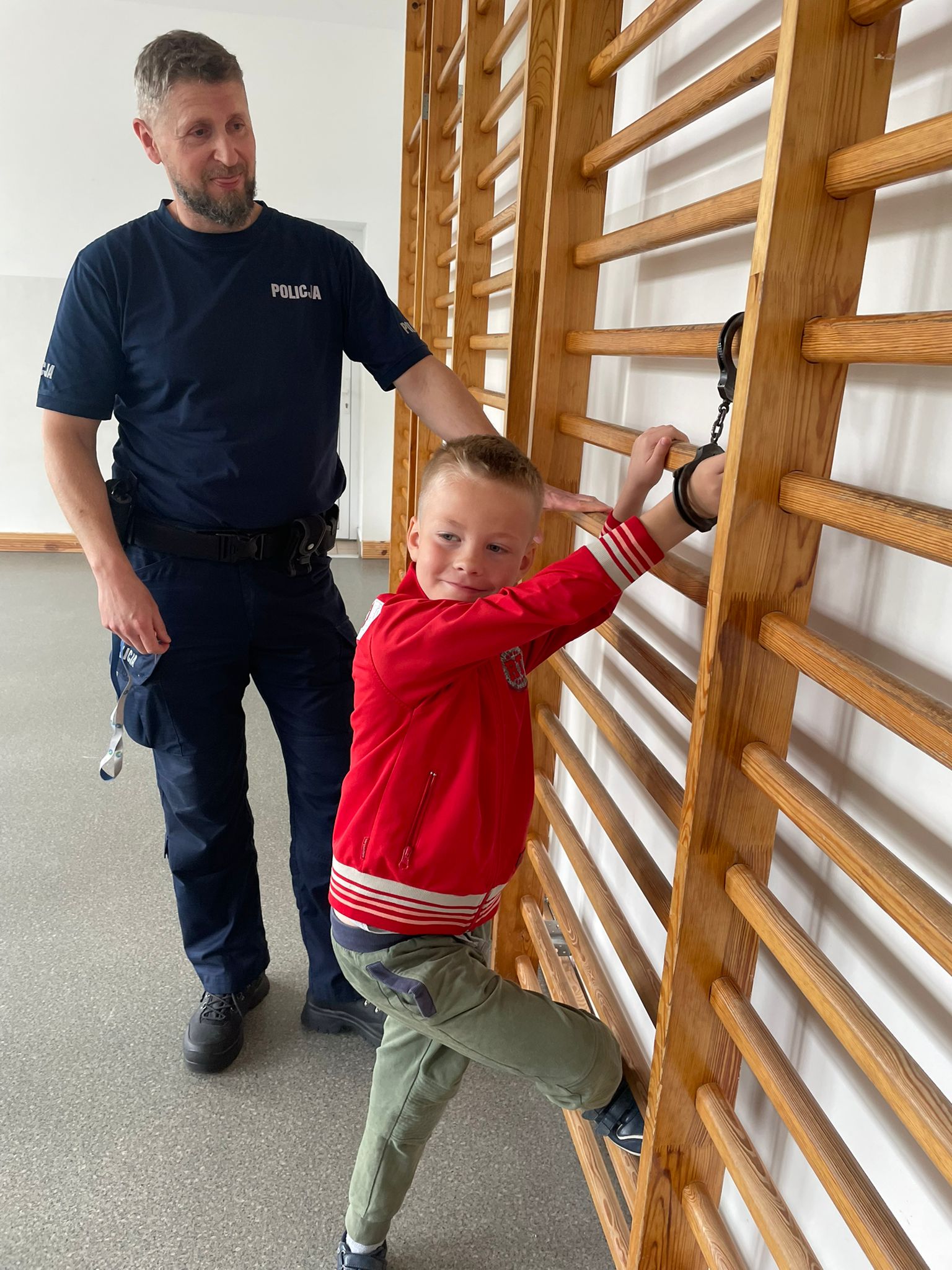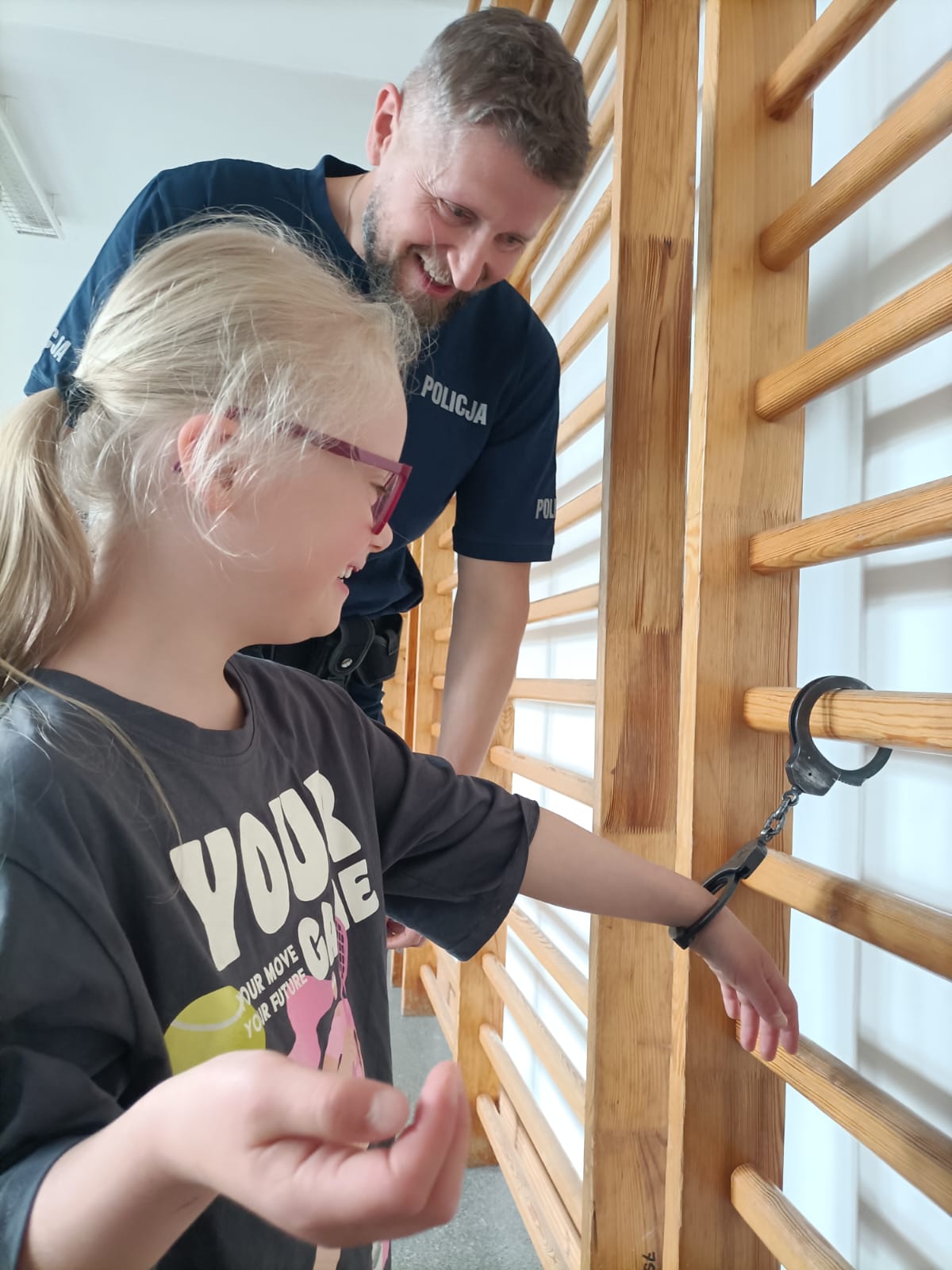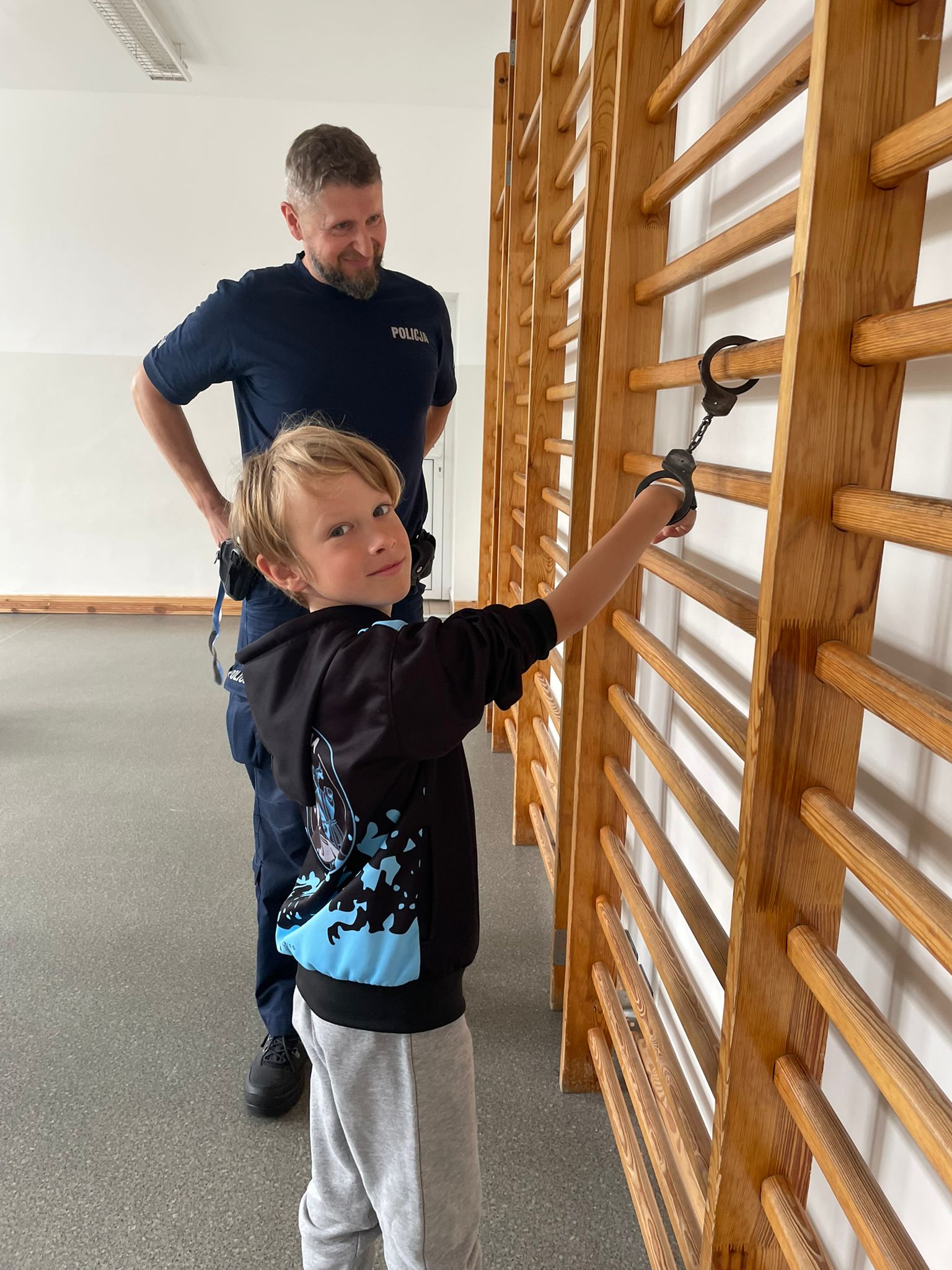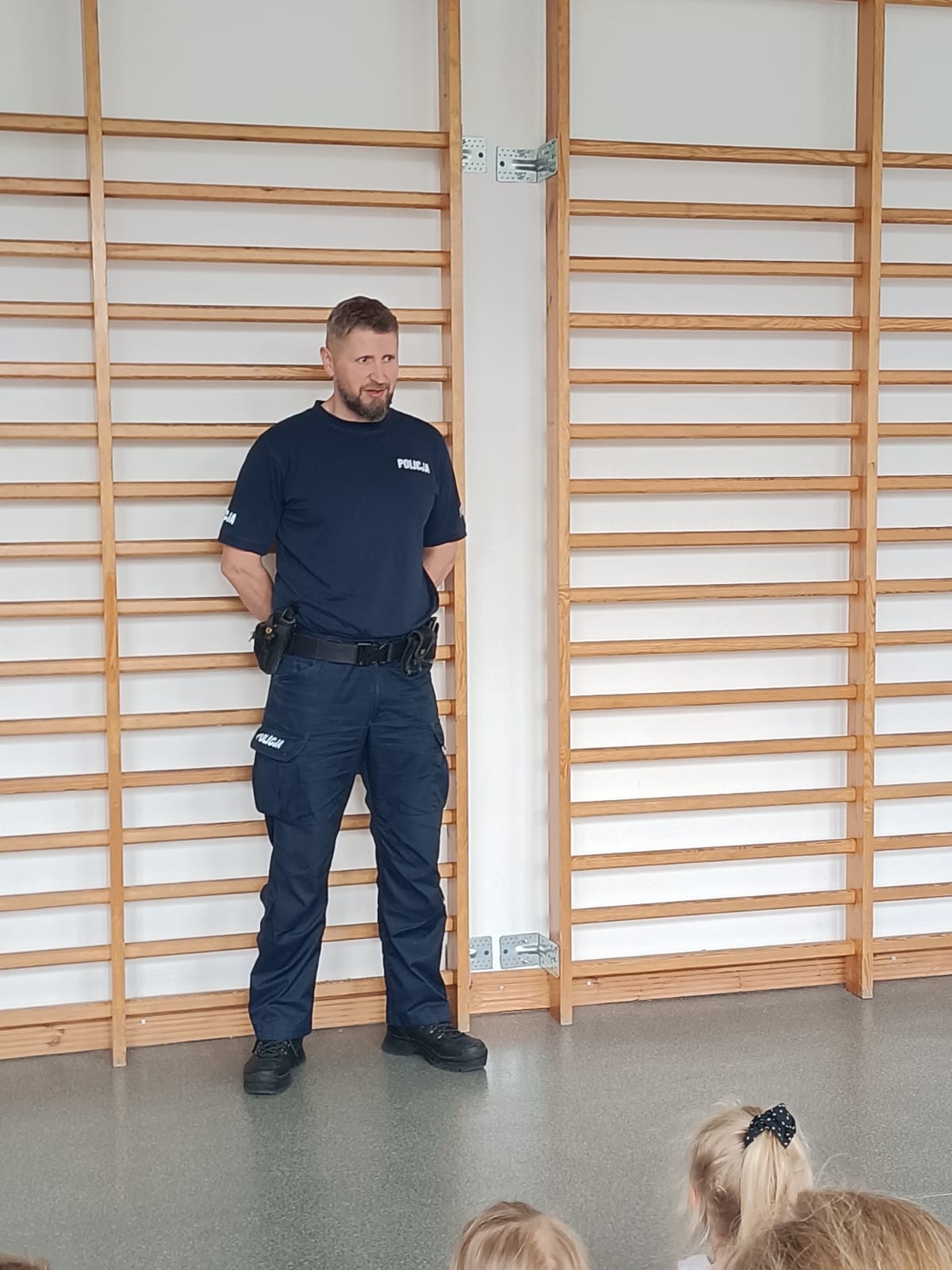 W dniu 17.06.2025r. odwiedził nas pan Jakub Budniak Policjant, który opowiedziła nam o swojej pracy. Uczniowe z klas 1-3 oraz dzieci z grup Zajączków i Jeżyków były bardzo ciekawe tego zawodu i zadawały dużo pytań. Podczas zajęć mogły dotknąć a nawet założyć kajdanki i zobaczyć radiowóz policyjny. Bardzo dziękujemy za odwiedziny.