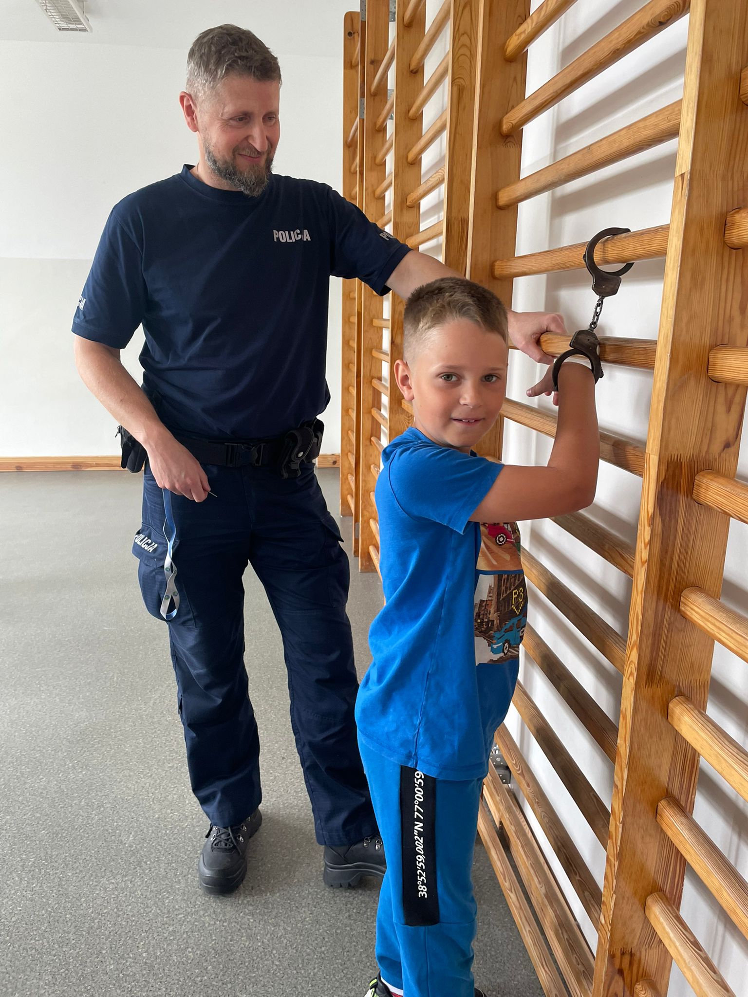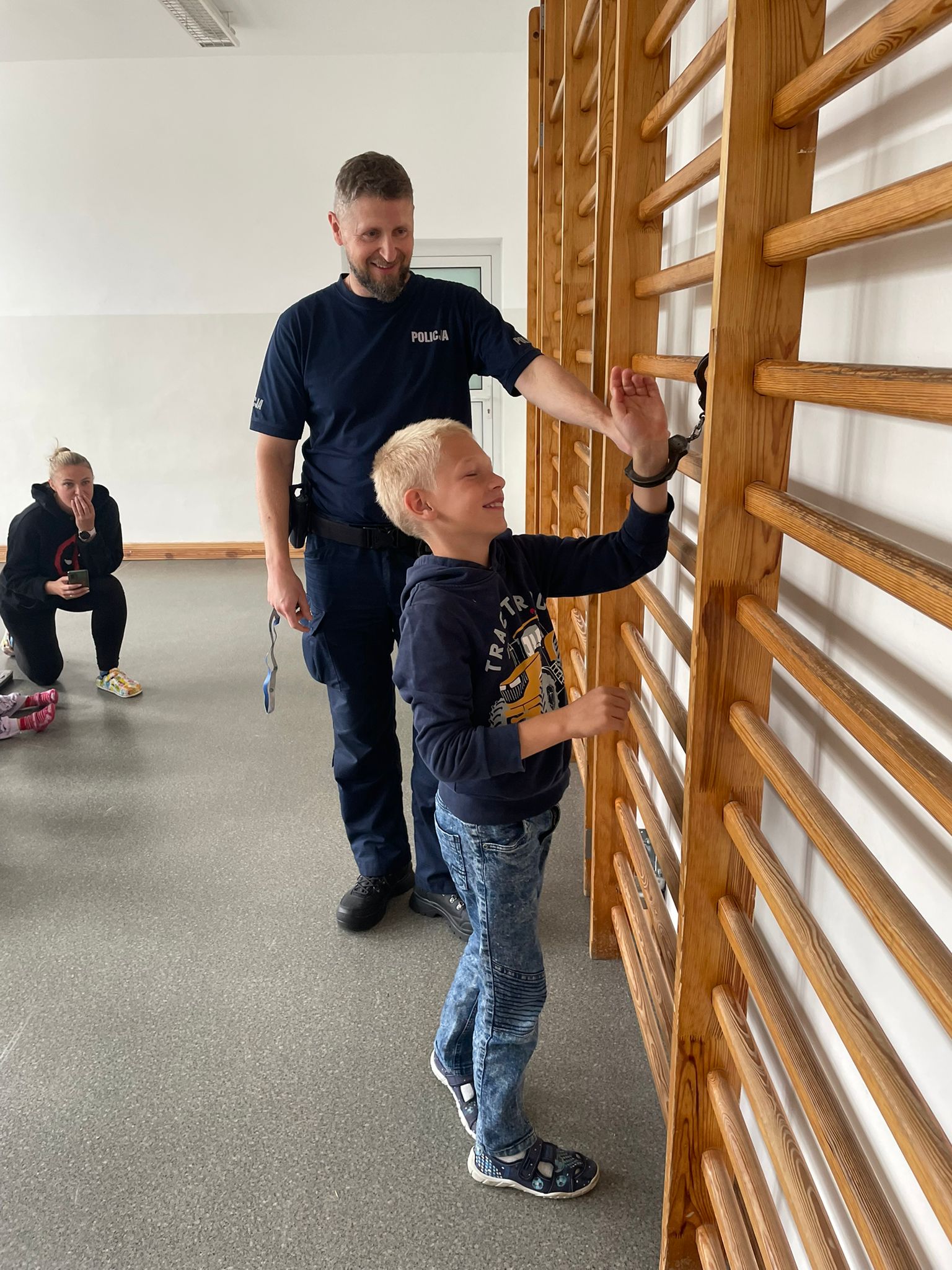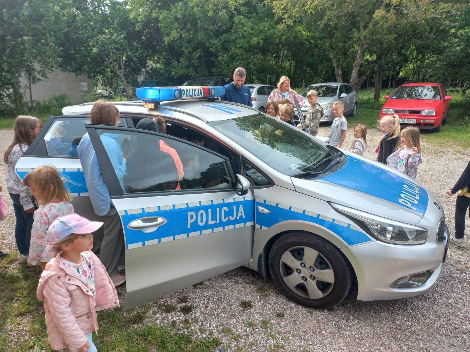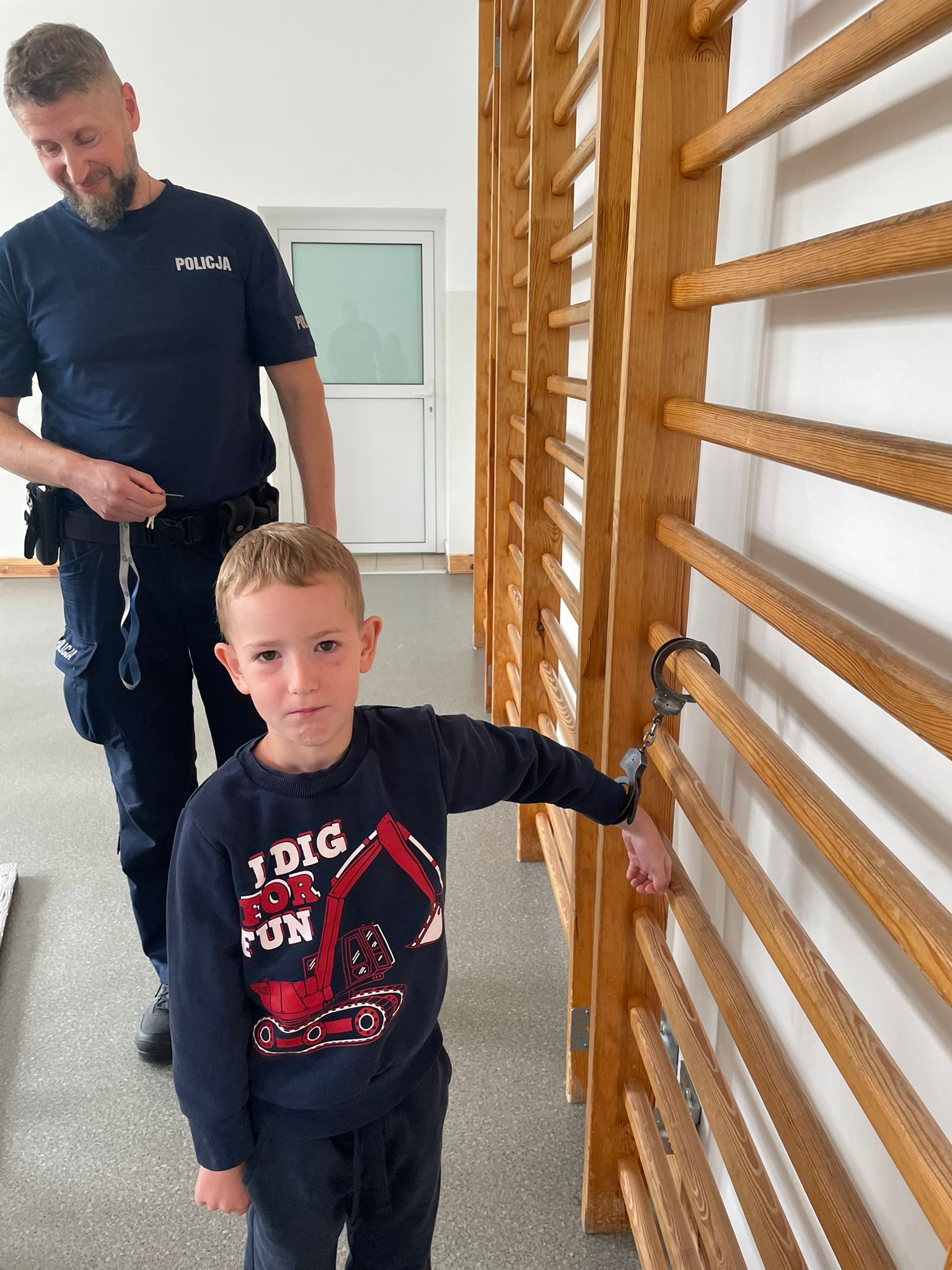 W dniu 17.06.2025r. odwiedził nas pan Jakub Budniak Policjant, który opowiedziła nam o swojej pracy. Uczniowe z klas 1-3 oraz dzieci z grup Zajączków i Jeżyków były bardzo ciekawe tego zawodu i zadawały dużo pytań. Podczas zajęć mogły dotknąć a nawet założyć kajdanki i zobaczyć radiowóz policyjny. Bardzo dziękujemy za odwiedziny.