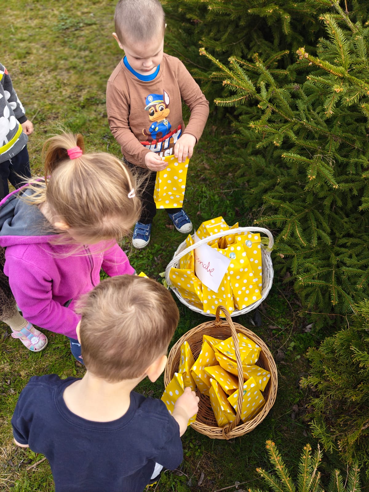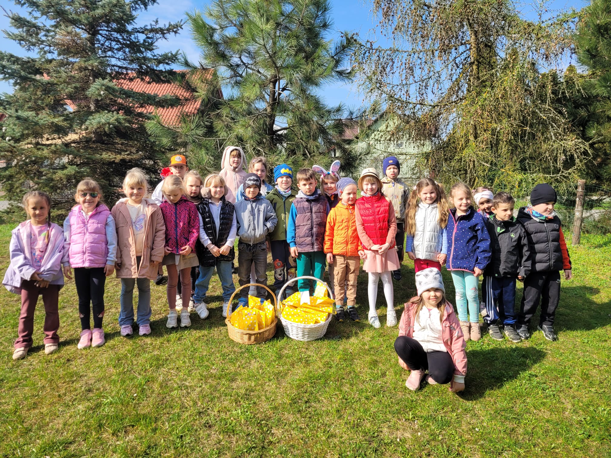 15.04.2025r. coraz bliżej do świąt Wielkiej Nocy. Dzieci od kilku dni wykonywały wiele ozdób świątecznych, prac plastycznych związanych z tym świętem. Zapoznały się tradycjami wielkanocnymi.
