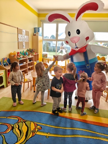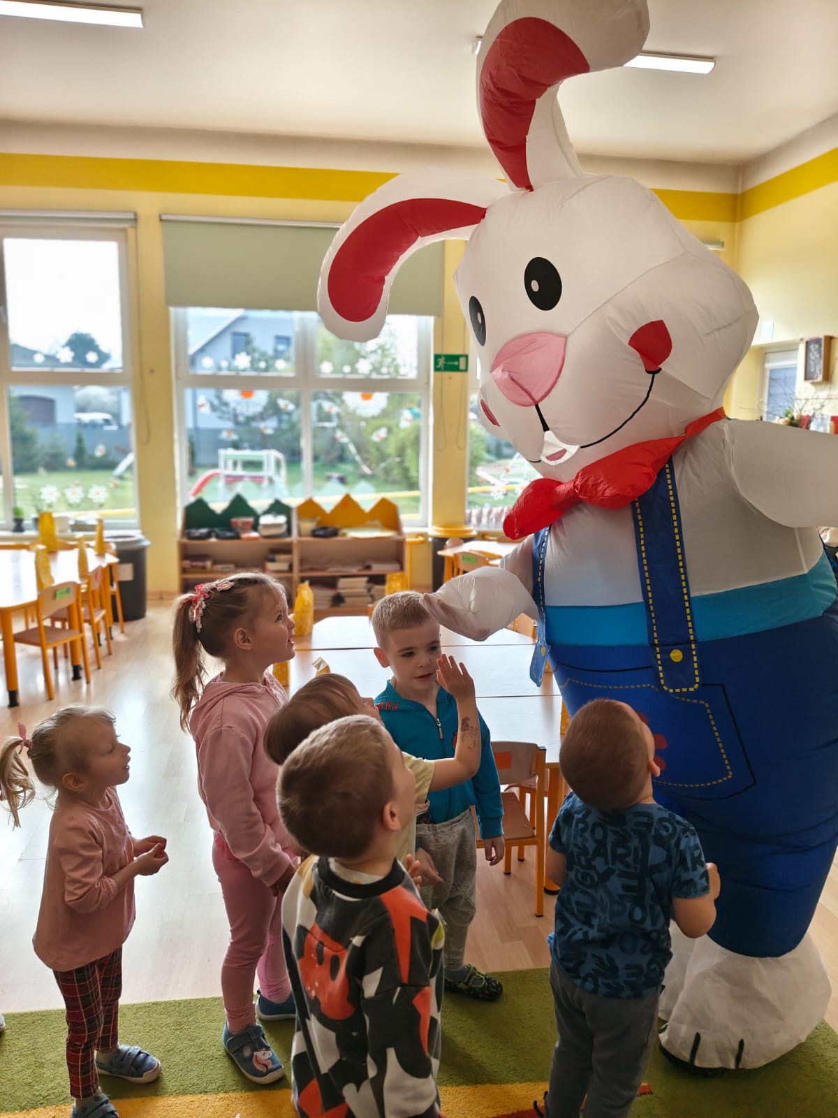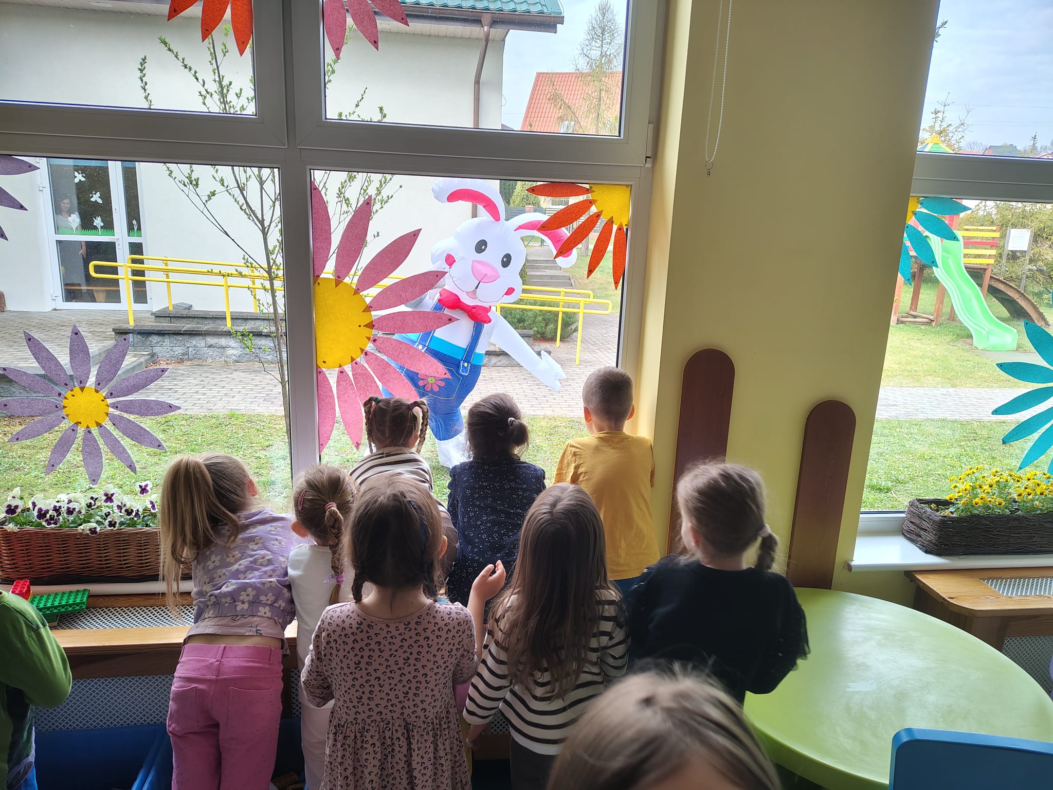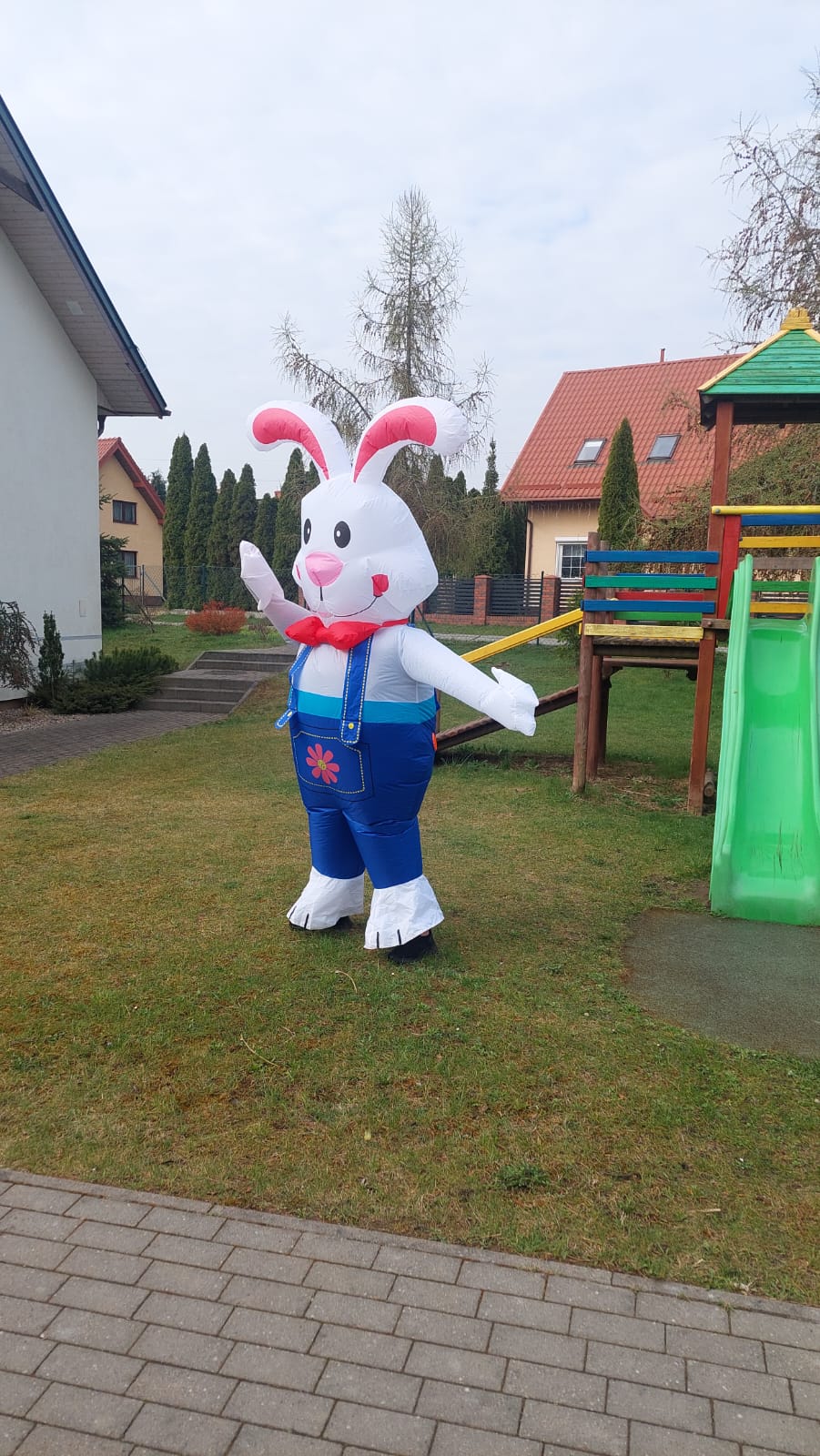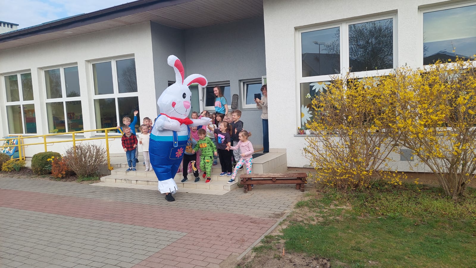 W tym roku odwiedził nasze przedszkole Zajączek Wielkanocny. W spektakularny sposób zostawia dla wszystkich przedszkolaków niespodzianki w ogrodzie przedszkolnym. Był to dzień pełen wrażeń i radości. Dziękujemy Radzie Rodziców za pomoc i organizację upominków dla naszych przedszkolaków, a także p. Małgorzacie Gańskiej- Seelau i Samorządowi Uczniowskiemu ZKiW w Kolbudach za współpracę i udostepnienie stroju zajaczka na tę okoliczność.