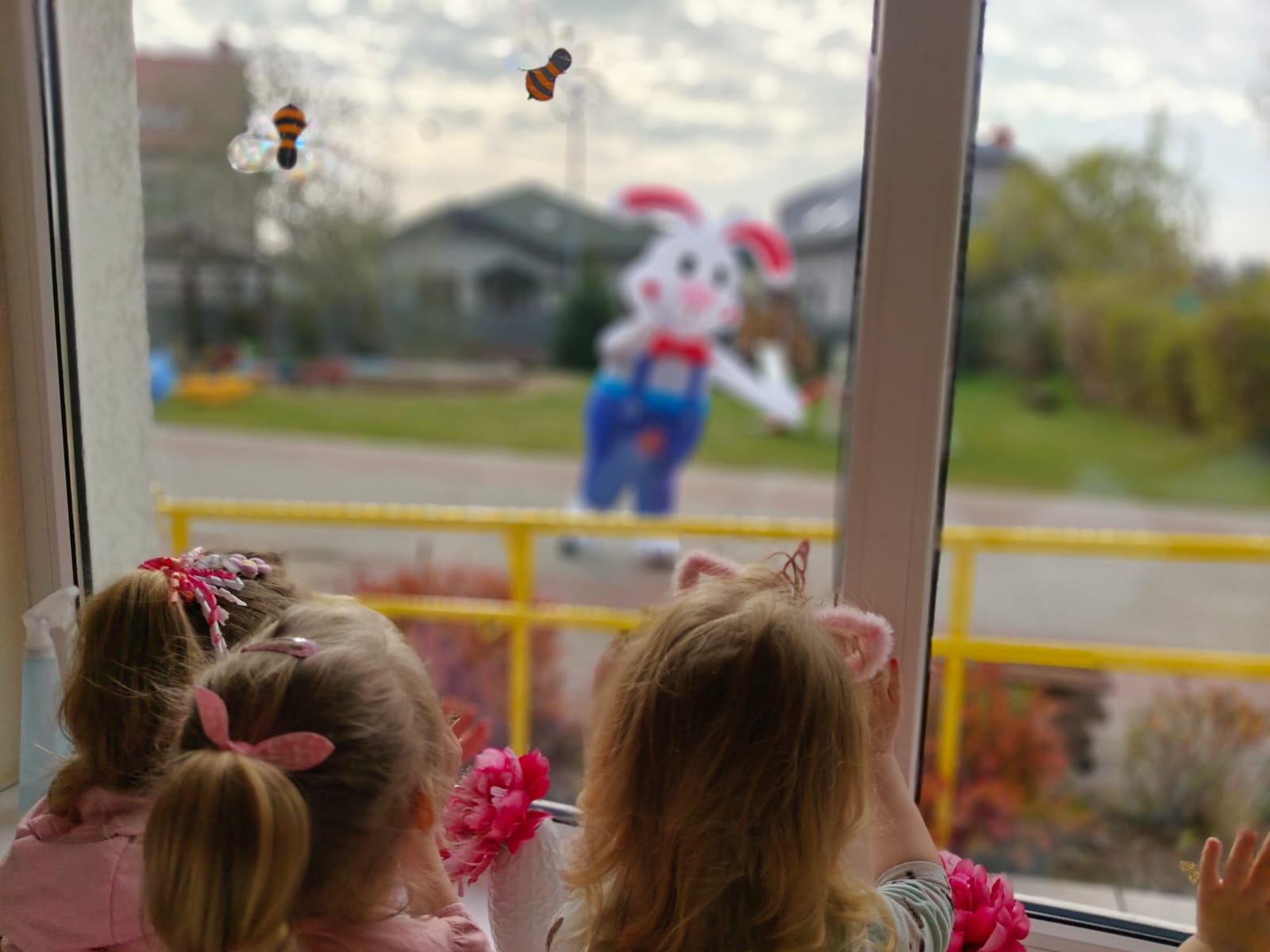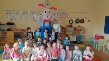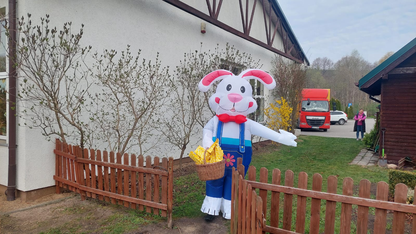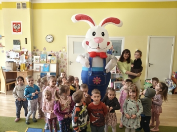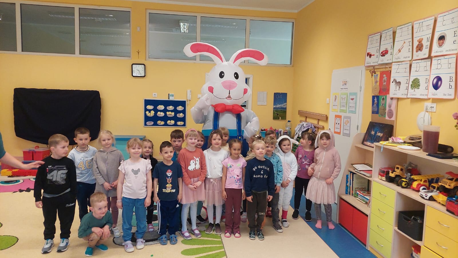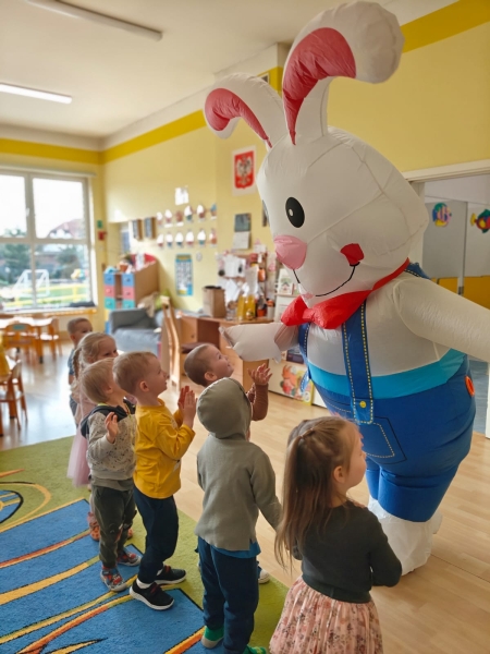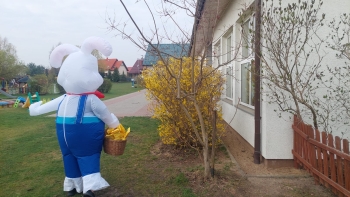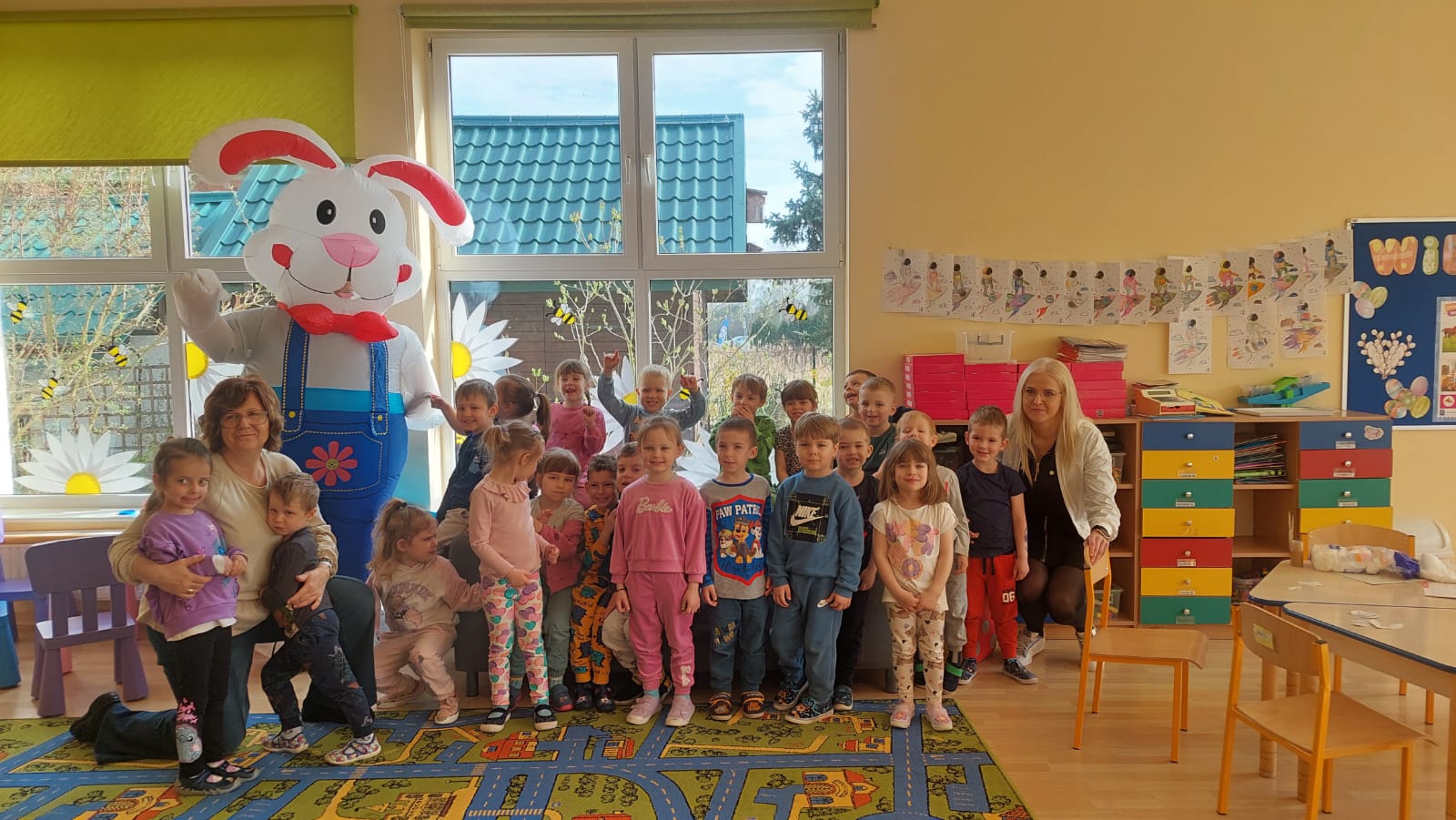 W tym roku odwiedził nasze przedszkole Zajączek Wielkanocny. W spektakularny sposób zostawia dla wszystkich przedszkolaków niespodzianki w ogrodzie przedszkolnym. Był to dzień pełen wrażeń i radości. Dziękujemy Radzie Rodziców za pomoc i organizację upominków dla naszych przedszkolaków, a także p. Małgorzacie Gańskiej- Seelau i Samorządowi Uczniowskiemu ZKiW w Kolbudach za współpracę i udostepnienie stroju zajaczka na tę okoliczność.