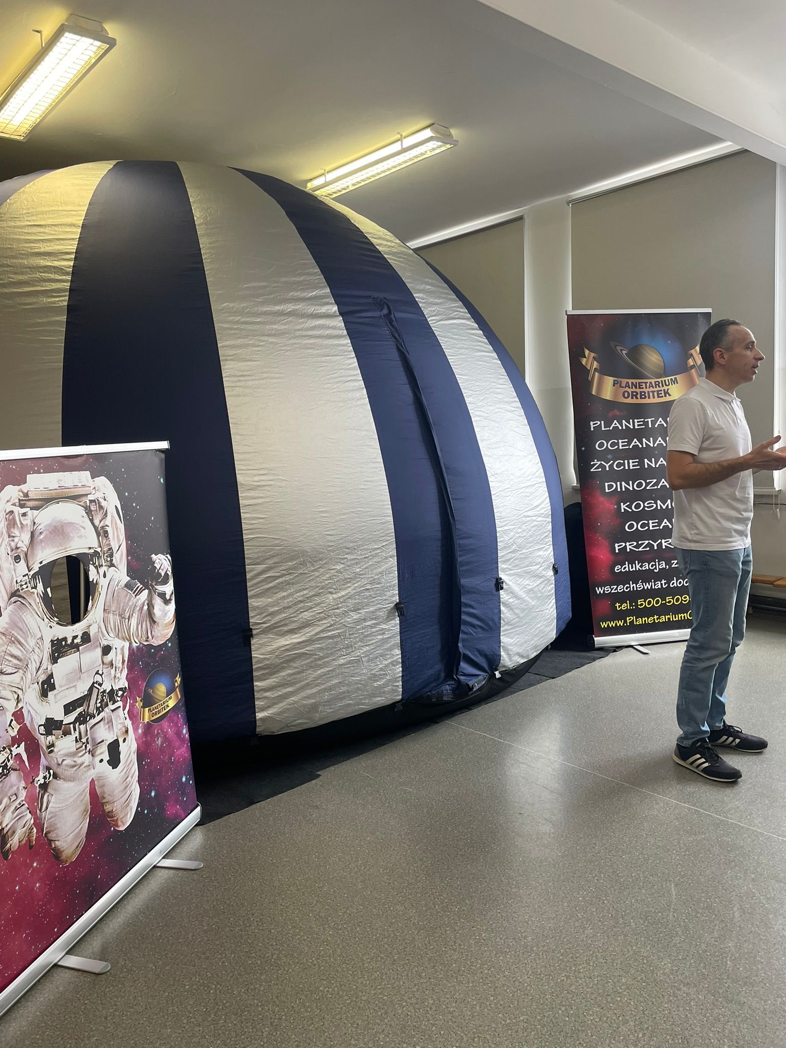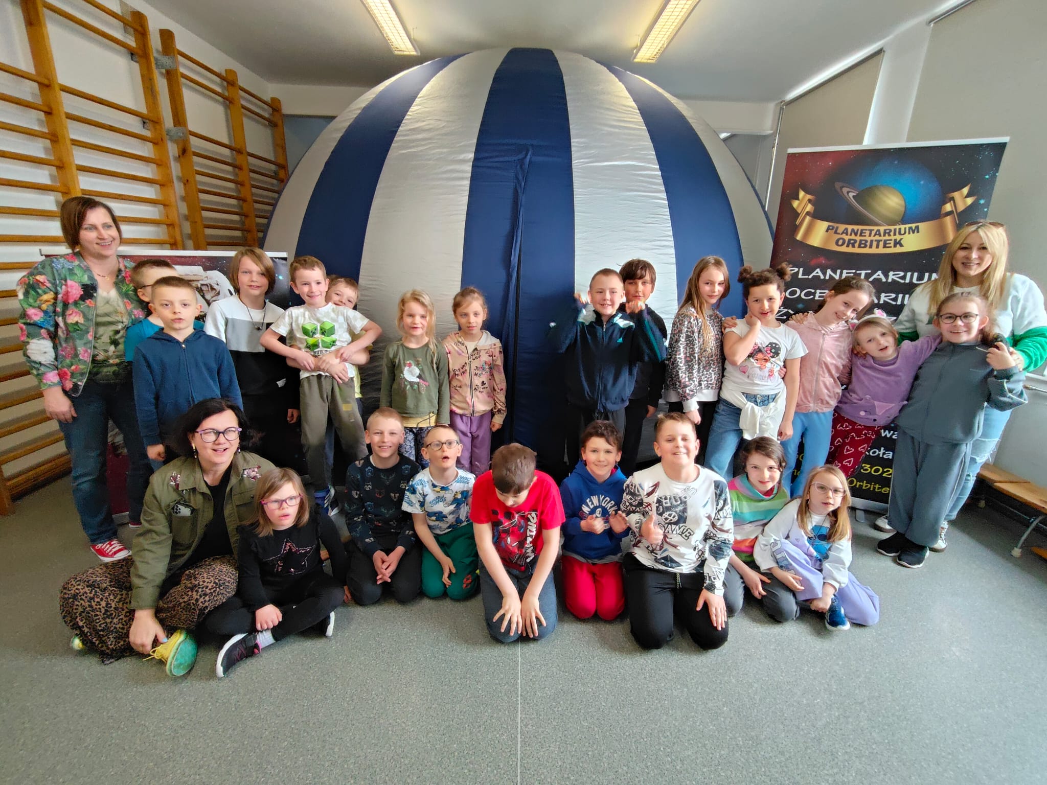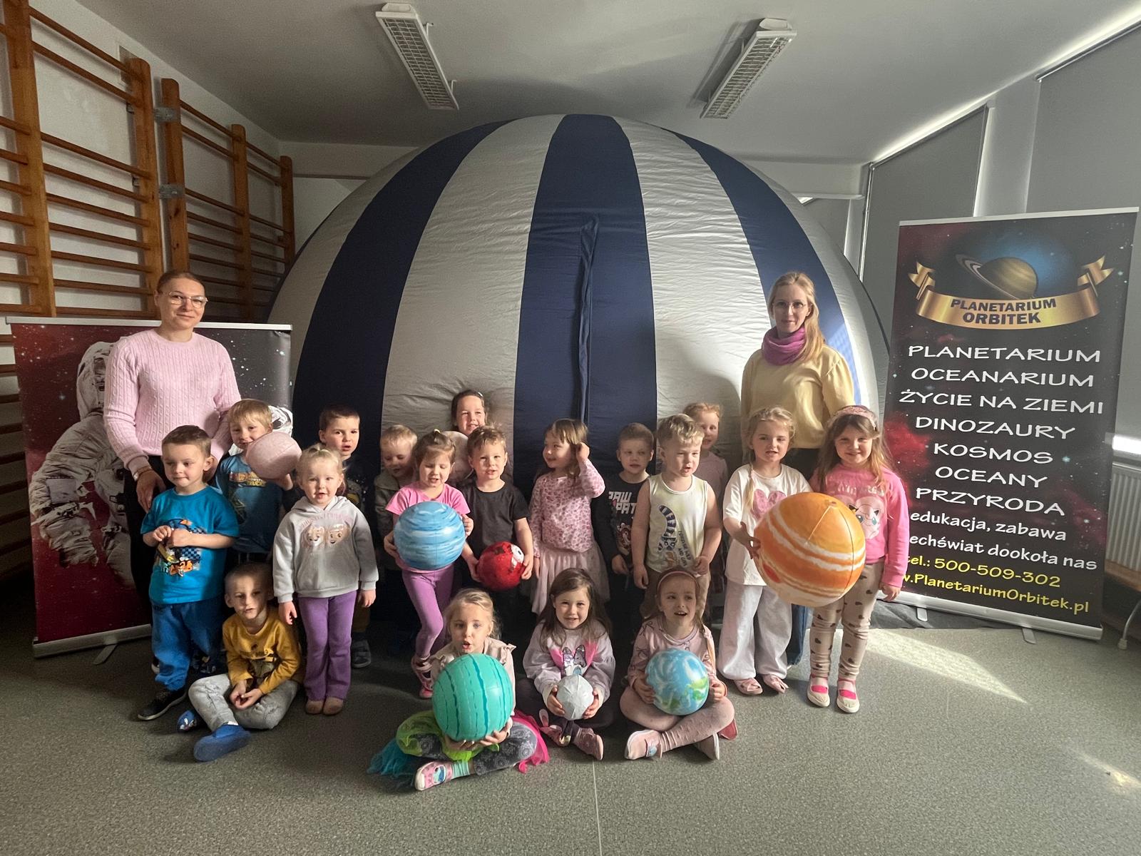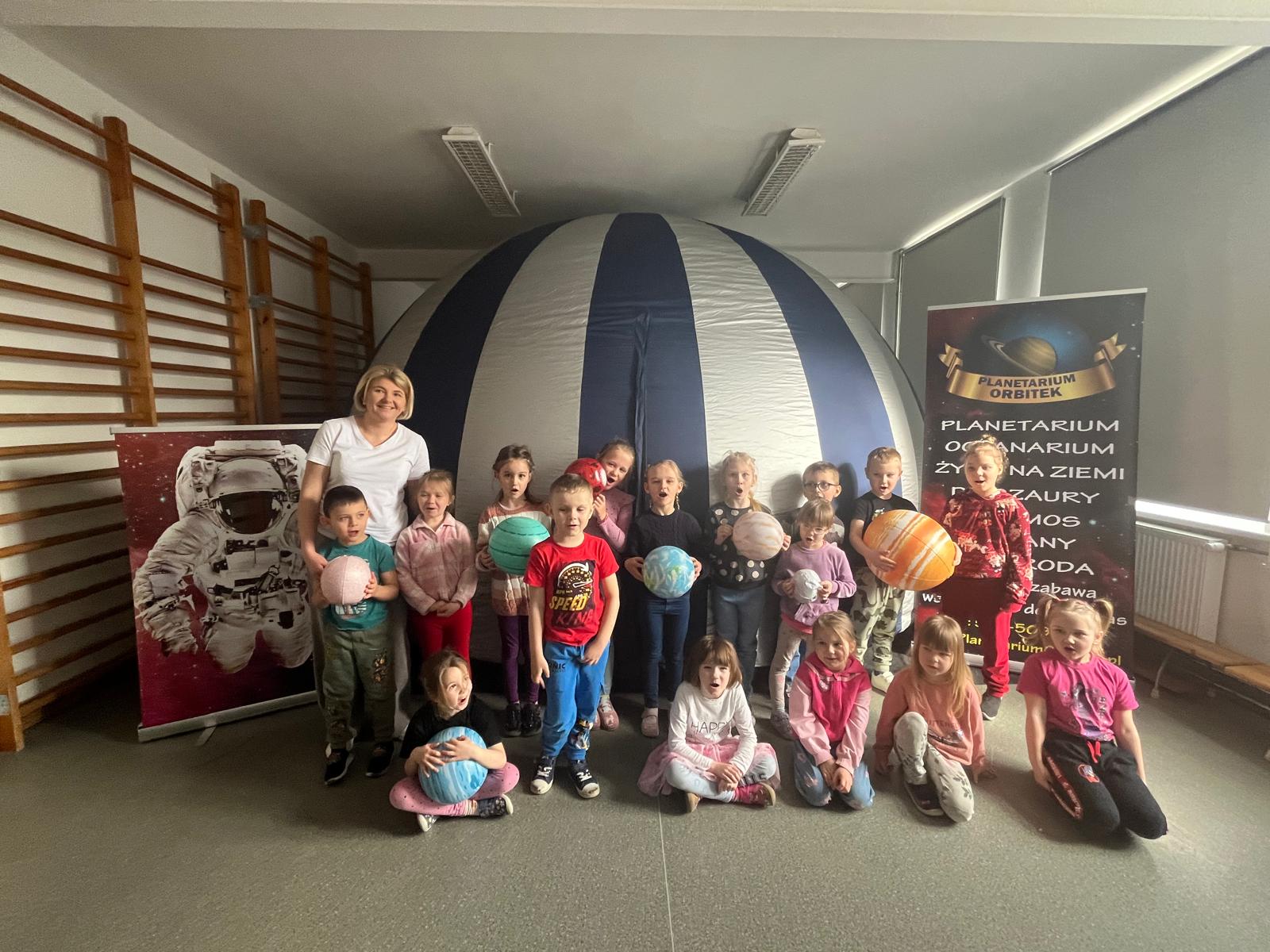 W dniu 26.03.2026r. naszą szkolę odwiedzilo mobilne planetarium. Uczniowie klas 1-3 oraz przedszkolaki z grupy Zajączków i Jeżyków przenieśli się w niezwykly świat gwiazd, planet i galaktyk. Pod kopula pojawilo się realistyczne niebo, a prowadzący opowiadal o kosmicznych zjawiskach i tajemnicach Wszechświata. Dzieci z zaciekawieniem sledzily projekcje, zadawaly pytania i odkrywaly jak fascynująca potrafi być astronomia.Wizyta w planetarium byla nie tylko ciekawą lekcją , lecz także inspirującą podróżą, która rozbudzila wyobraźnię i zachęcila do dalszego poznawania kosmosu.
