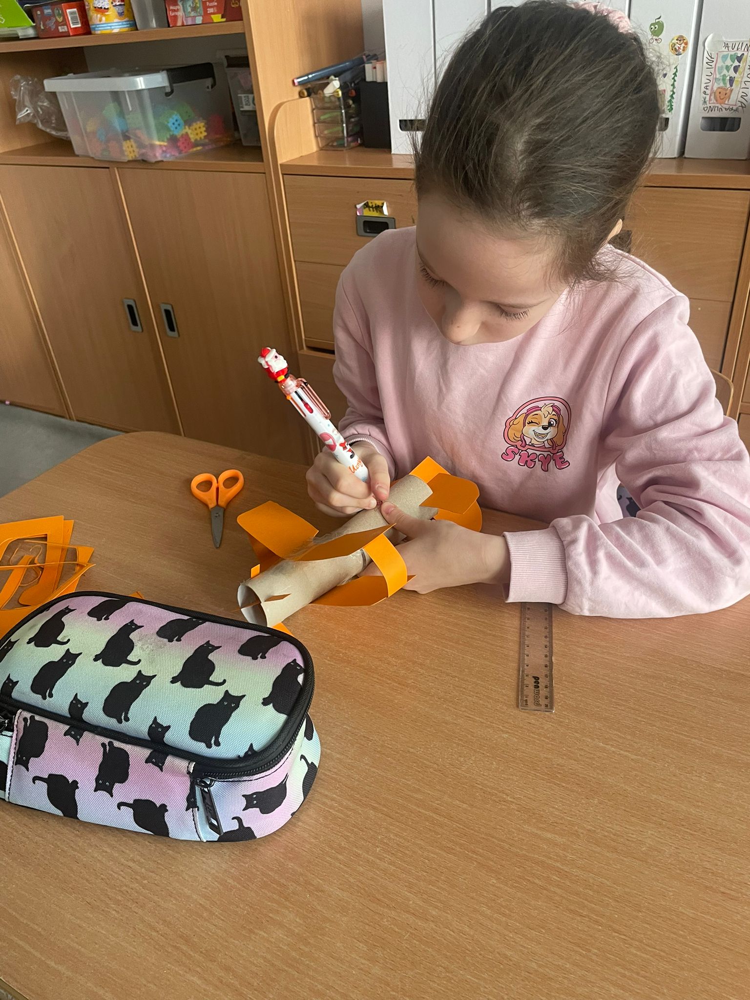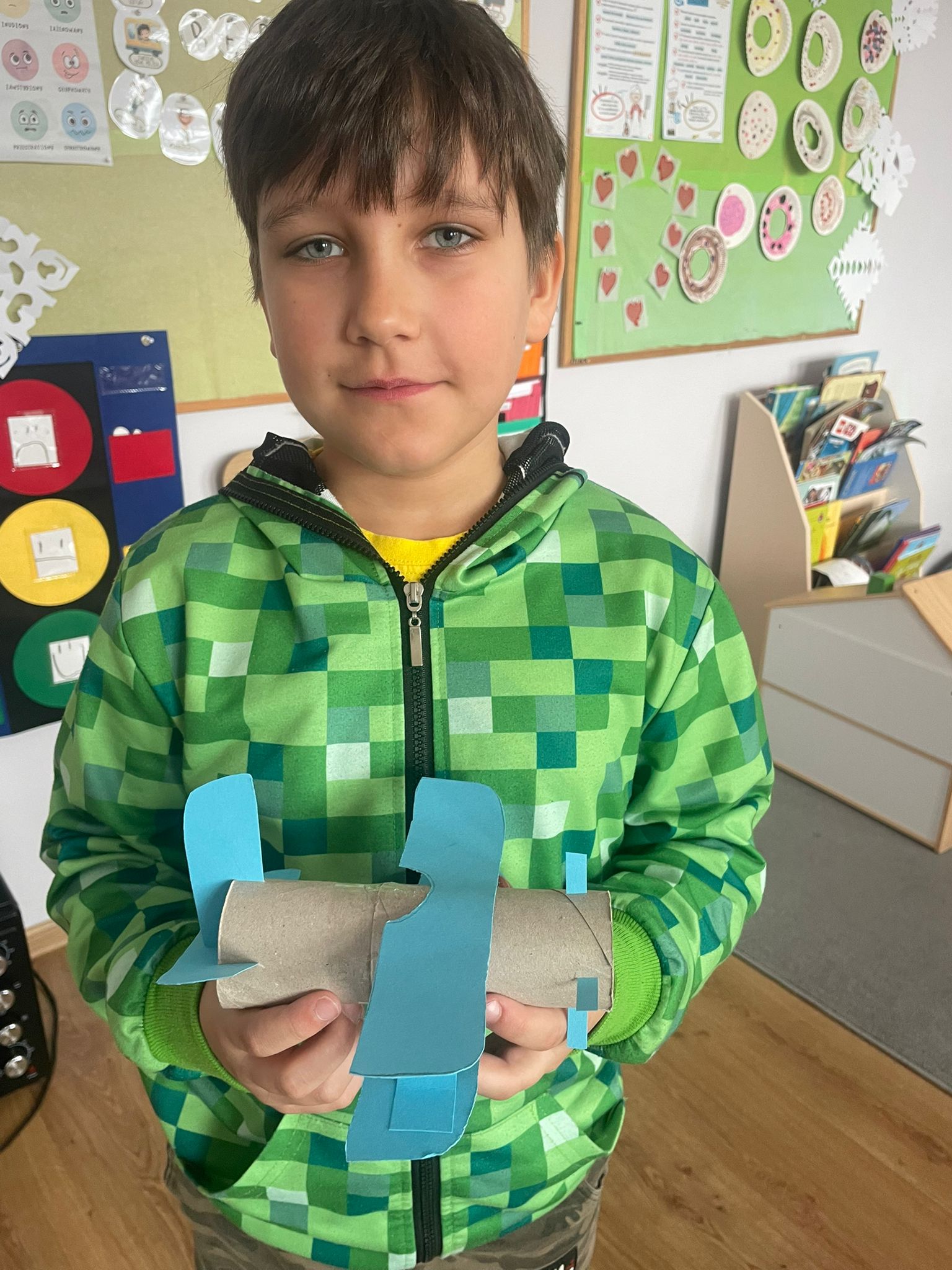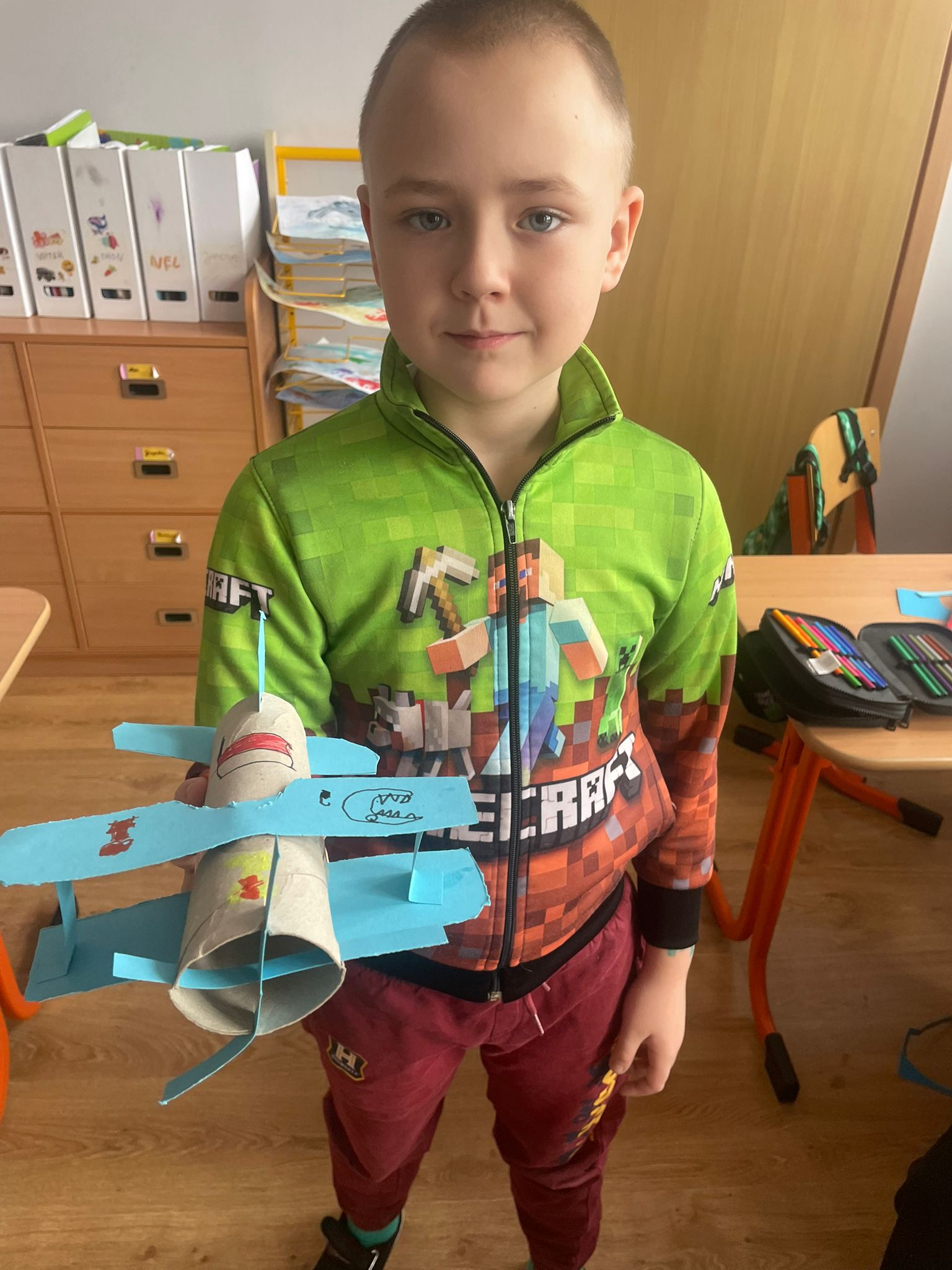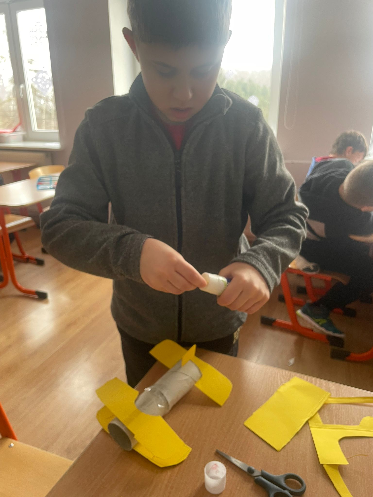 Uczniowie klasy 2 i 3 z zaangażowaniem tworzyli własne samoloty, łącząc zabawę z rozwijaniem wyobraźni i zdolności manualnych. Podczas zajęć dzieci projektowały kształty, składały elementy i testowały swoje konstrukcje, ucząc się przy tym precyzji, cierpliwości oraz współpracy. W twórczej atmosferze powstały różnorodne modele. Zdjęcia ukazują radość, skupienie i satysfakcję z samodzielnie wykonanej pracy, która stała się dla uczniów okazją do kreatywnego działania i wspólnej zabawy.