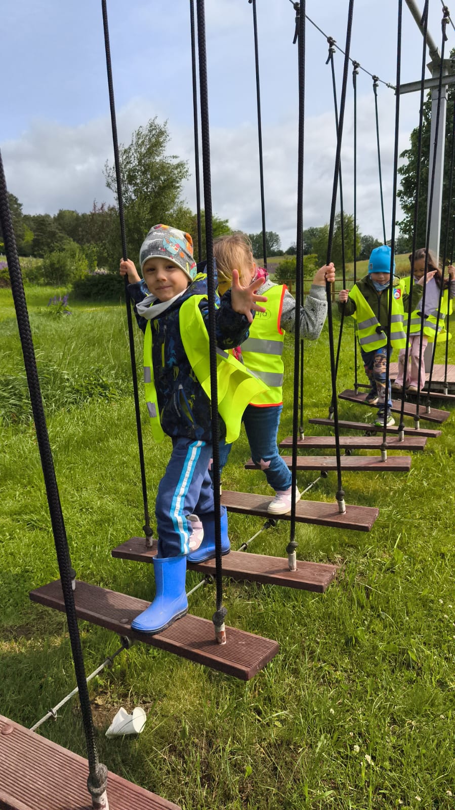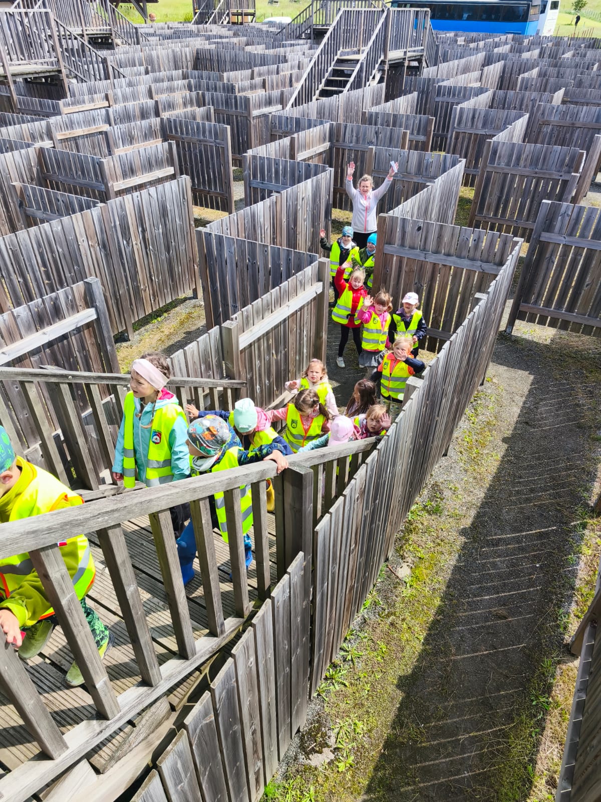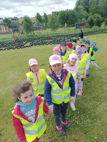 09.06.2025r. grupy Motyli, Orłów oraz Jaskółek wyruszyły na wycieczkę do Świata Labiryntów w Blizinach. Dzieci przemierzały labirynty różnego typu, pełne niespodzianek i zagadek. Labirynty poza świetną zabawą, rozwijają umiejętności nawigacyjne oraz orientację w przestzreni, każdy labirynt to wyzwanie, które zachęca do kreatywnego myślenia. Poza labirytami na miejscu znajdował się niski park linowy. Takie wycieczki wspomagają w budowaniu wspólnych relacji między dziećmi oraz komunikacji.