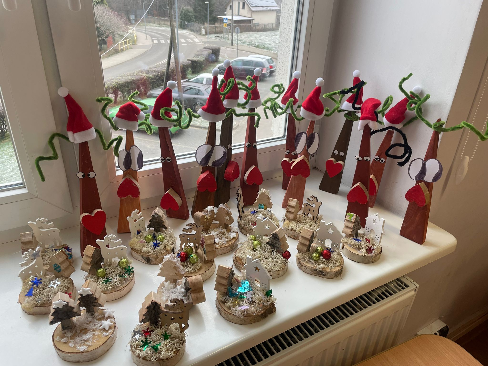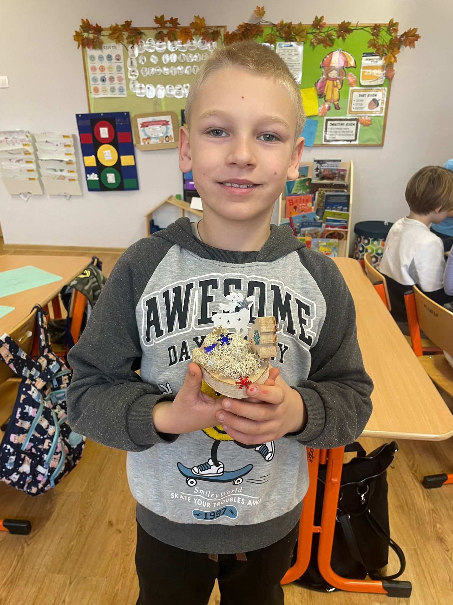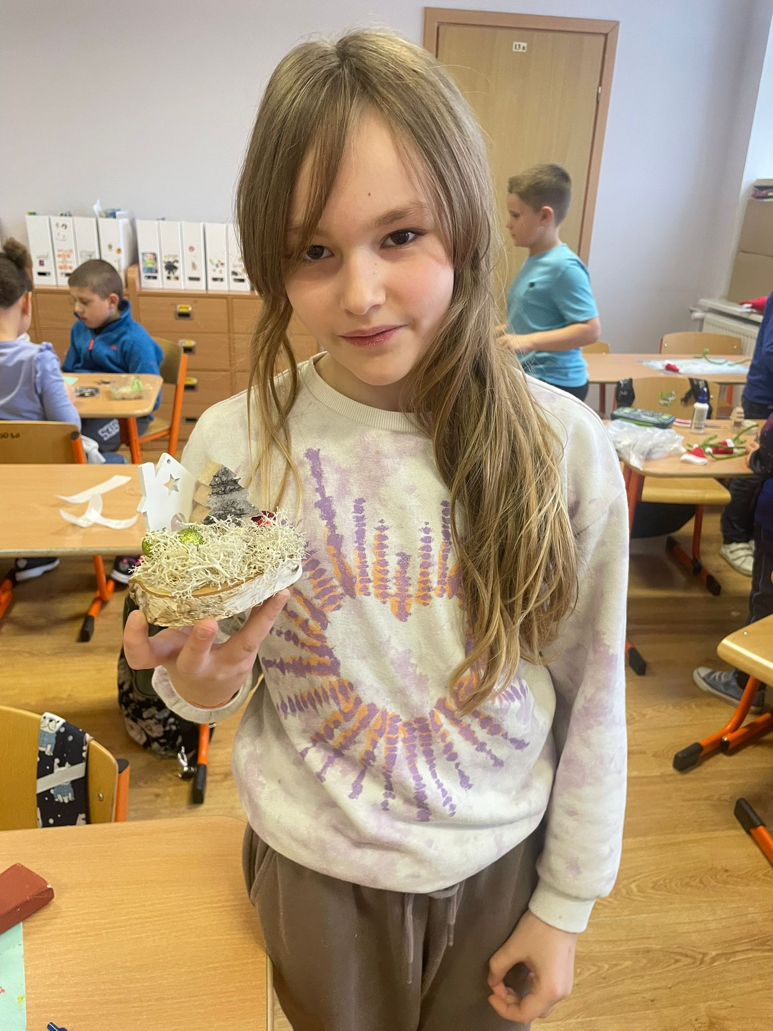 Uczniowie klasy 2 i 3 podczas zajęć z ogromnym zaangażowaniem przygotowywali własnoręcznie ozdoby świąteczne, tworząc wyjątkową atmosferę nadchodzących świąt. Wspólna praca nad ozdobami połączyła uczniów, którzy z entuzjazmem tworzyli dekoracje pełne pomysłowości.