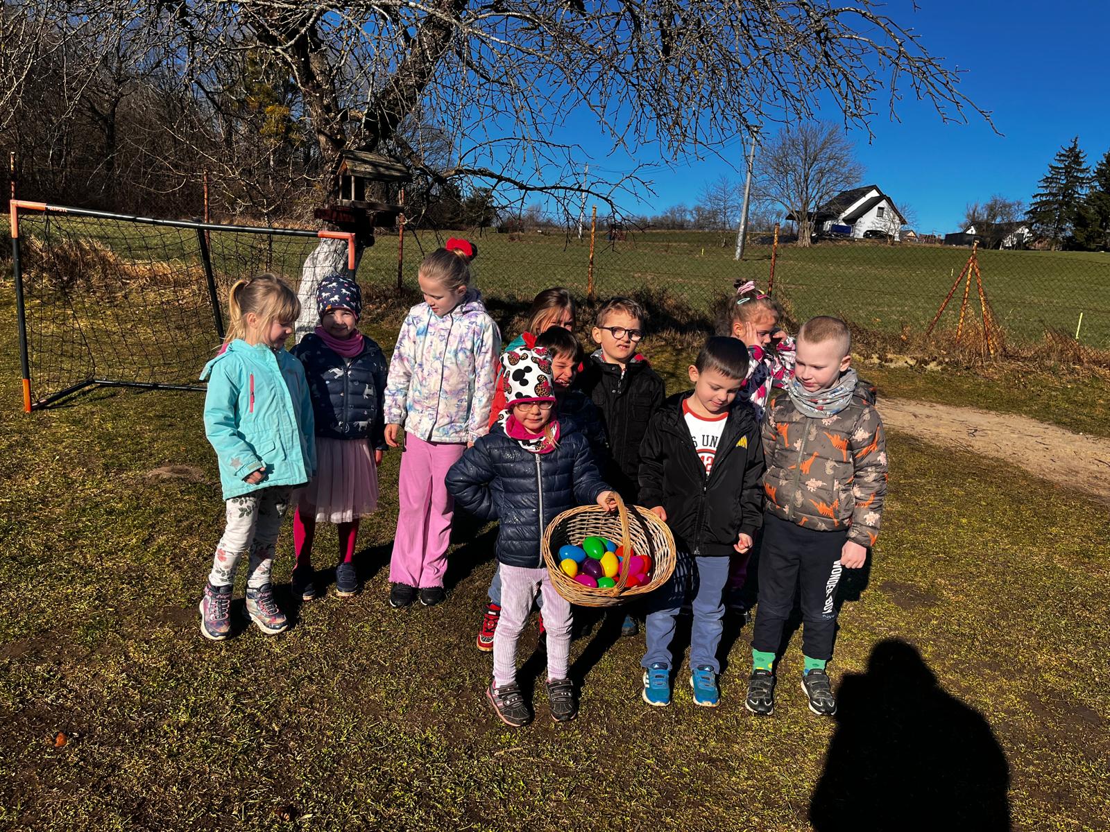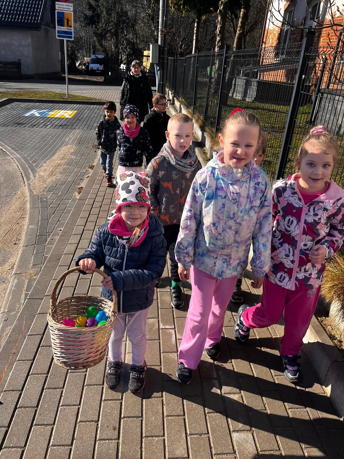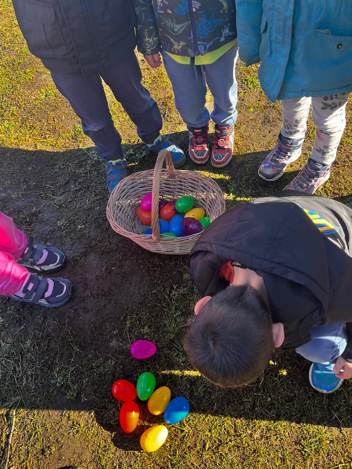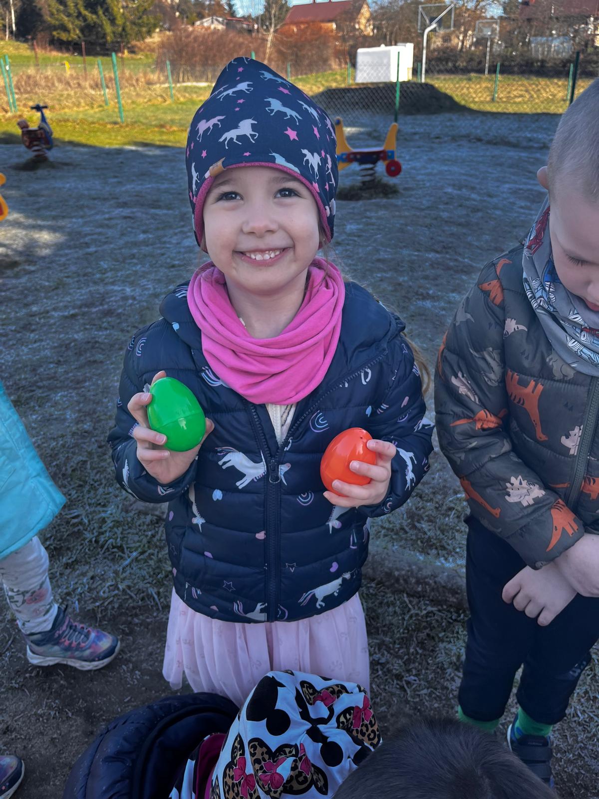 W dniu 01.04.2026r. dzieci z grup Jeżyków i Zajączków otrzymaly list od Zająca z prośbą o pomoc w pozbieraniu kolorowych jajeczek. W podziękowaniu za pomoc Zając Wielkanocny zostawil dla dzieci upragniowe i wyczekiwane upominki.