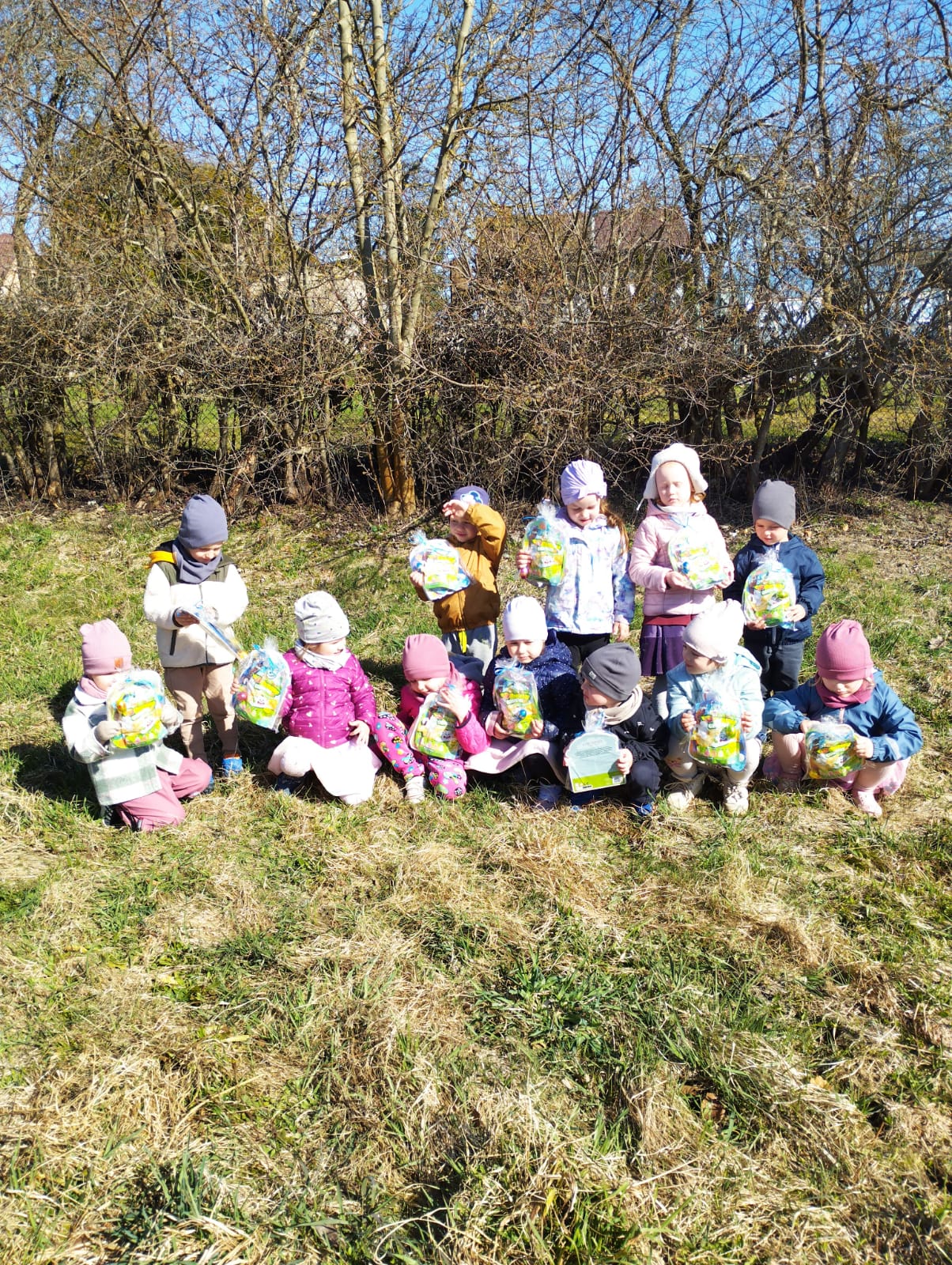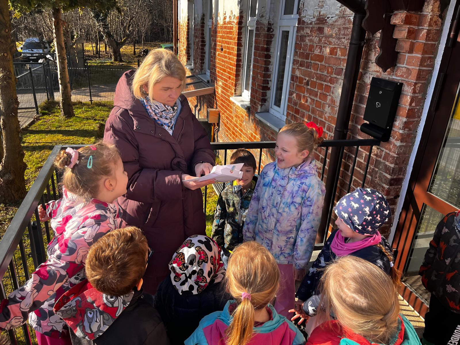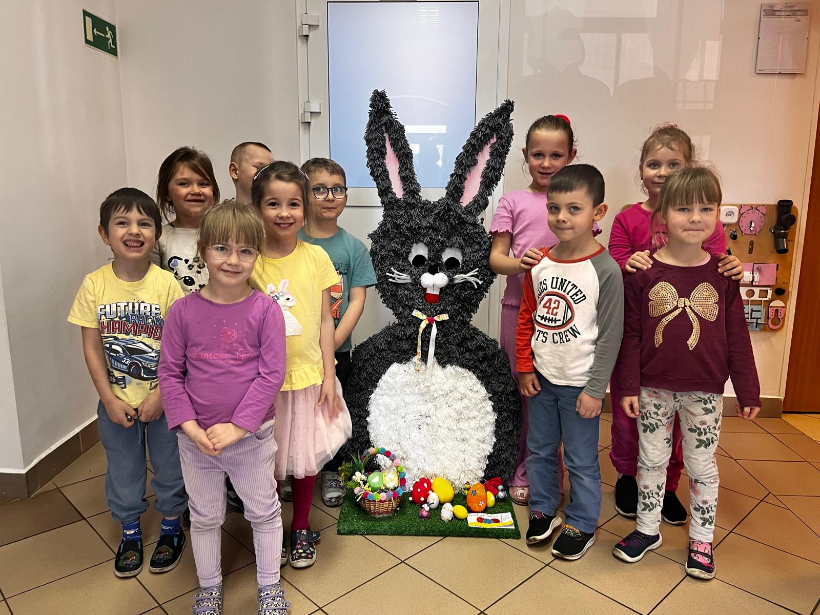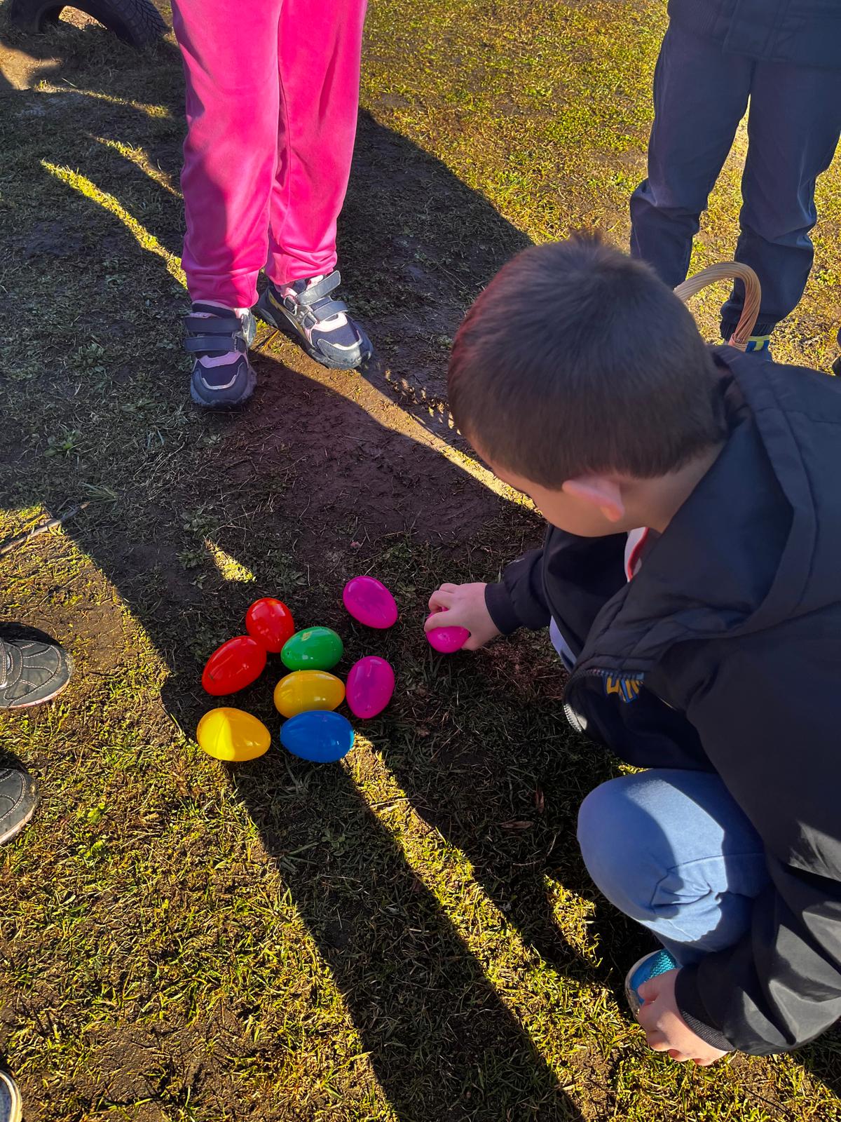 W dniu 01.04.2026r. dzieci z grup Jeżyków i Zajączków otrzymaly list od Zająca z prośbą o pomoc w pozbieraniu kolorowych jajeczek. W podziękowaniu za pomoc Zając Wielkanocny zostawil dla dzieci upragniowe i wyczekiwane upominki.