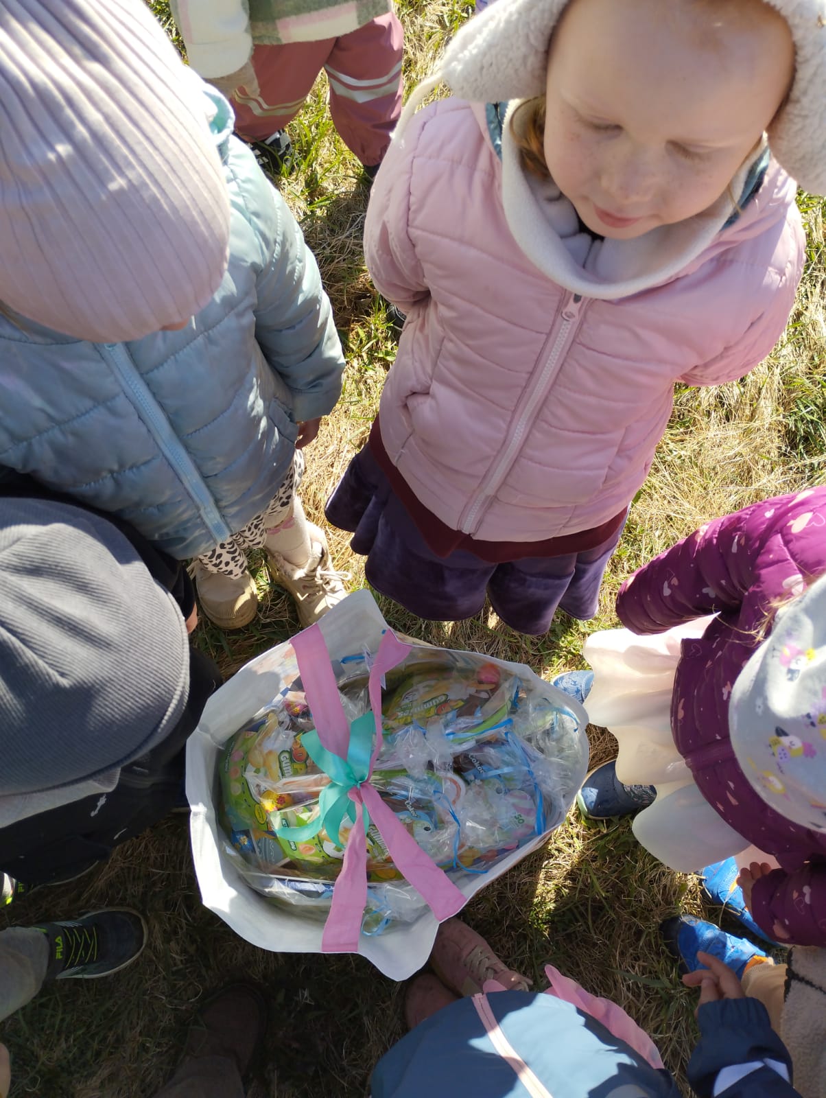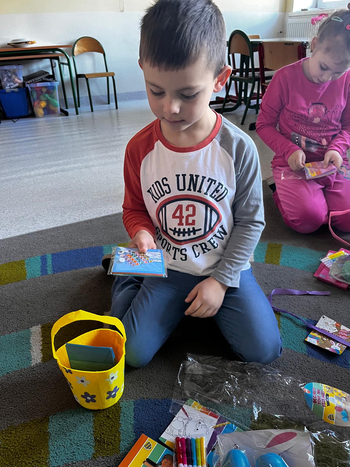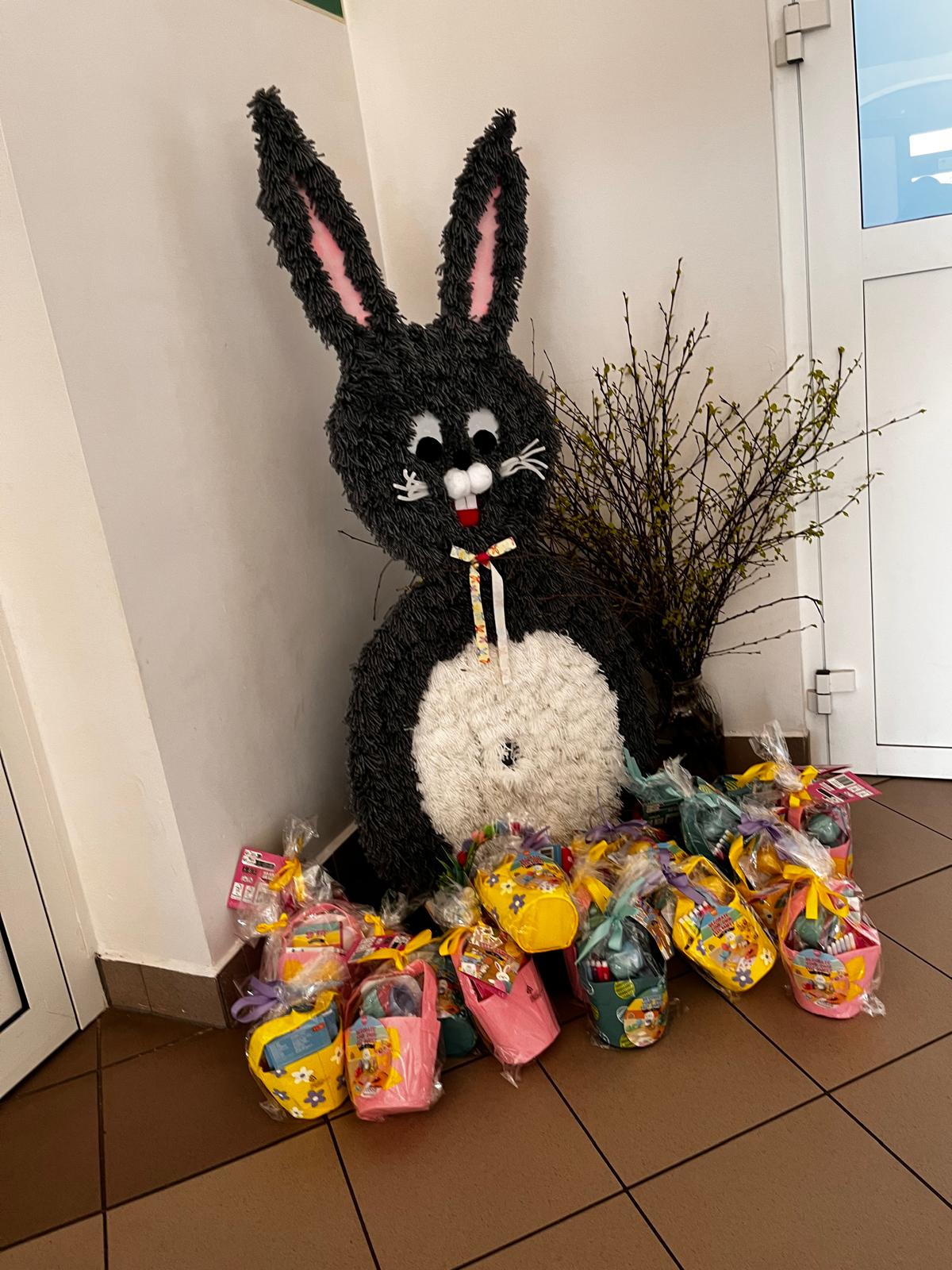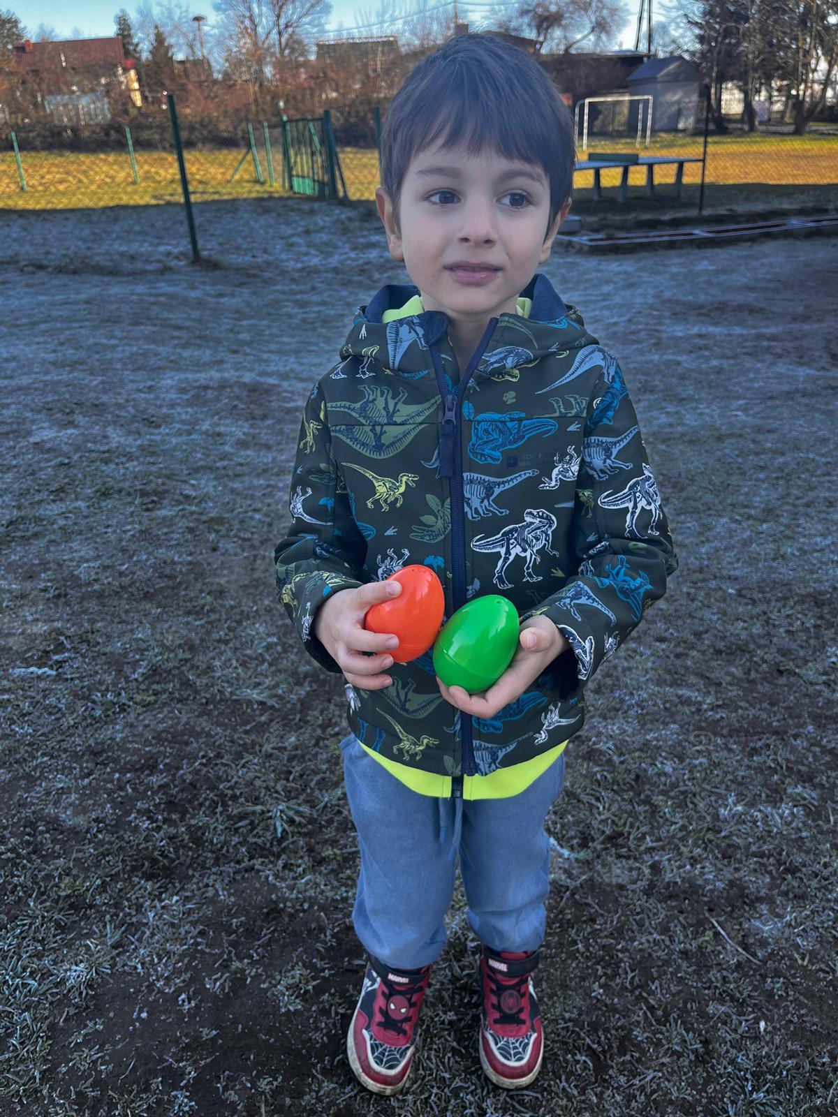 W dniu 01.04.2026r. dzieci z grup Jeżyków i Zajączków otrzymaly list od Zająca z prośbą o pomoc w pozbieraniu kolorowych jajeczek. W podziękowaniu za pomoc Zając Wielkanocny zostawil dla dzieci upragniowe i wyczekiwane upominki.