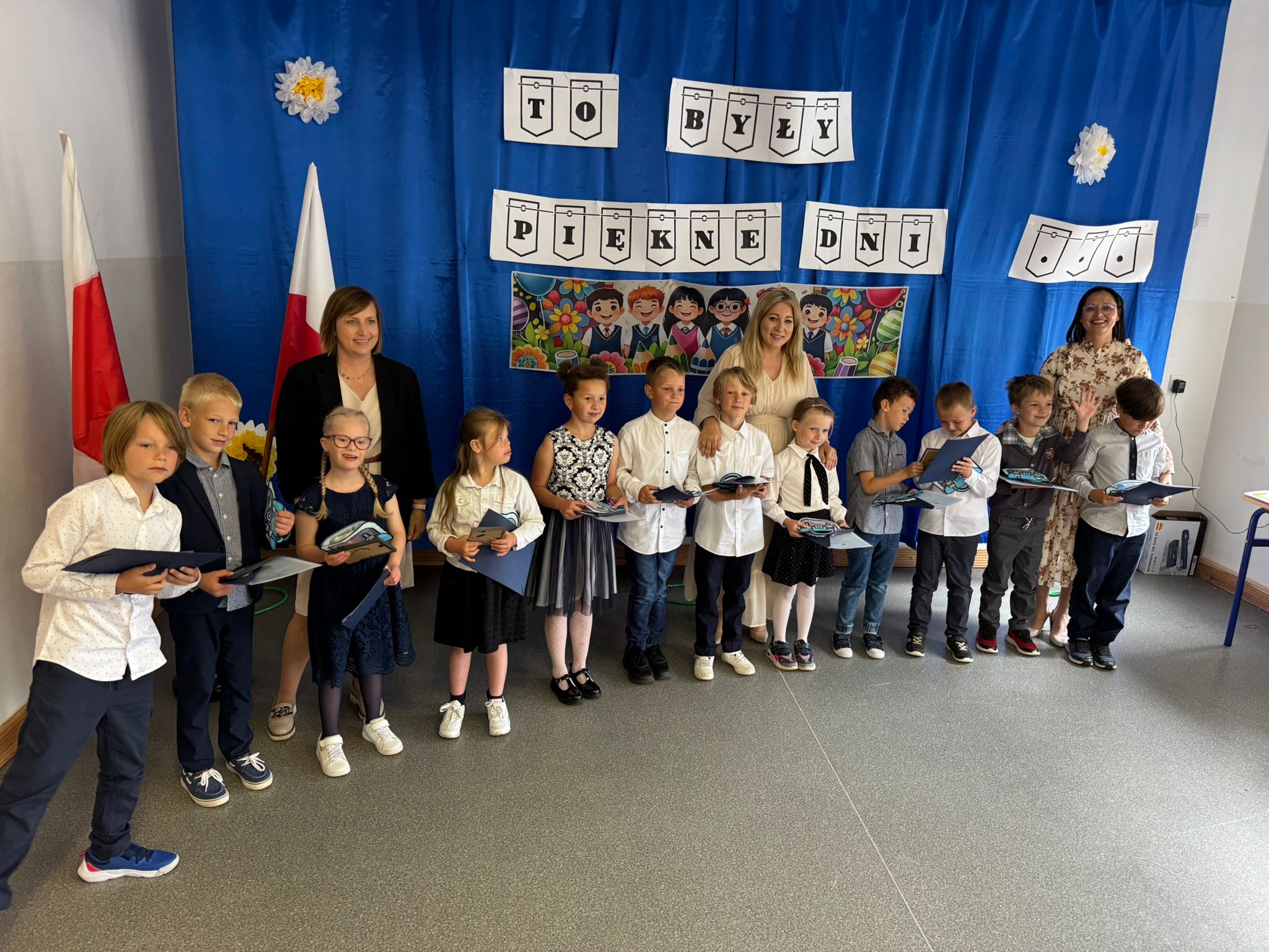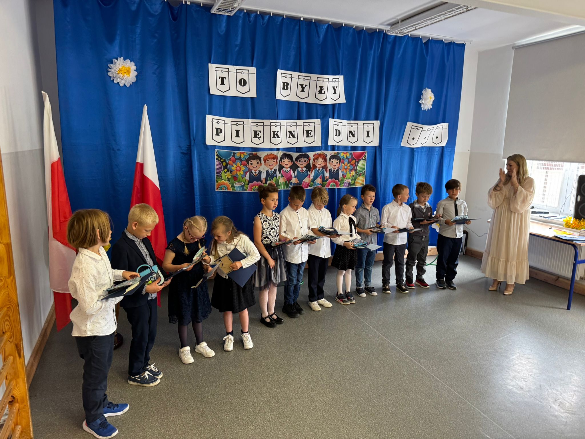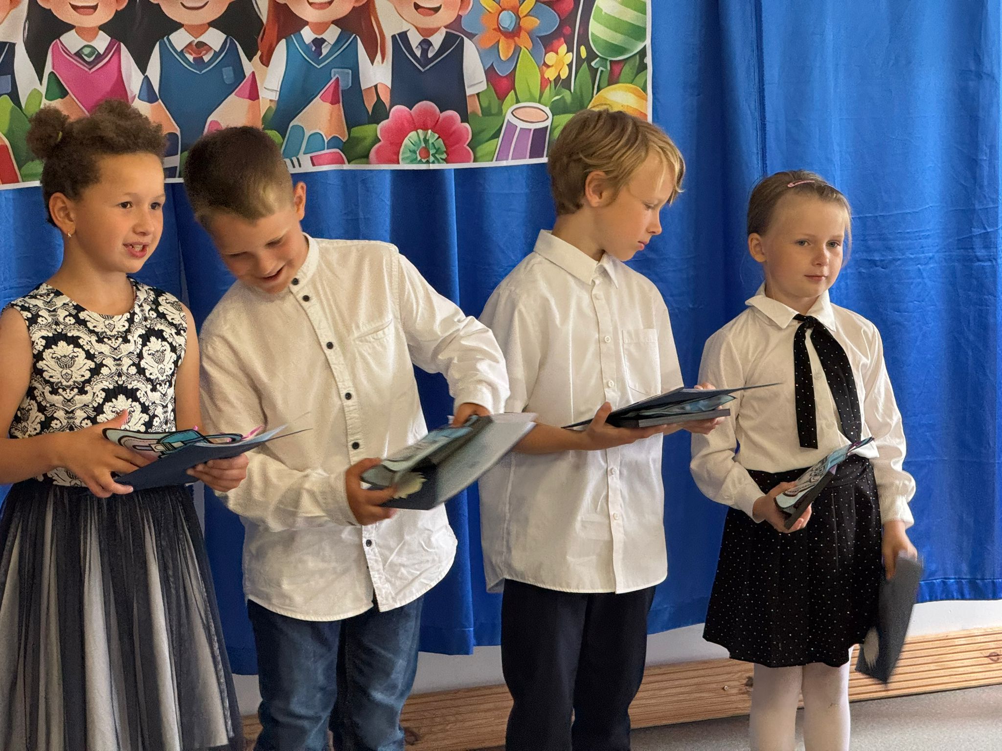 Piątek, 27 czerwca 2025r. to dzień, na który czekali wszyscy uczniowie z utęsknieniem. To bowiem ostatni dzień roku szkolnego 2024/2025. Punktualnie o godzinie 8:30 rozpoczęło się uroczyste zakończenie. Podczas uroczystości wszyscy uczniowie otrzymali świadectwa i upominiki, zaś rodzice oraz zaproszeni goście mogli zobaczyć prezentowane przez dzieci z ogromnym zaangażowaniem wiersze, tańce i piosenki. Ostatni dzień roku to szczególny czas, jest to dzień gratulacji, podziękowań i pożegnań. My żegnaliśmy uczniów klasy 3, którzy kończą edukację w naszej szkole i od 01.09.2025r. rozpoczynają nową przygodę, pęłną wyzwań w klasie 4, ale już w innych placówkach edukacyjnych. Tym razem nie było inaczej żegnaliśmy ich z ogromnym wruszeniem ponieważ, w roku szkolnym 2025/2026 nie zobaczymy ich na naszych korytarzach szkolnych.