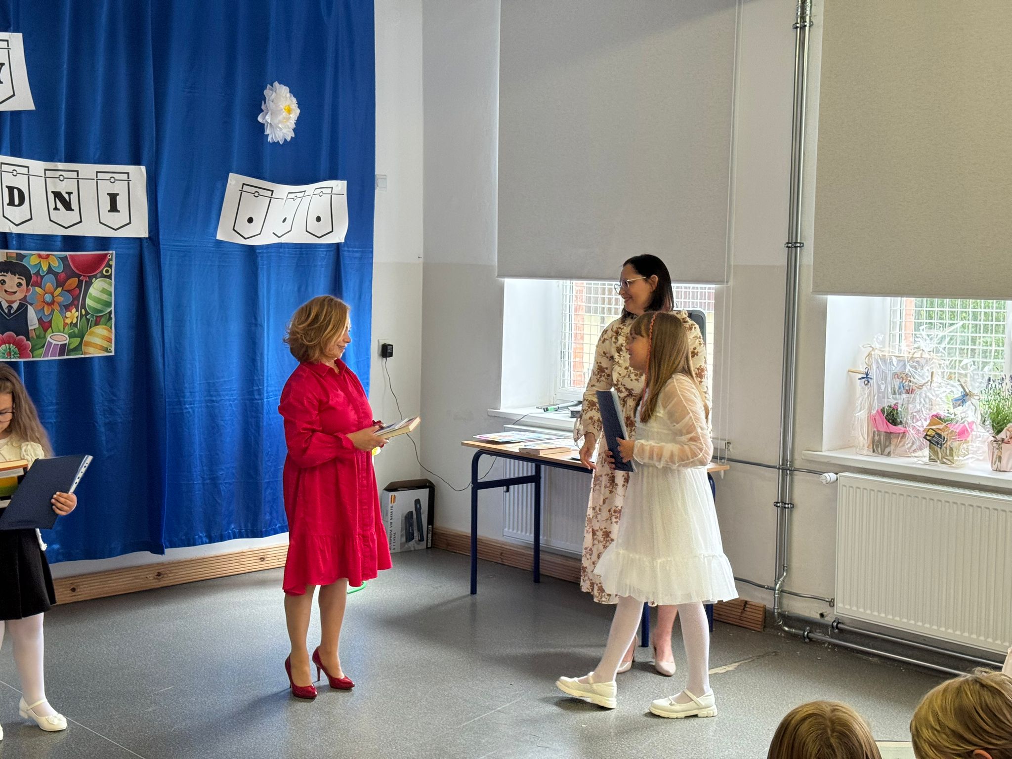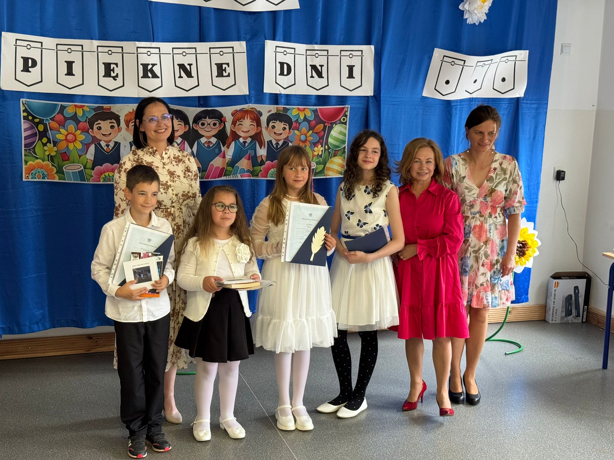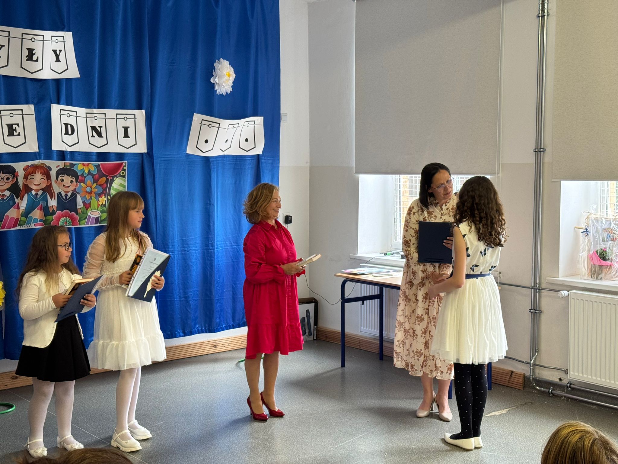Piątek, 27 czerwca 2025r. to dzień, na który czekali wszyscy uczniowie z utęsknieniem. To bowiem ostatni dzień roku szkolnego 2024/2025. Punktualnie o godzinie 8:30 rozpoczęło się uroczyste zakończenie. Podczas uroczystości wszyscy uczniowie otrzymali świadectwa i upominiki, zaś rodzice oraz zaproszeni goście mogli zobaczyć prezentowane przez dzieci z ogromnym zaangażowaniem wiersze, tańce i piosenki. Ostatni dzień roku to szczególny czas, jest to dzień gratulacji, podziękowań i pożegnań. My żegnaliśmy uczniów klasy 3, którzy kończą edukację w naszej szkole i od 01.09.2025r. rozpoczynają nową przygodę, pęłną wyzwań w klasie 4, ale już w innych placówkach edukacyjnych. Tym razem nie było inaczej żegnaliśmy ich z ogromnym wruszeniem ponieważ, w roku szkolnym 2025/2026 nie zobaczymy ich na naszych korytarzach szkolnych.