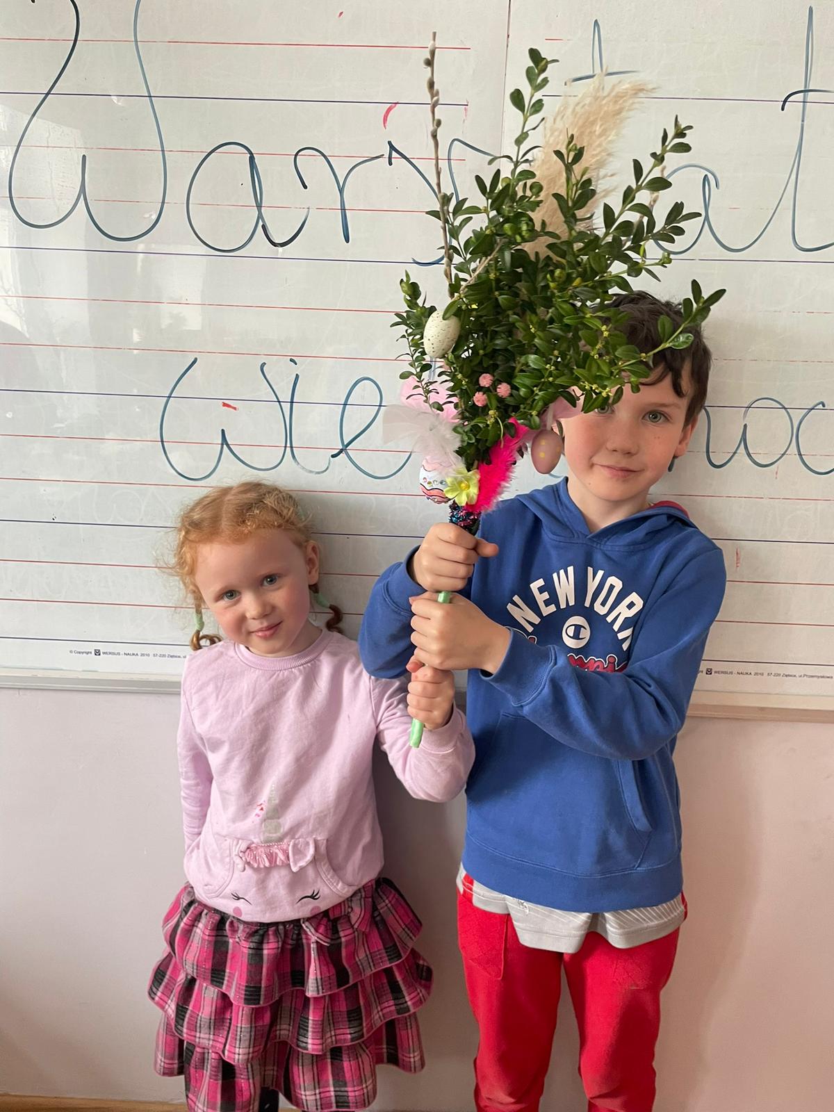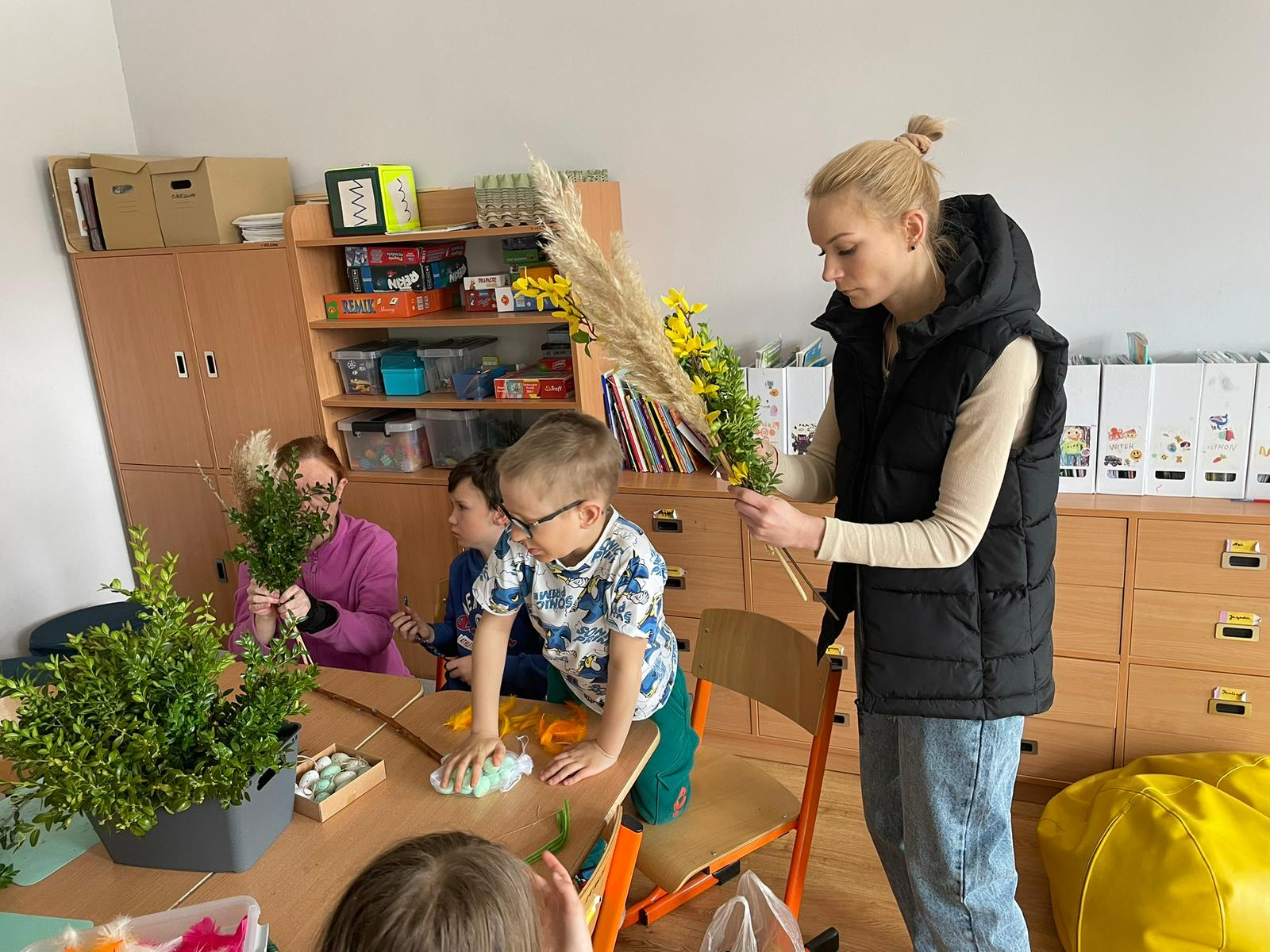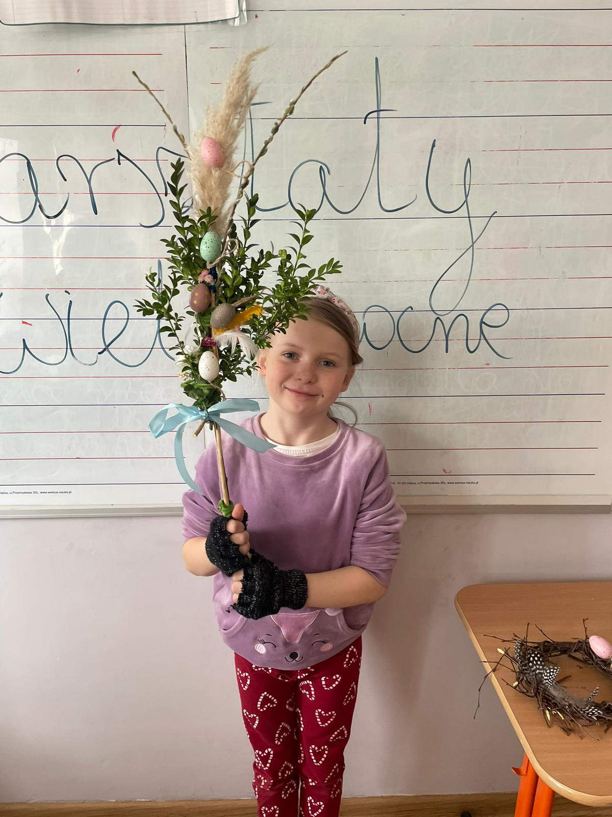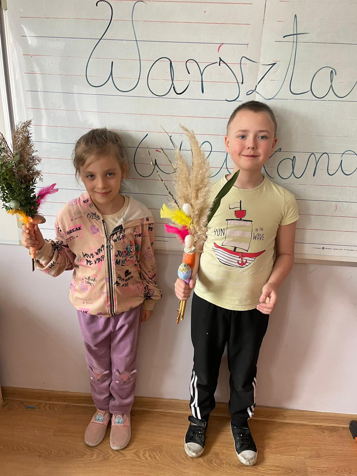 W dniu 26.03.2026r. rodzice i dzieci z klas 1-3 wzięli udzial w twórczych warsztatach wielkanocnych, podczas których wspólnie przygotowywali tradycyjne palmy z bibuly, galązek i kolorowych ozdób. W szkolnej sali panowala ciepla rodzinna atmosfera - pelna śmiechu i wzajemnej pomocy. Każda palma byla inna, wyjątkowa i wykonana z ogromnym zaangażowaniem, a samo spotkanie stalo się piękną okazją do integracji oraz pielęgnowania wielkanocnych tradycji.