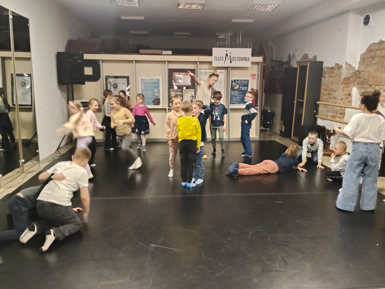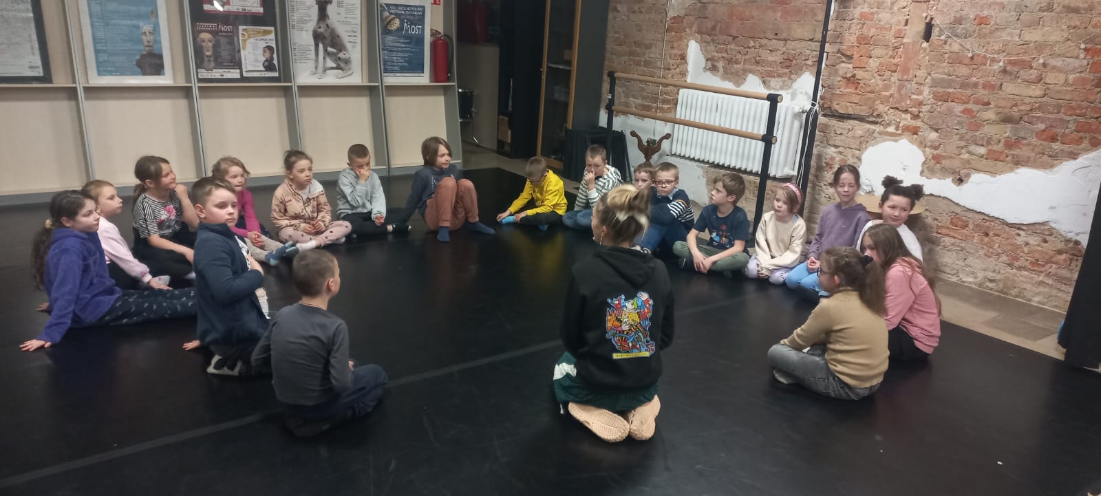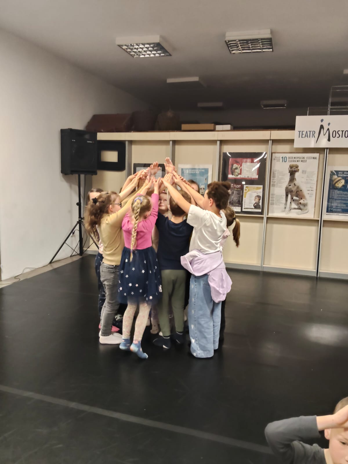 W dniu 13.04.2026r. uczniowie klas 1-3 oraz przedszkolaki z grupy Zajączków wybrali się na wycieczkę do teatru Mostownia, aby obejrzeć wyjątkowy spektakl przygotowany specjalnie dla mlodej widowni. Na zdjęciach widać, jak dzieci z zainteresowaniem zajmują miejsca, z zaciekawieniem obserwują scenę i reagują na wydarzenia przedstawienia. Po spektaklu wszyscy brali udzial w warsztatach teatralnych. Wyjazd byl nie tylko okazją do kontaktu ze sztuką, ale także do wspólnego spędzania czasu, rozwijania wrażliwości i poznawania teatralnych tradycji. Po spektaklu uczniowie chętnie dzielili się wrażeniami, a cala wycieczka dostarczyla im wielu pozytywnych emocji.