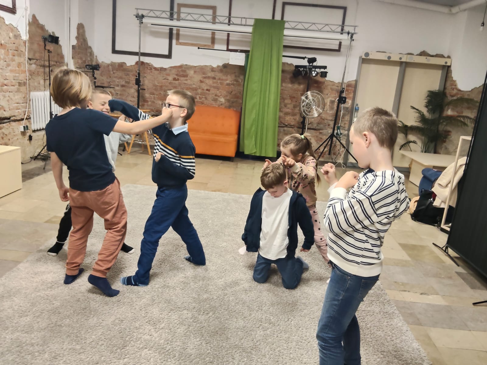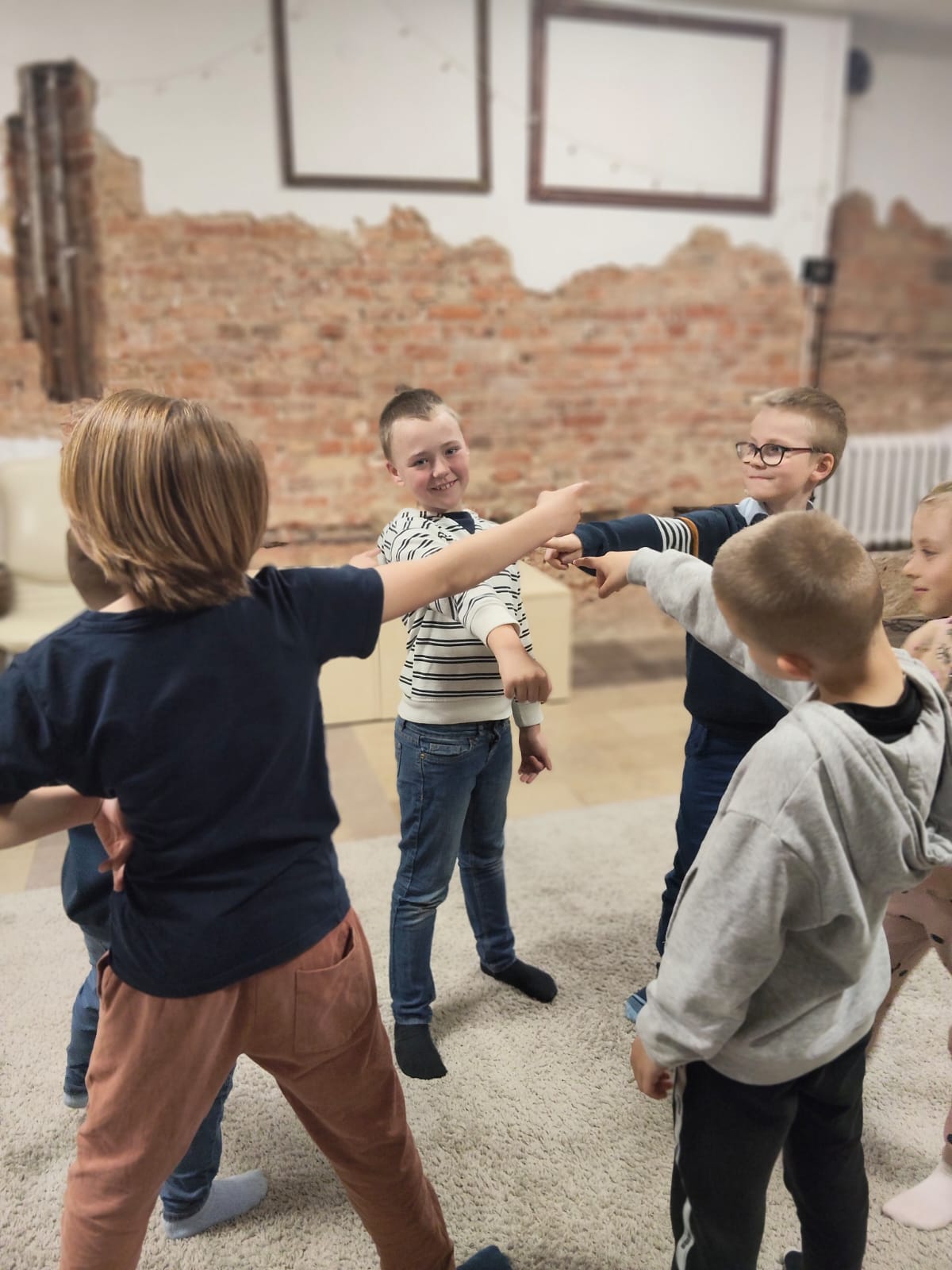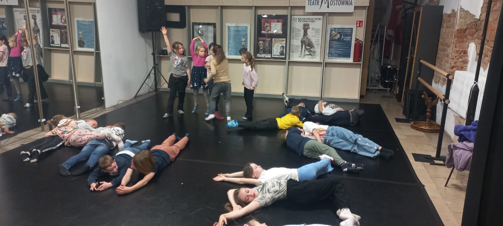 W dniu 13.04.2026r. uczniowie klas 1-3 oraz przedszkolaki z grupy Zajączków wybrali się na wycieczkę do teatru Mostownia, aby obejrzeć wyjątkowy spektakl przygotowany specjalnie dla mlodej widowni. Na zdjęciach widać, jak dzieci z zainteresowaniem zajmują miejsca, z zaciekawieniem obserwują scenę i reagują na wydarzenia przedstawienia. Po spektaklu wszyscy brali udzial w warsztatach teatralnych. Wyjazd byl nie tylko okazją do kontaktu ze sztuką, ale także do wspólnego spędzania czasu, rozwijania wrażliwości i poznawania teatralnych tradycji. Po spektaklu uczniowie chętnie dzielili się wrażeniami, a cala wycieczka dostarczyla im wielu pozytywnych emocji.