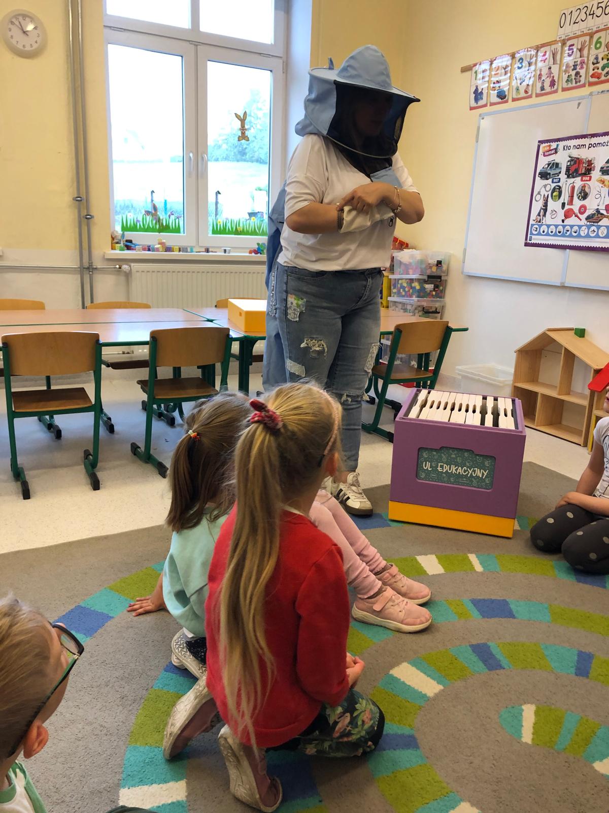 W maju w grupie Zajączków odbywały się zajęcia w ramach Projektu Edukacyjnego MEN "Akademia Pszczoły Bohatera" Podczas lekcji dzieci zdobywały wiedzę na temat pszczół. Mogły oglądać plansze edukacyjne, zobaczyć i przymierzyć strój pszczelarza oraz robić prace plastyczne "Plaster miodu". Zajęcia bardzo podobały się dzieciom i z ogromną uwagą uwagą i skupieniem uczestniczyły w lekcji.