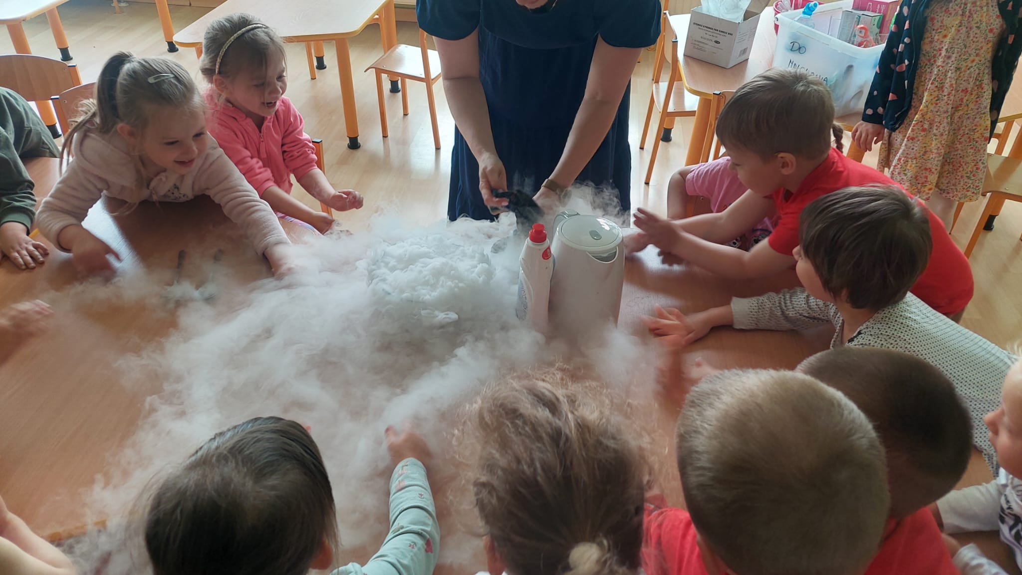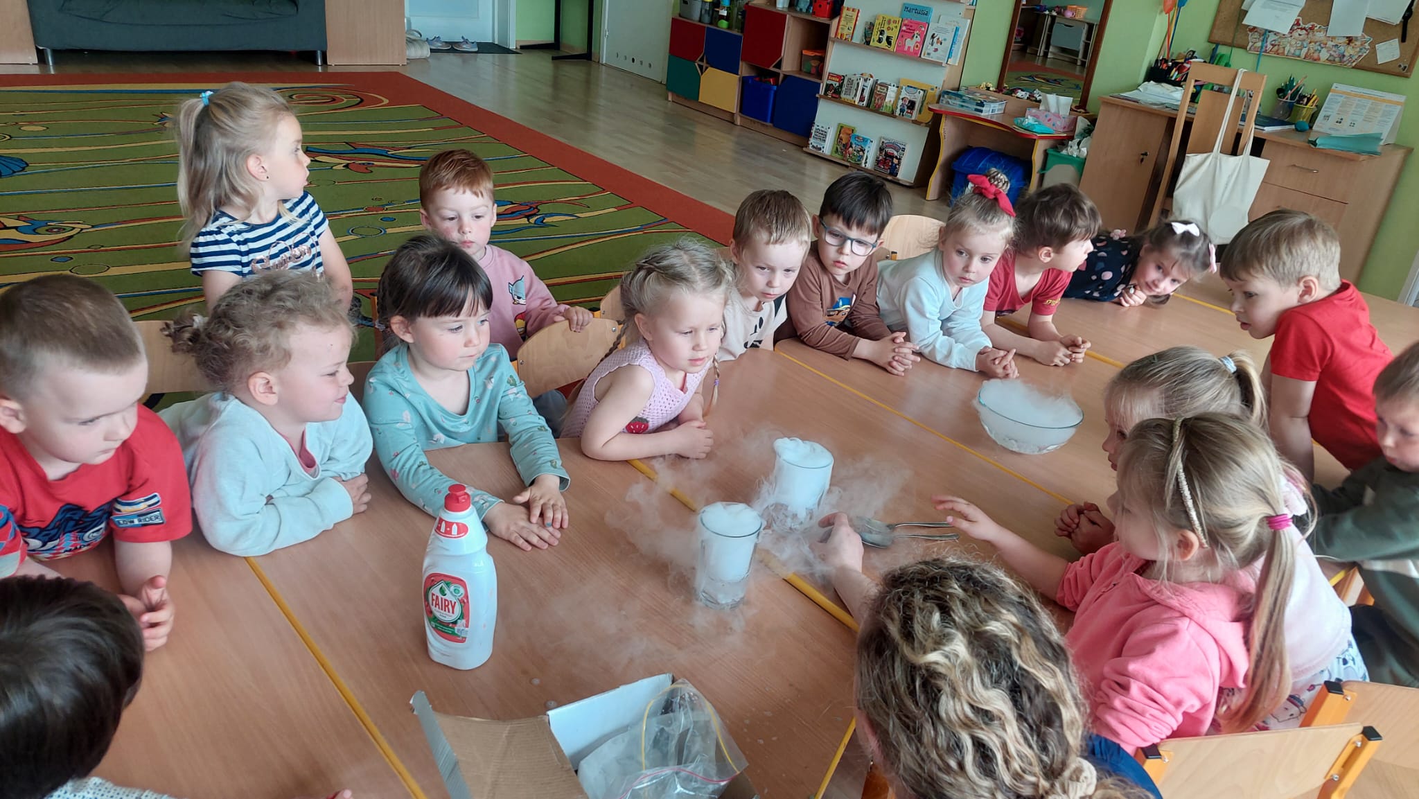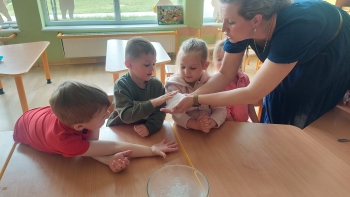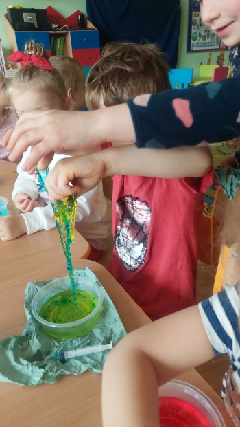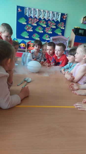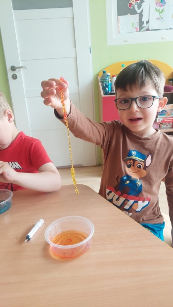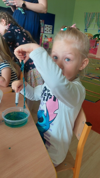 Chemia to nauka pełna niespodzianek, która kryje w sobie tajemnice otaczającego nas świata. Grupę Biedronek odwiedziła mama Stefana, która zaprezentowała nam swój zawód chemika. Dzieci zostały wprowadzone w świat chemii poprzez proste eksperymenty, rozbudzenie ciekawości i zachęcanie do eksplorowania nauki poprzez zabawę. Serdecznie dziękujemy mamie Stefana za tak cudownie zorganizowane eksperymenty!