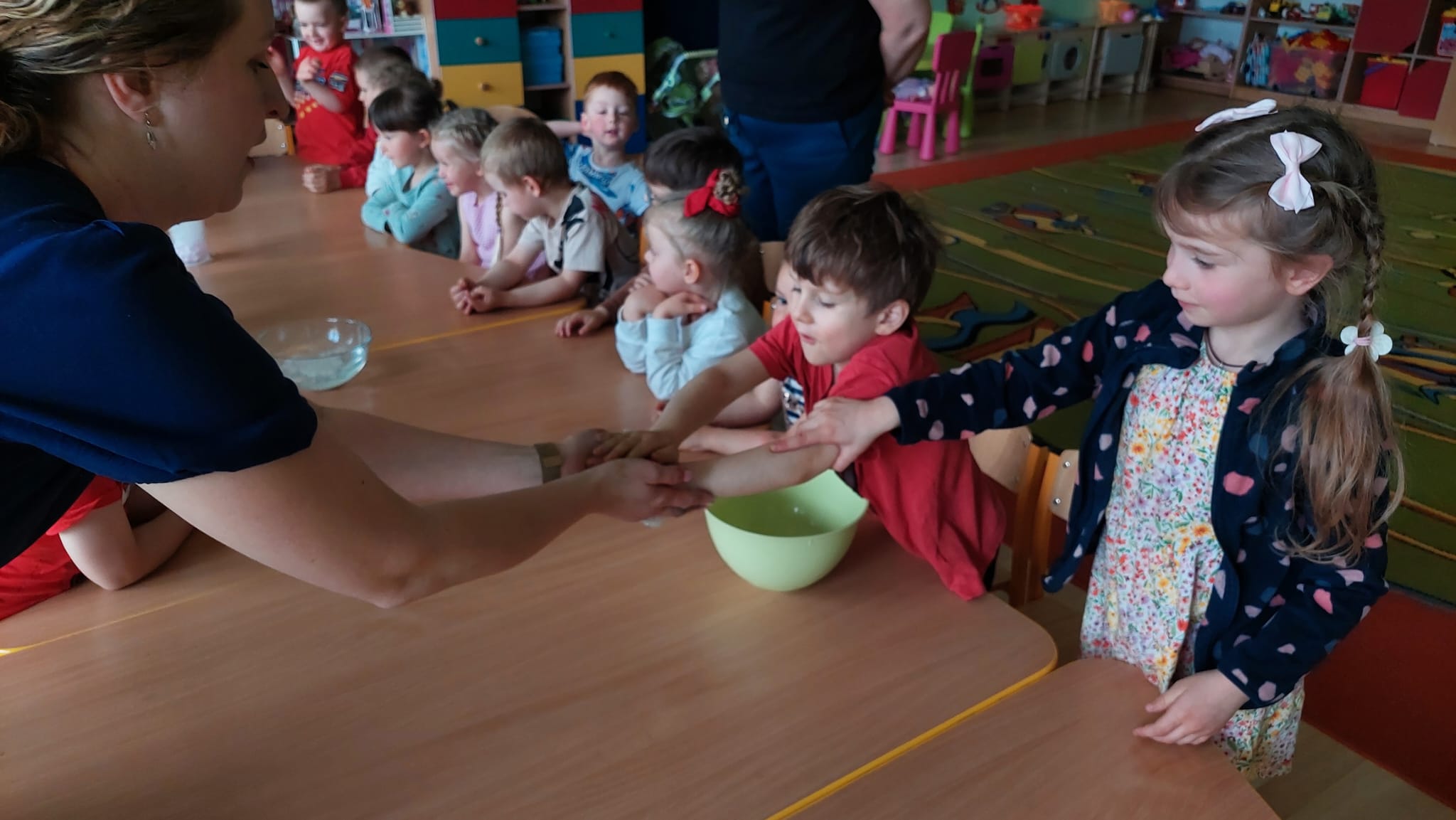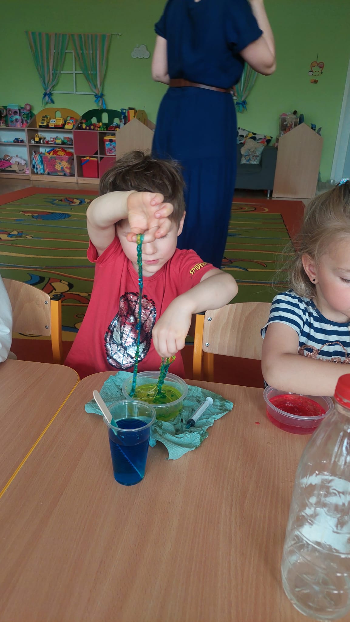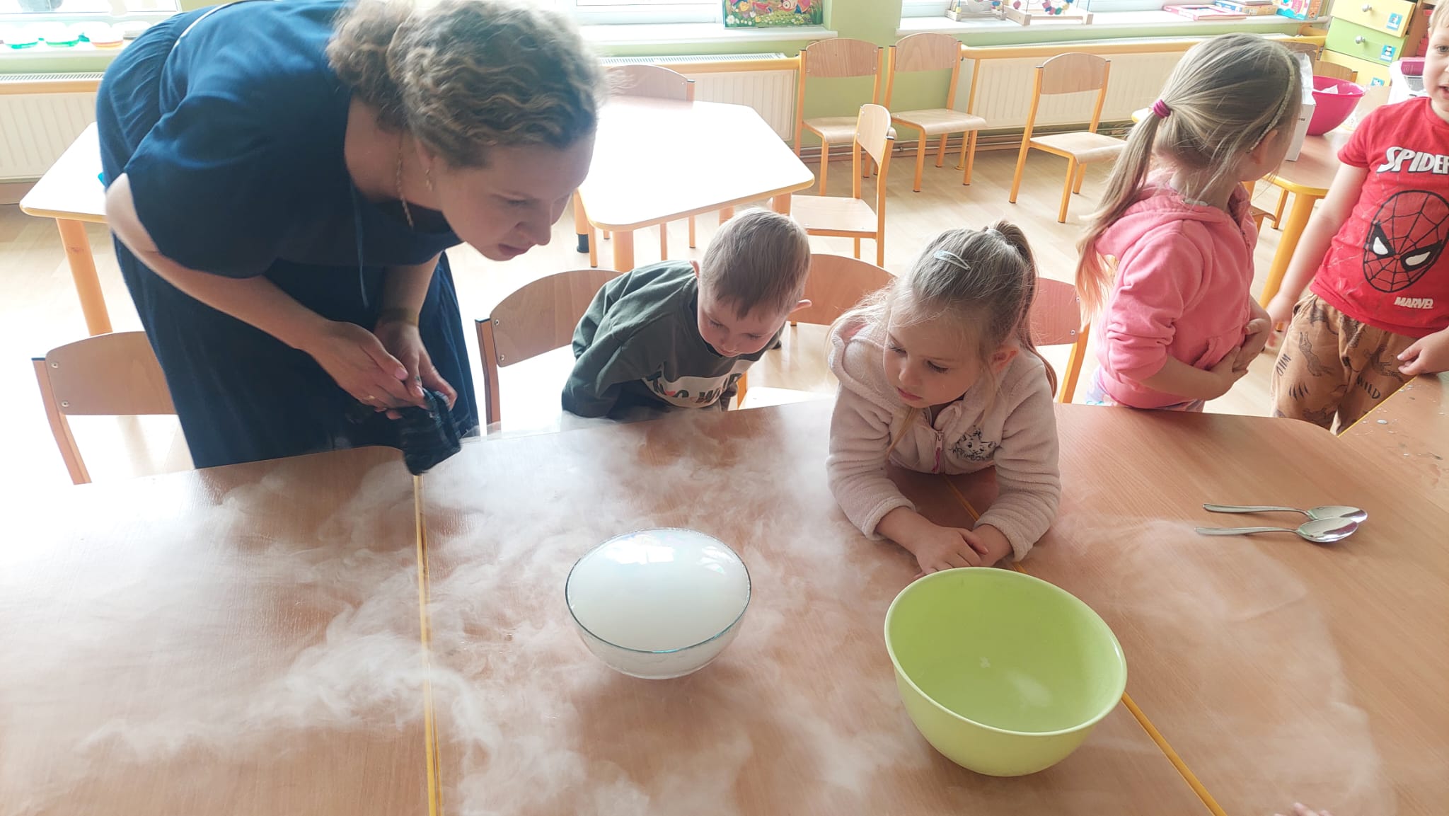 Chemia to nauka pełna niespodzianek, która kryje w sobie tajemnice otaczającego nas świata. Grupę Biedronek odwiedziła mama Stefana, która zaprezentowała nam swój zawód chemika. Dzieci zostały wprowadzone w świat chemii poprzez proste eksperymenty, rozbudzenie ciekawości i zachęcanie do eksplorowania nauki poprzez zabawę. Serdecznie dziękujemy mamie Stefana za tak cudownie zorganizowane eksperymenty!