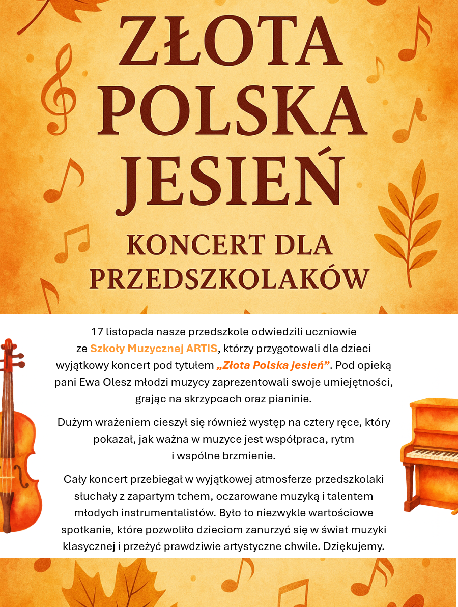 ZŁOTA POLSKA JESIEŃ - ARTIS - KONCERT DLA PRZEDSZKOLAKÓW